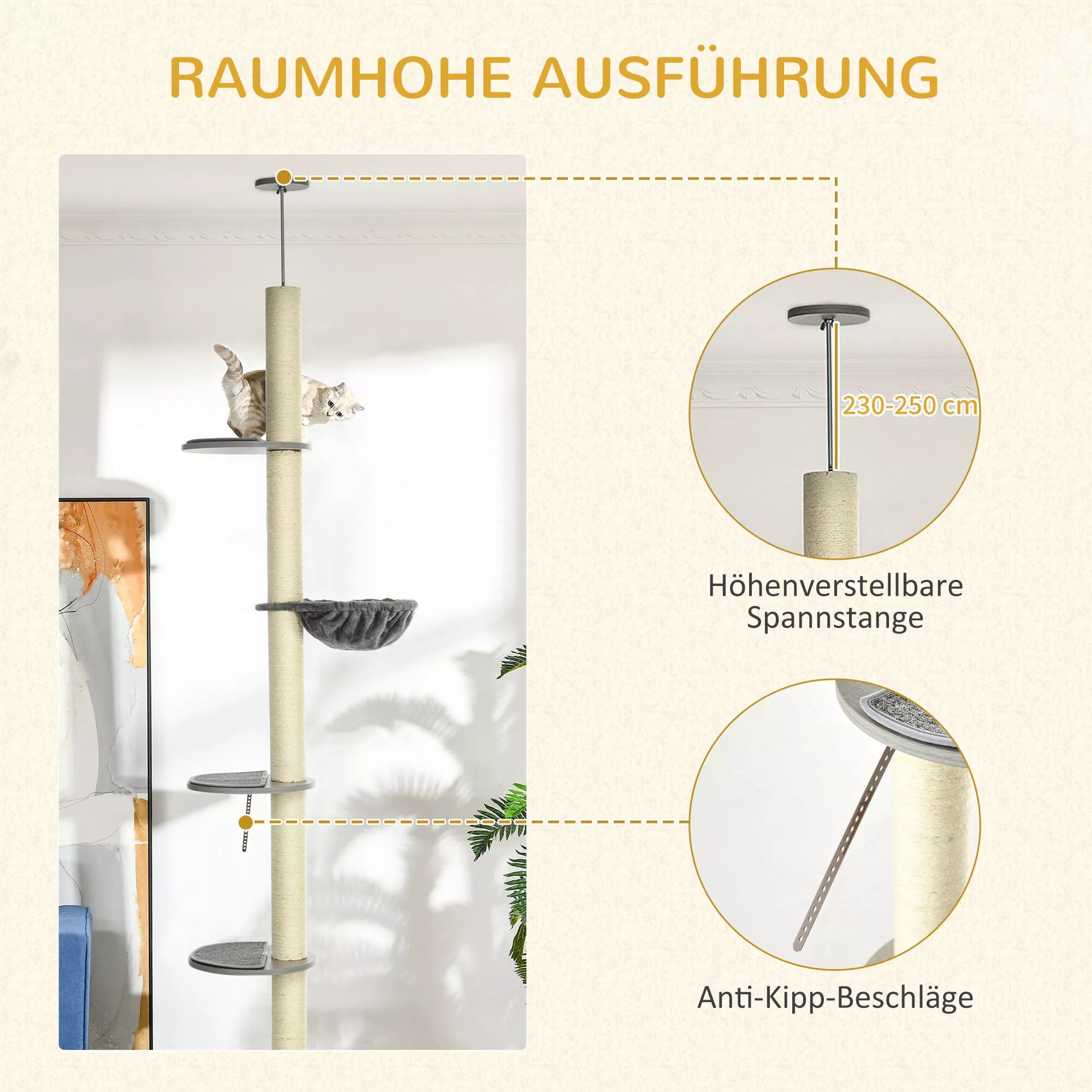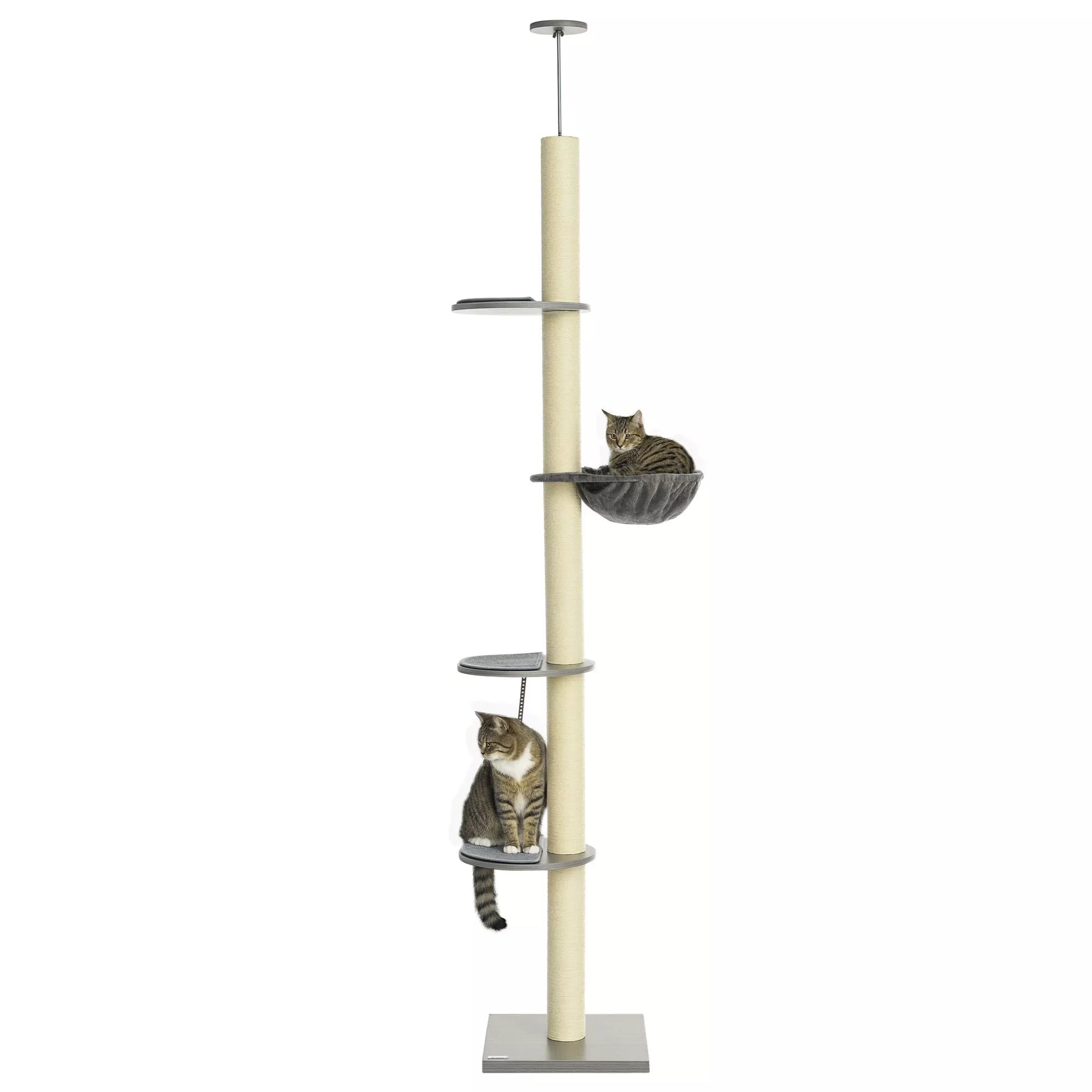 Kačių draskyklė su hamaku, su lubų įtempikliu, iki lubų, 40 cm x 40 m x 250 cm, Pilka + Kreminė balta