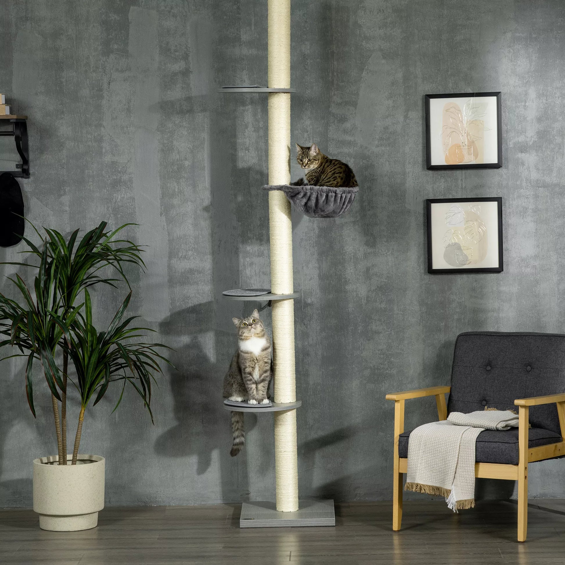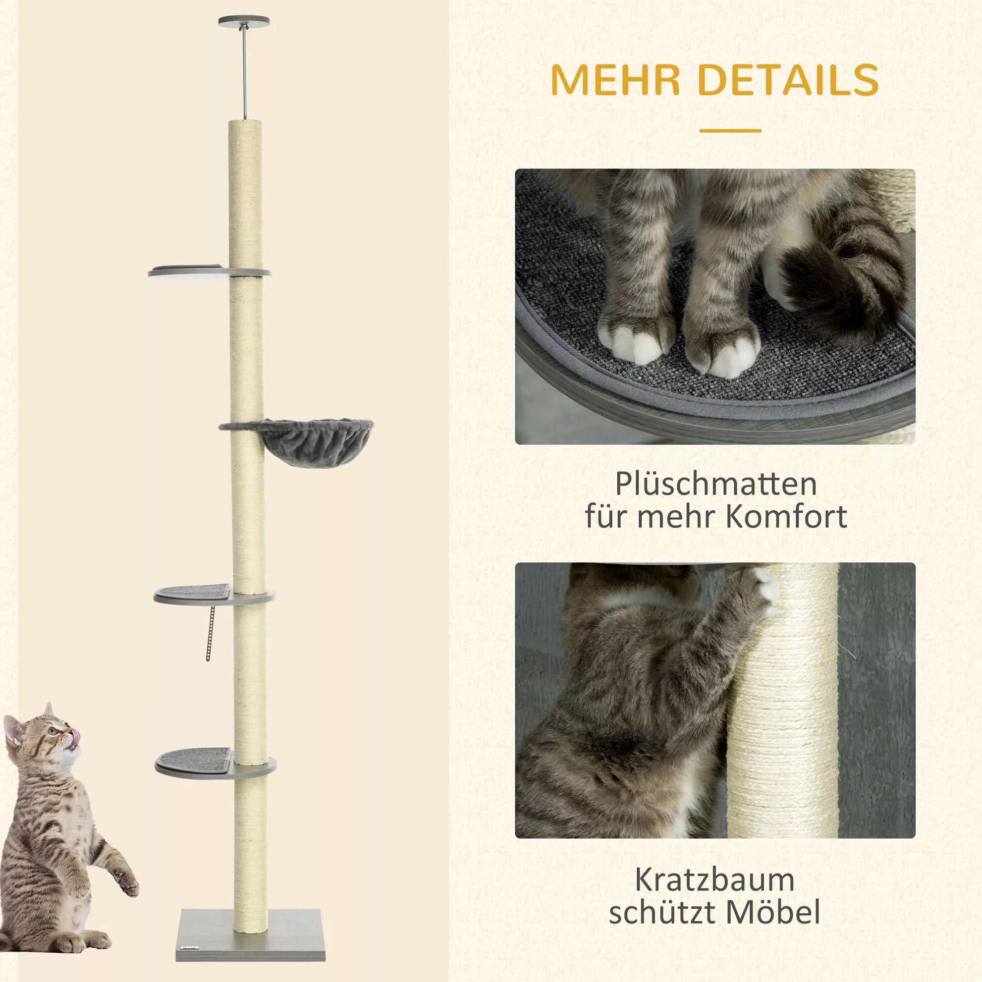 - ✔ Iki lubų besitęsiantis kačių draskykles namelis su sizalio virve patenkins jūsų kačių poreikį draskyti