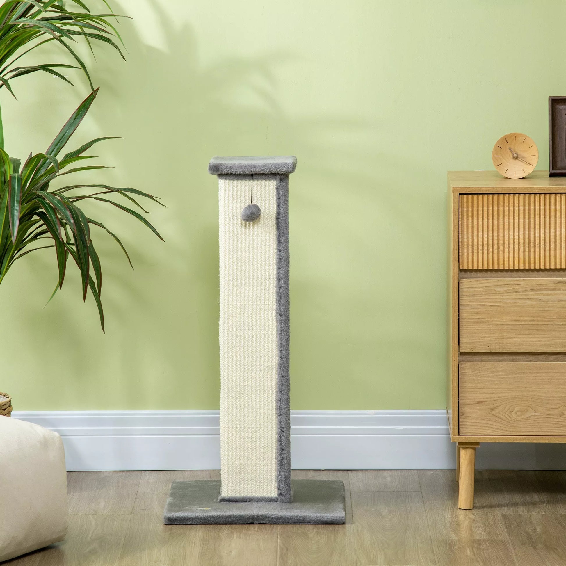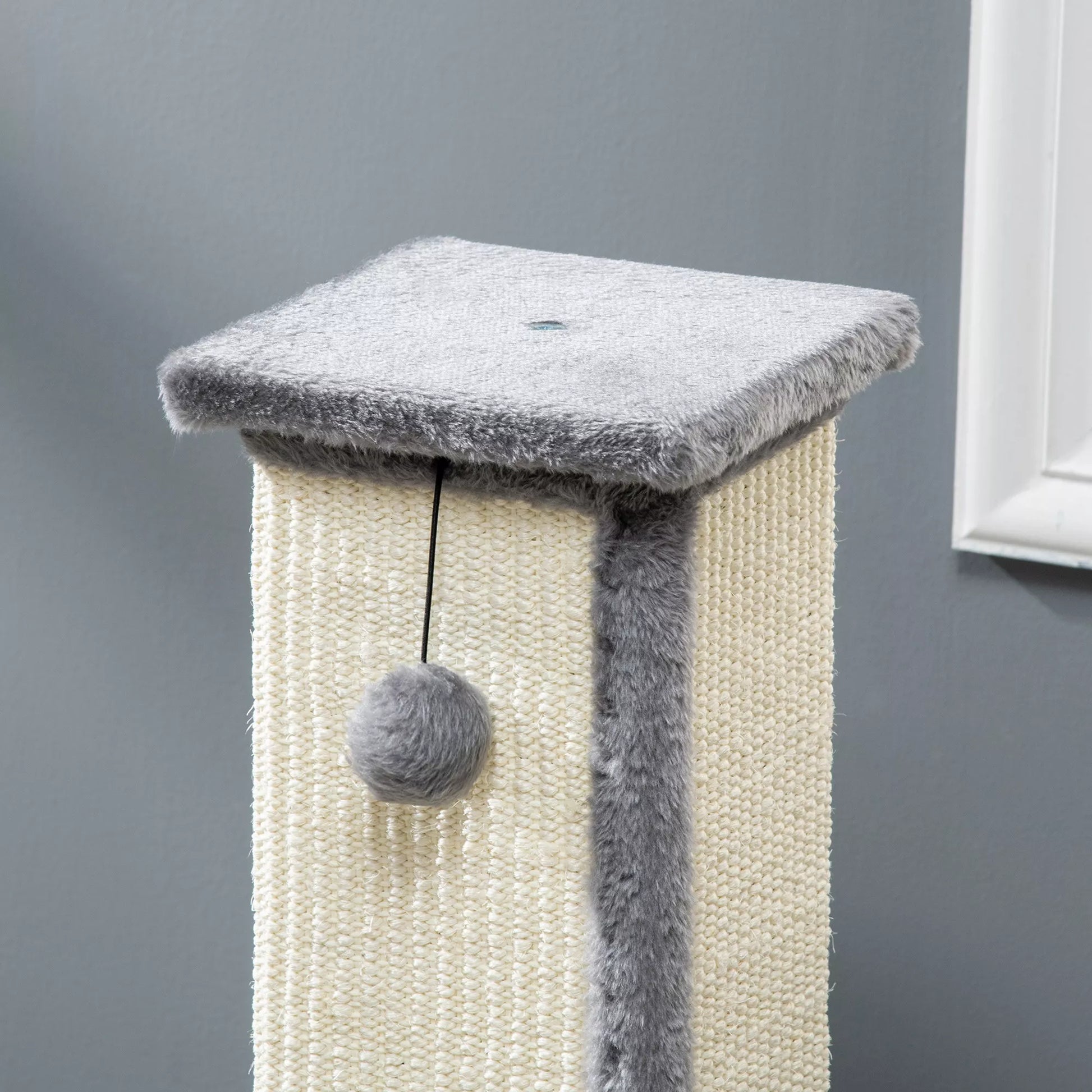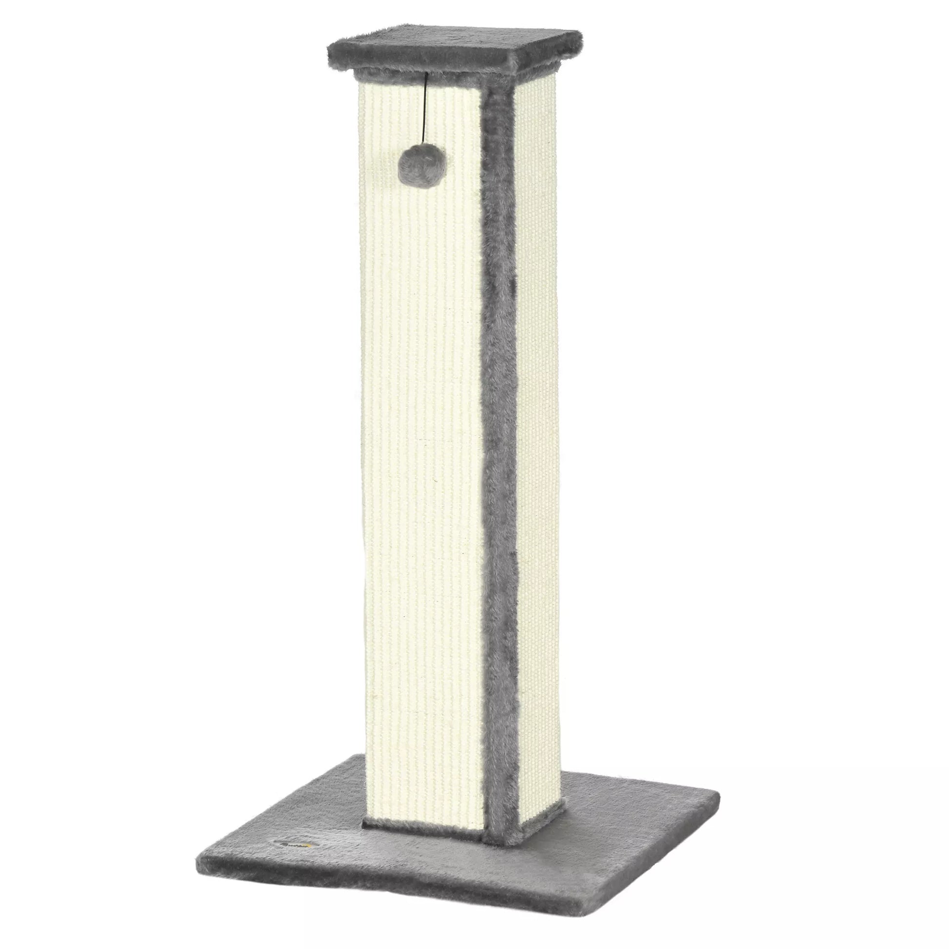 Kačių draskyklė, su žaidimo kamuoliuku, pliušas, sizalis, 41 cm x 41 cm x 81 cm, kreminė + pilka