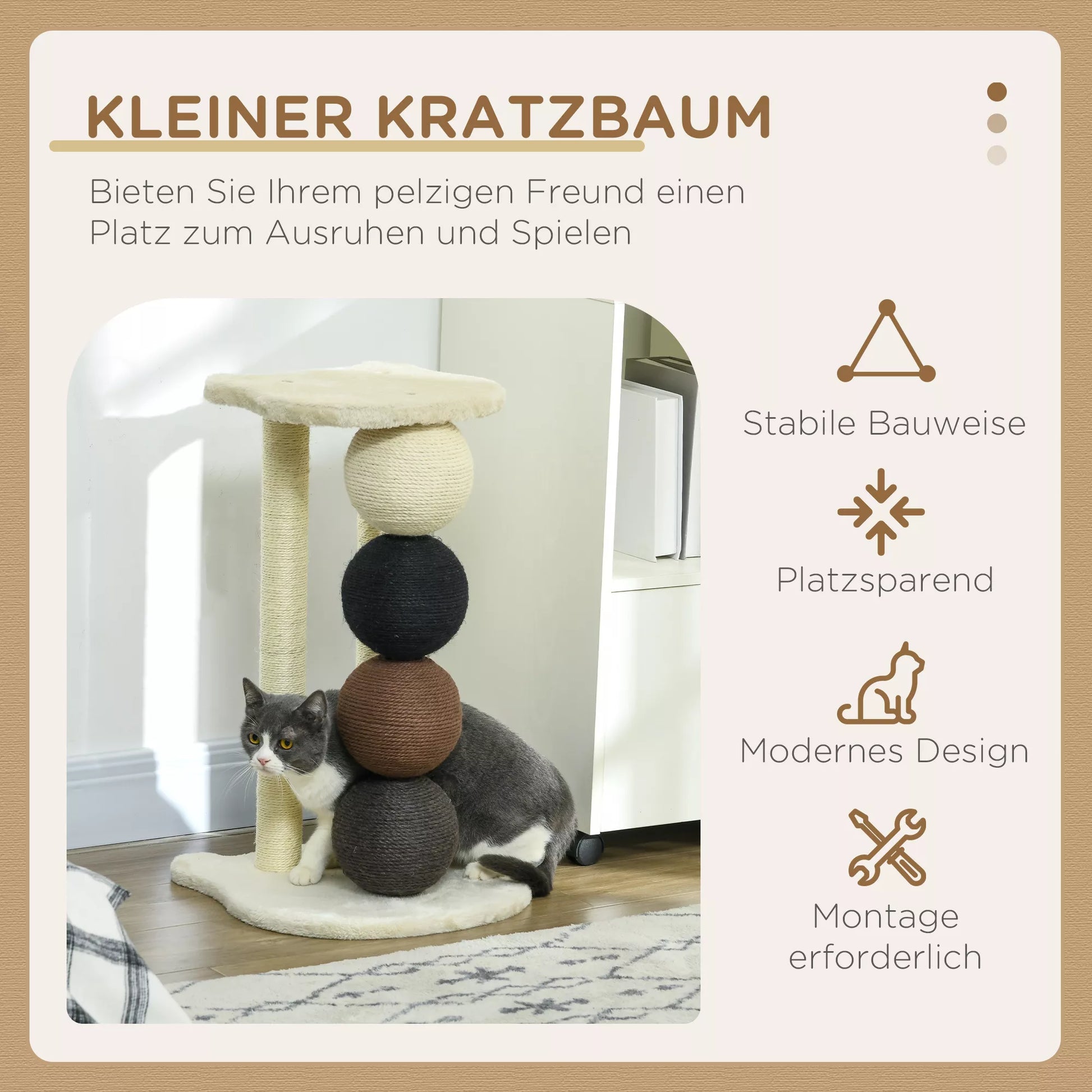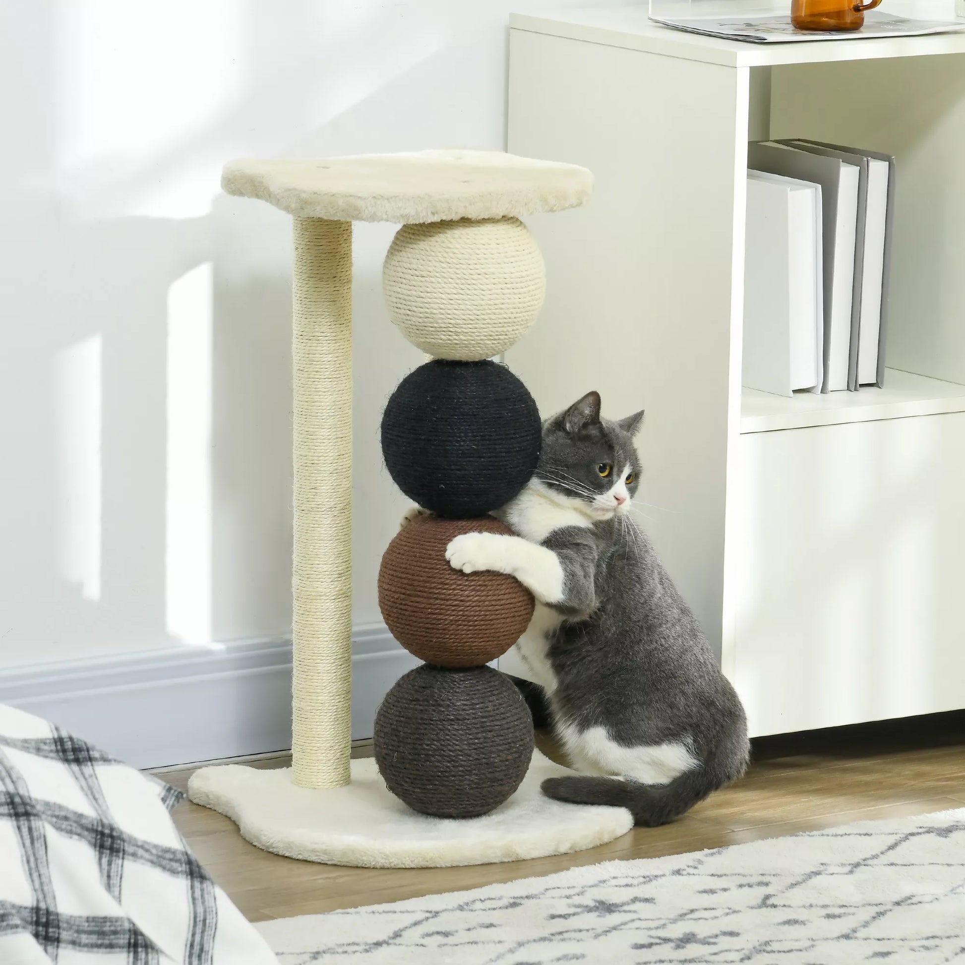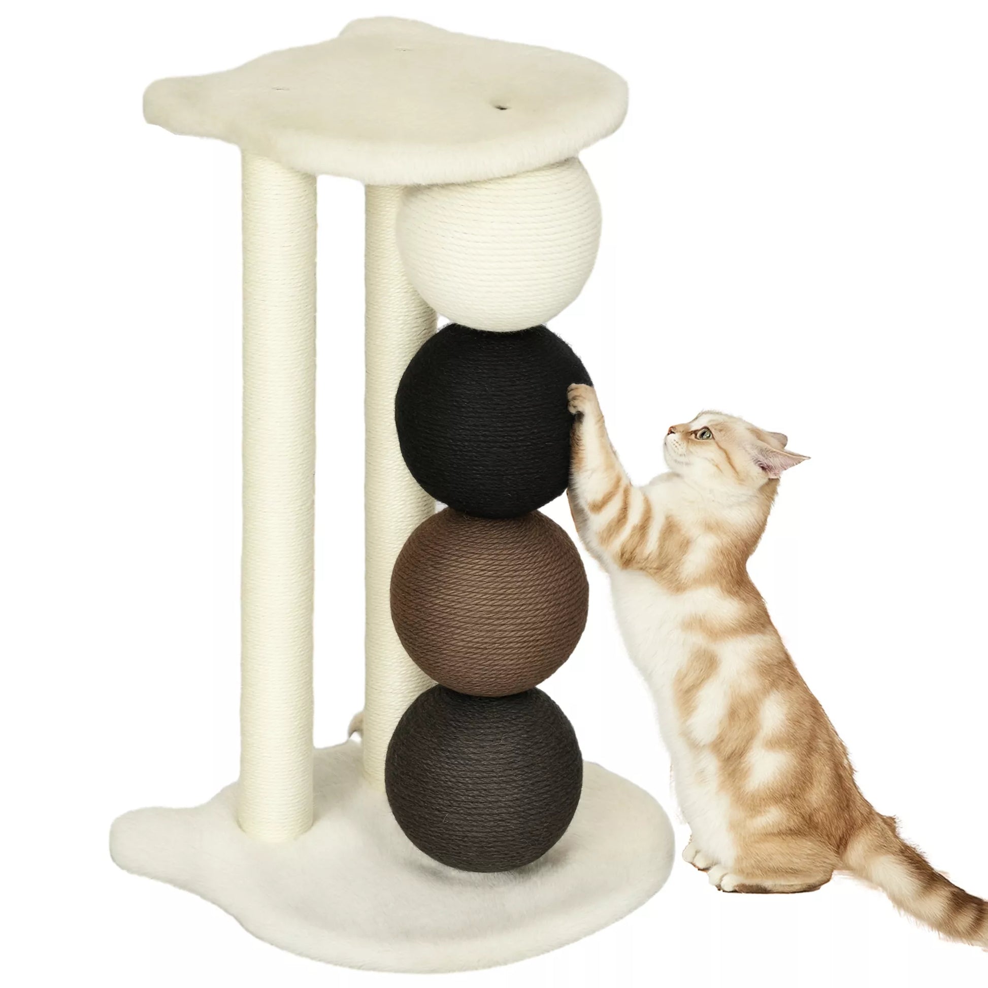 Draskyklė katėms, kačių draskymo medis su platforma, draskymo stulpas su 2 sizaliniais stulpeliais ir 4 sizaliniais kamuoliukais, katės draskyklės žaislas, 38 x 38 x 64 cm