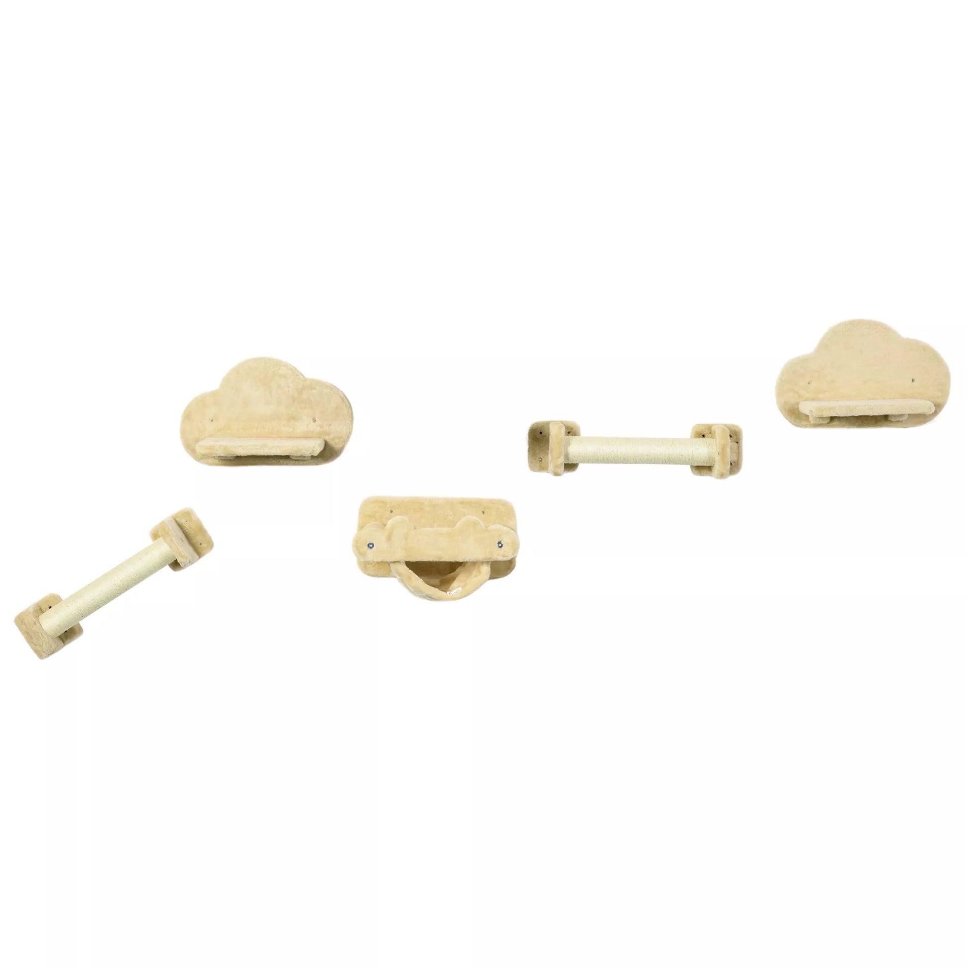 Kačių laipteliai, 5 dalių komplektas, 2 draskyklės, 2 plokštumos su pliušiniu apmušalu, hamakas, smėlio spalvos