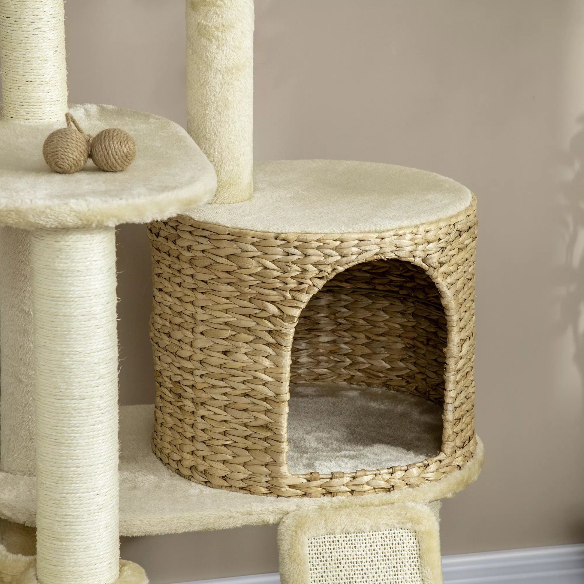 Draskykla su kačių nameliu, kelios platformos, hamakas, draskymo kilimėlis, apsauga nuo apvirtimo, smėlio spalvos, 60 x 60 x 150cm