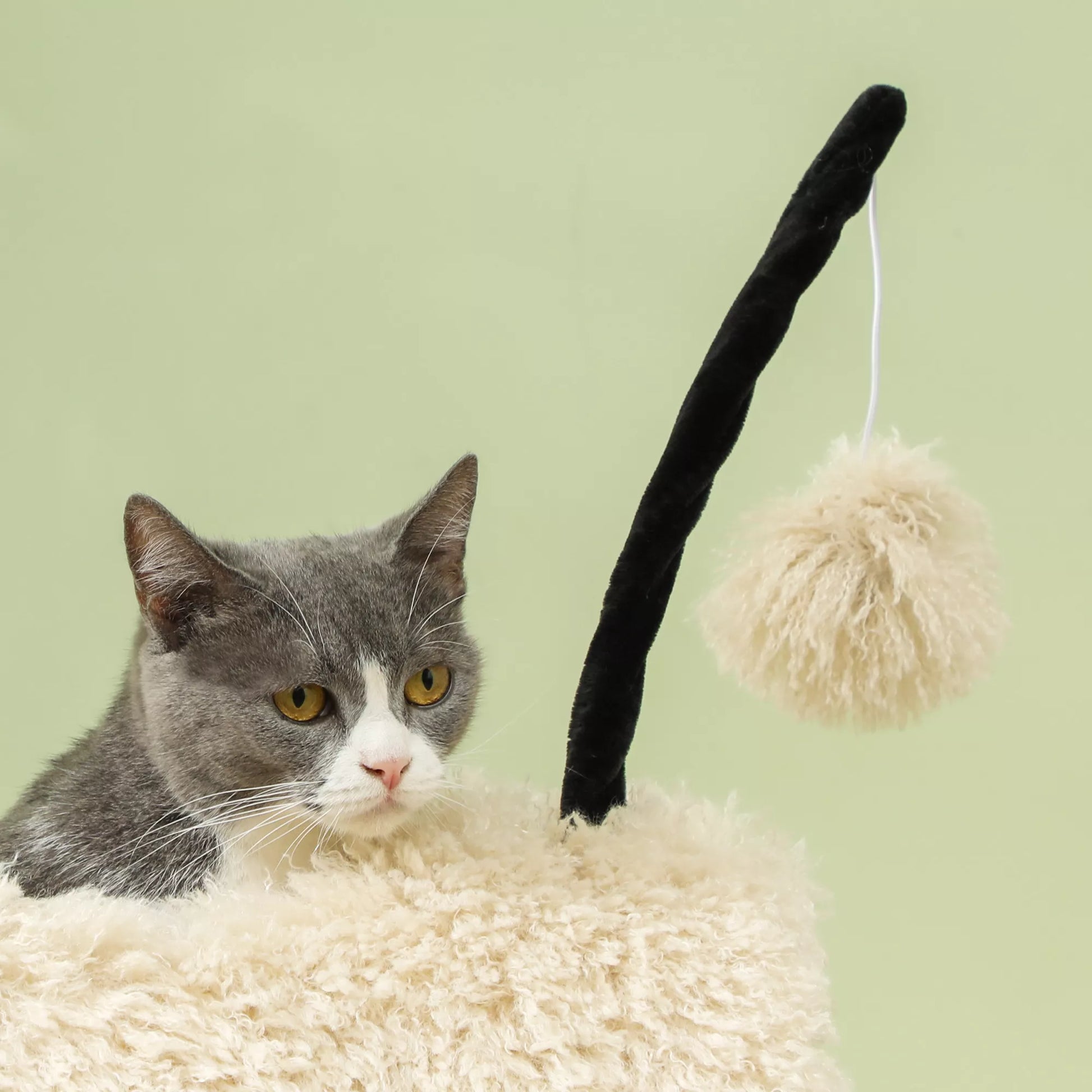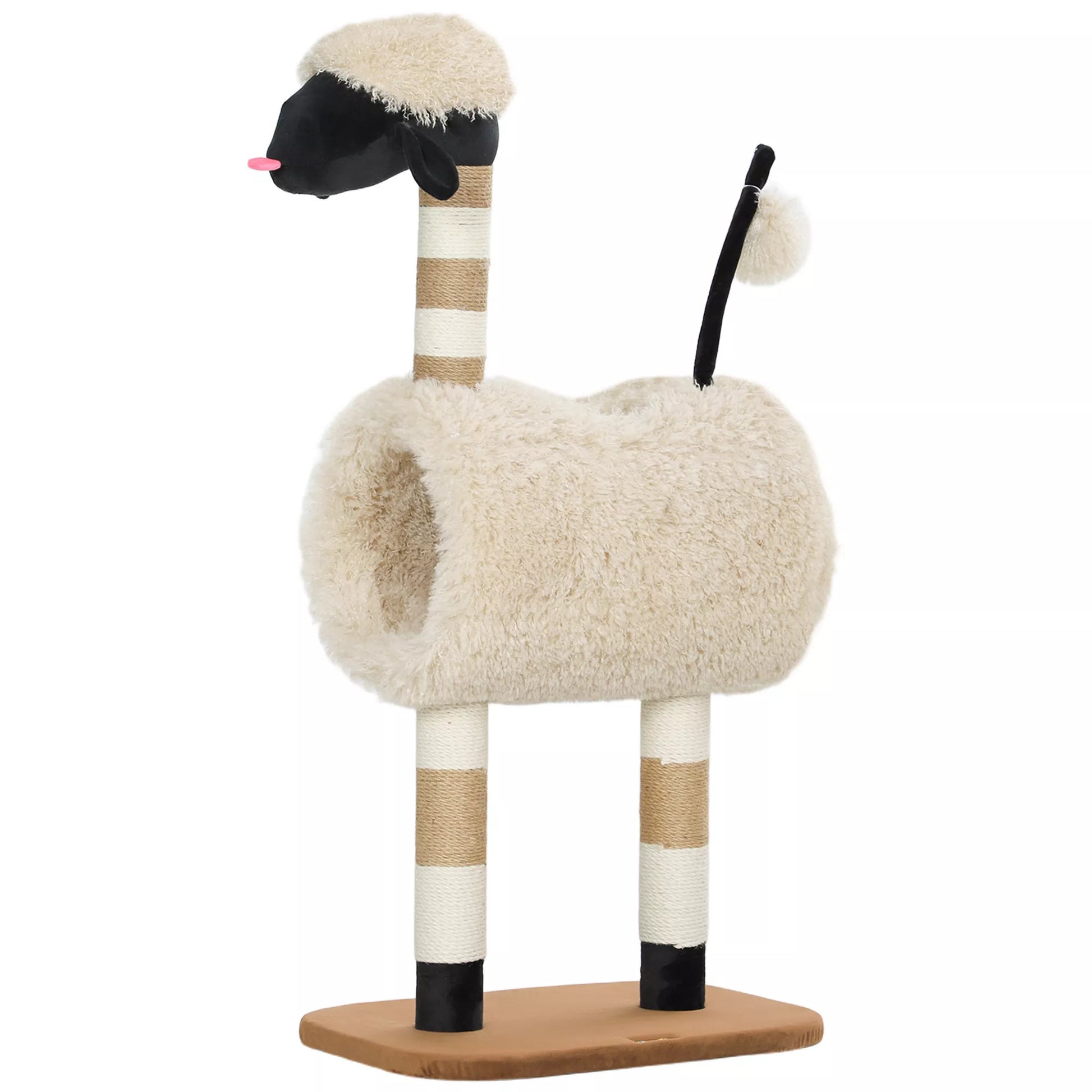 Katės medis avies dizaino, su draskykle, tuneliu ir žaislu, 98 cm, šviesiai rudas