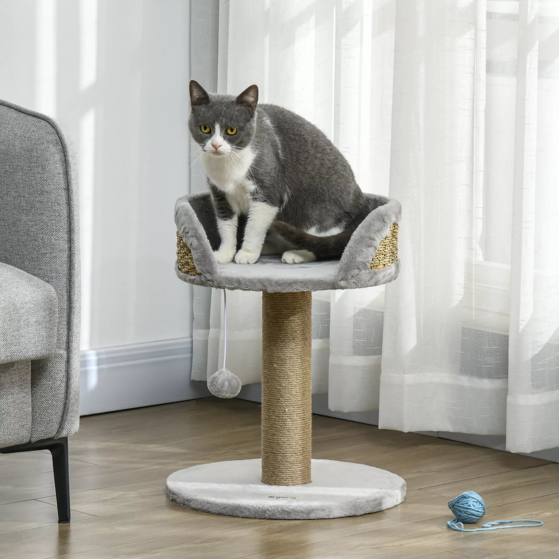 Kačių draskyklė, katės lova, katės krepšys, su žaisliniu kamuoliuku, 40 cm x 40 cm x 49 cm, Pilka