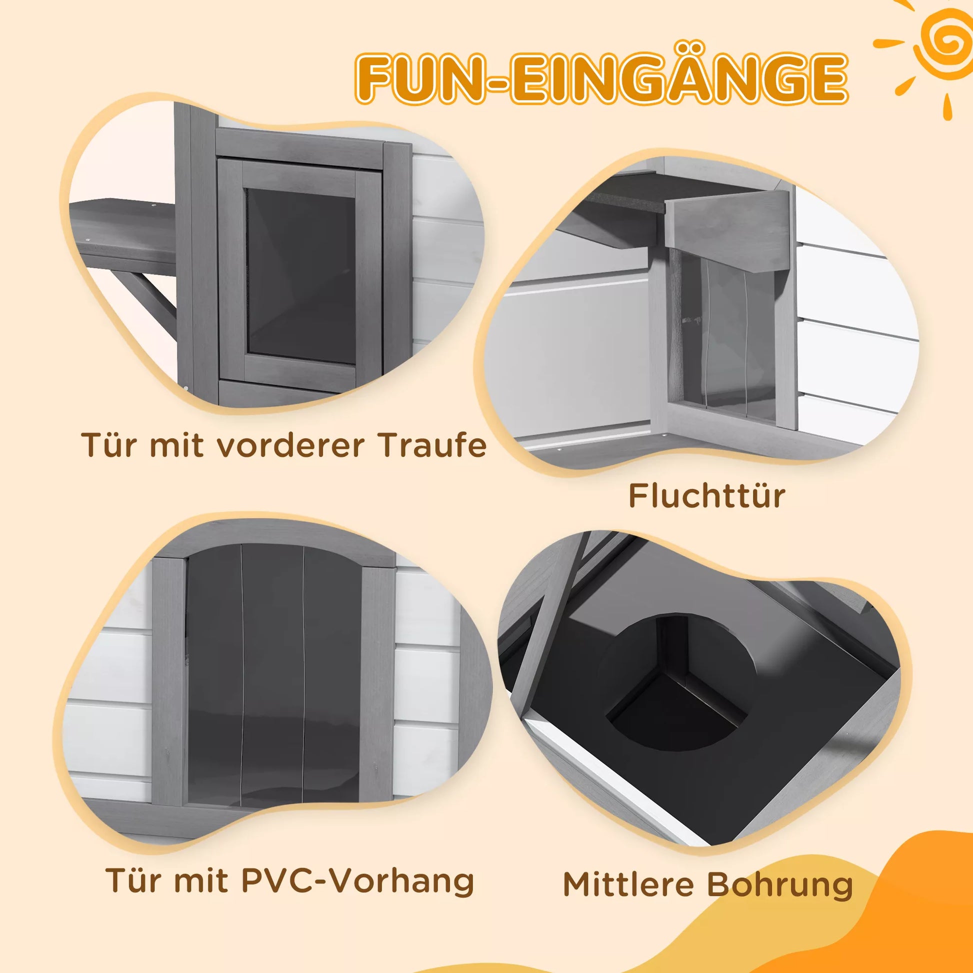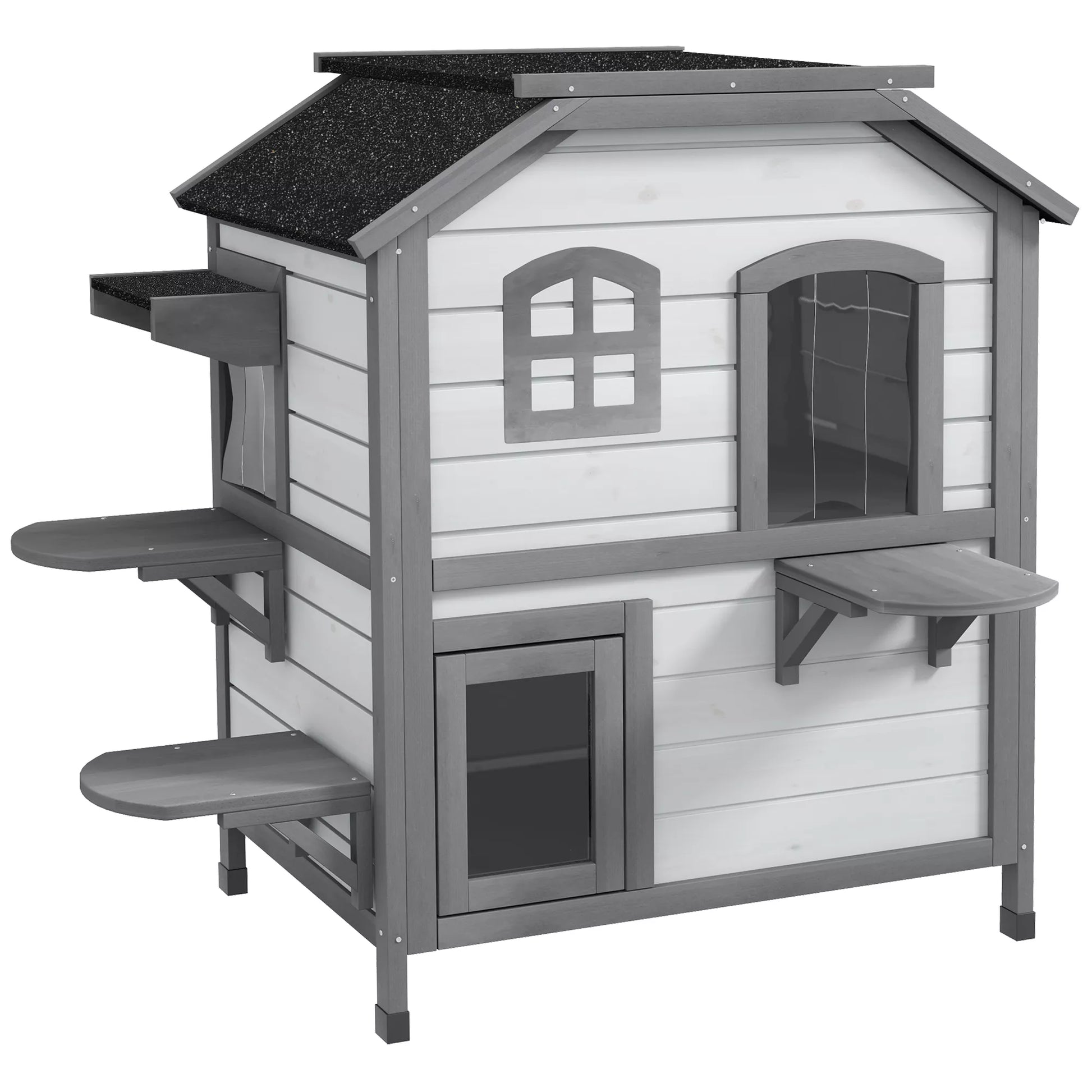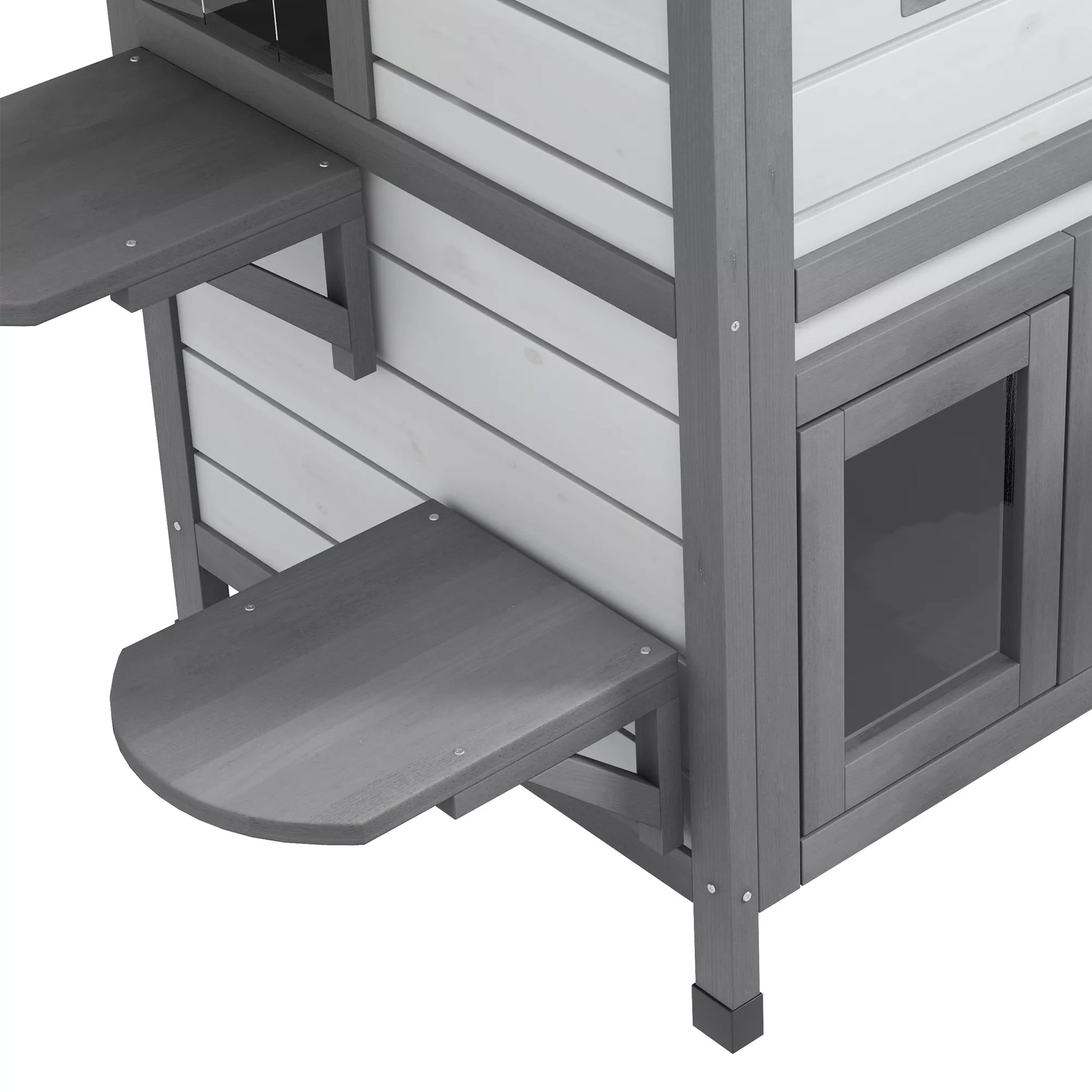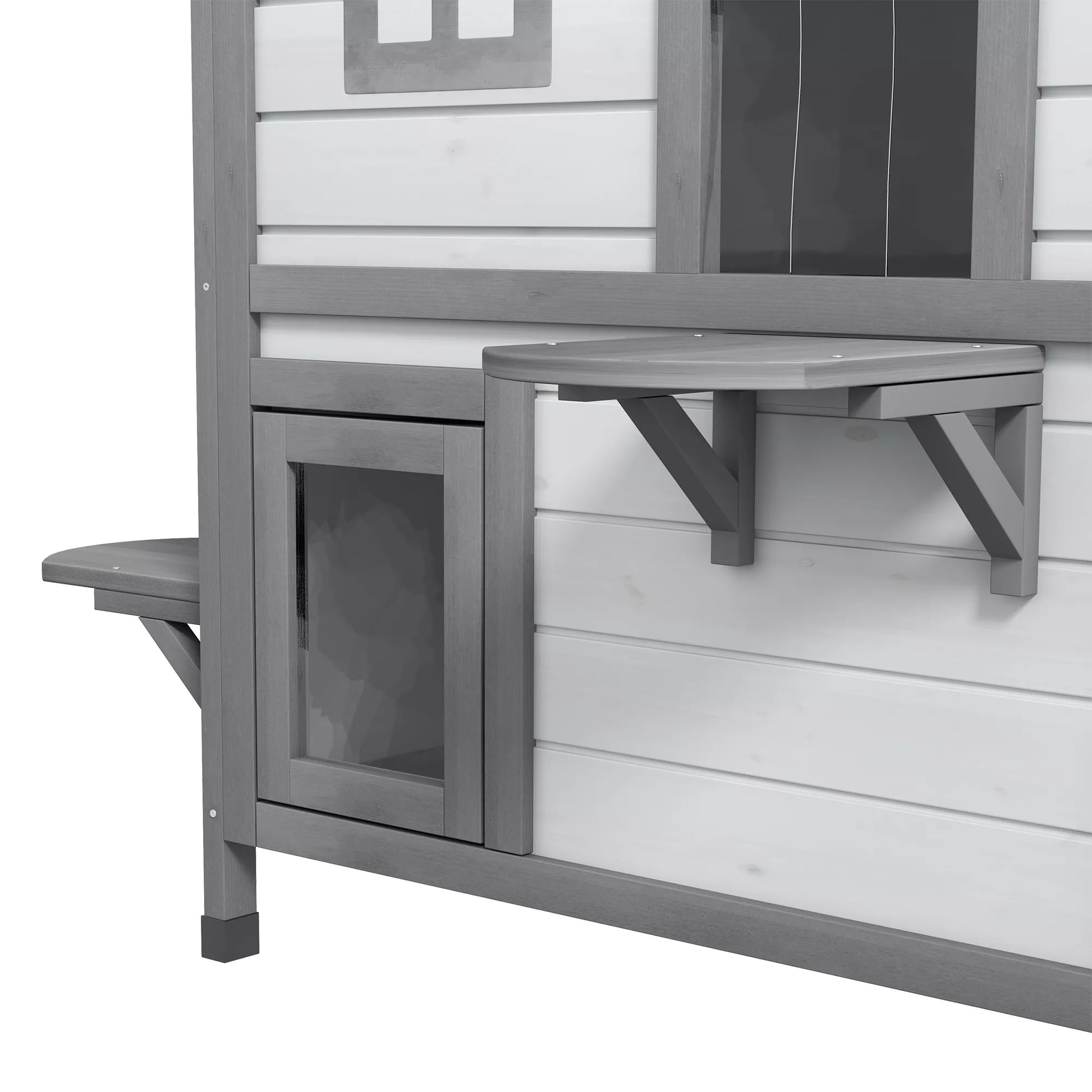 Katės namelis, katės būdelė, katės guolis, 2 aukštų, atsparus oro sąlygoms, 99,5 cm x 76 cm x 91 cm, balta + pilka