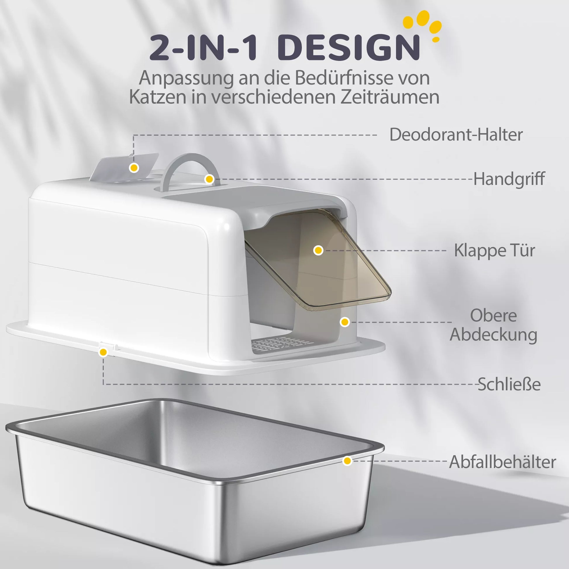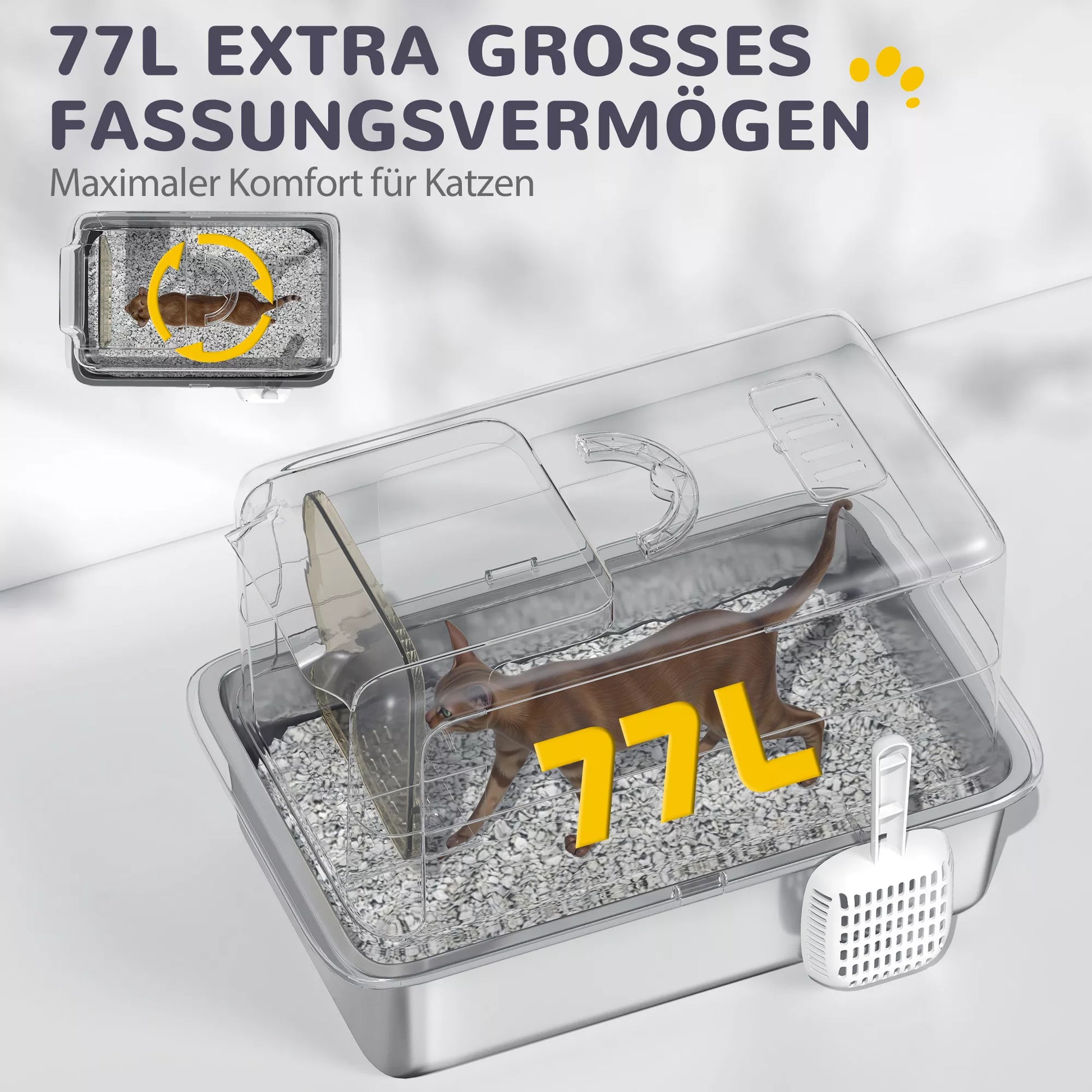 Aukščiausios klasės švara jums ir jūsų katei su šia kačių tualeto dėže. Elegantiškas nerūdijančio plieno konteineris lengvai valomas ir užtikrina higienišką aplinką. Dėl integruoto kraiko sietelio, valymas tampa vaikiškai lengvas. Uždara konstrukcija užtikrina optimalią apsaugą nuo kvapų, komplektuojama su dviem filtro maišeliais. Ši erdvi kačių tualeto dėžė idealiai tinka katėms iki 6 kg, suteikdama jūsų augintiniui lankstumo ir komforto.