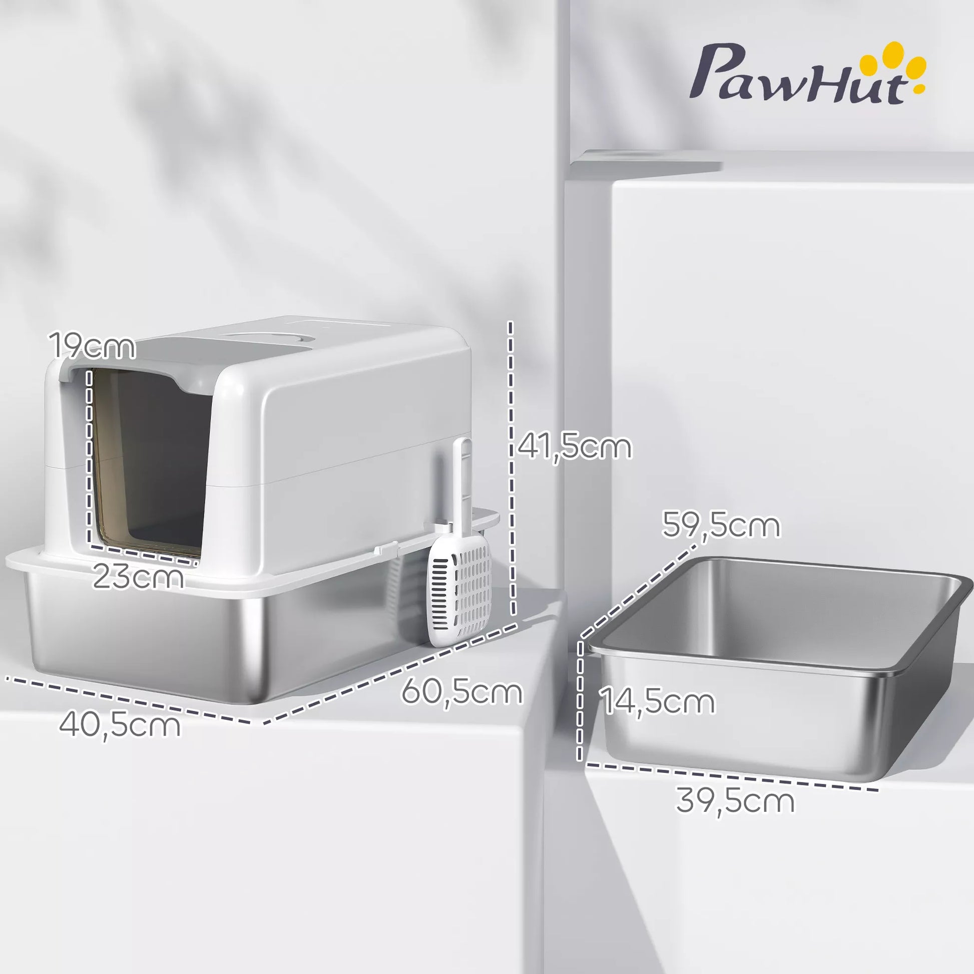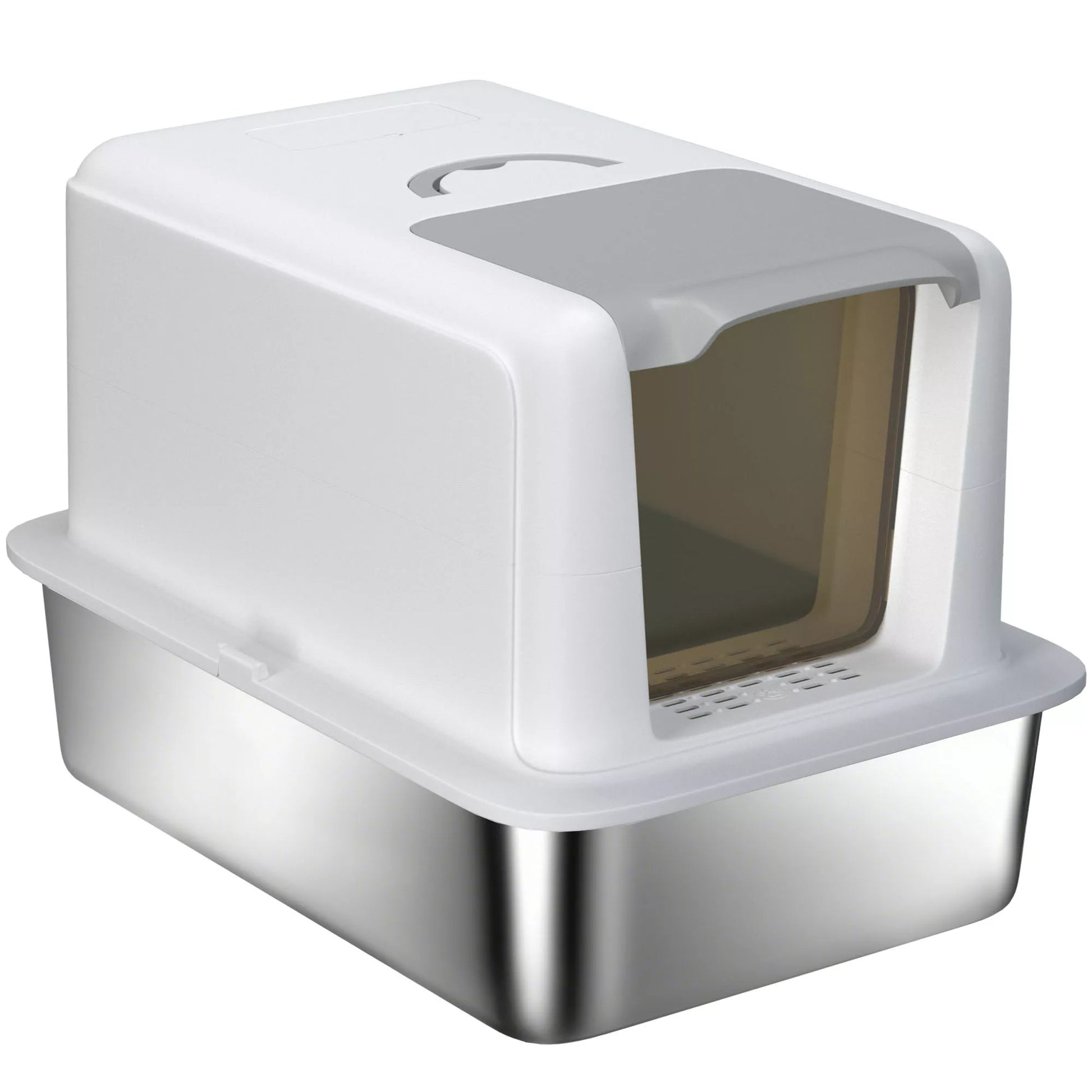 Katės tualetas, nerūdijančio plieno dugnas, filtras, kaušelis, katėms iki 6 kg, 40,5 x 60,5 x 41,5 cm, Balta/Sidabrinė