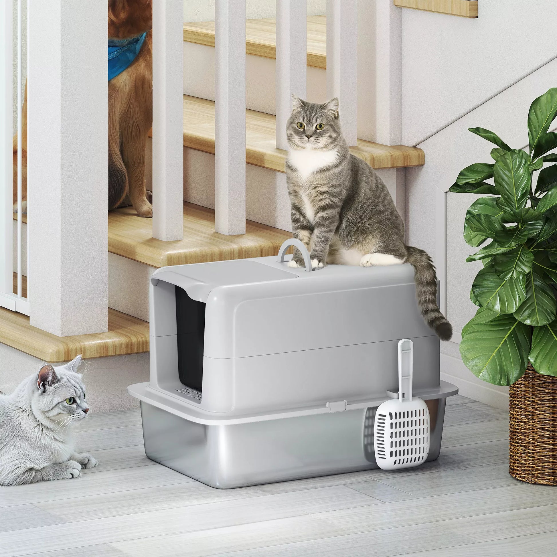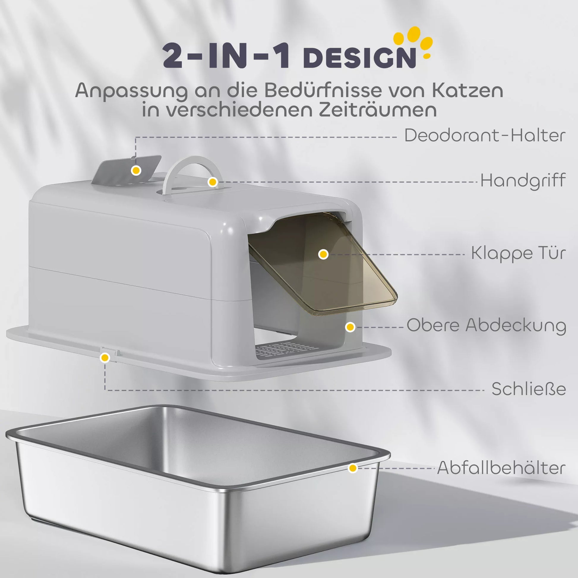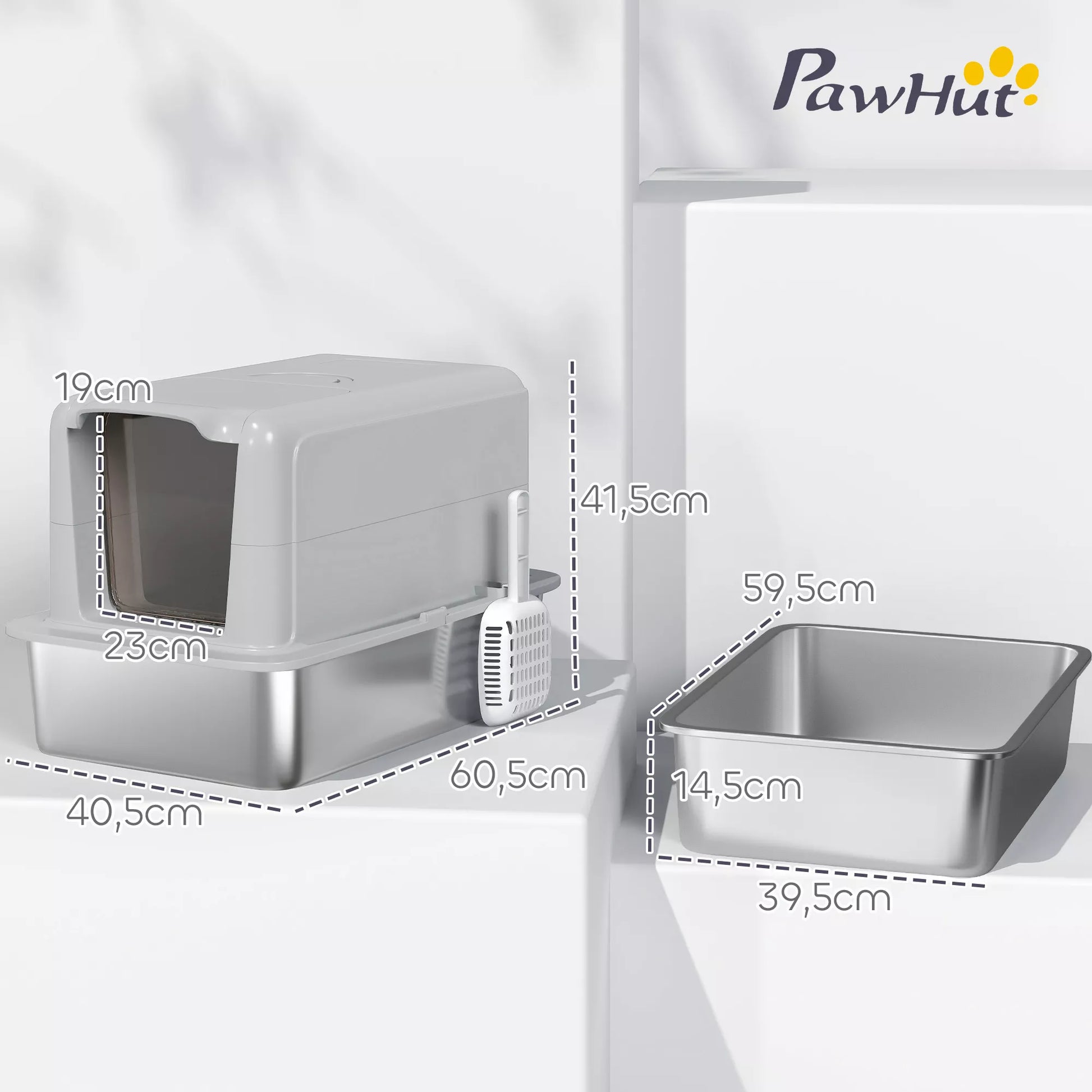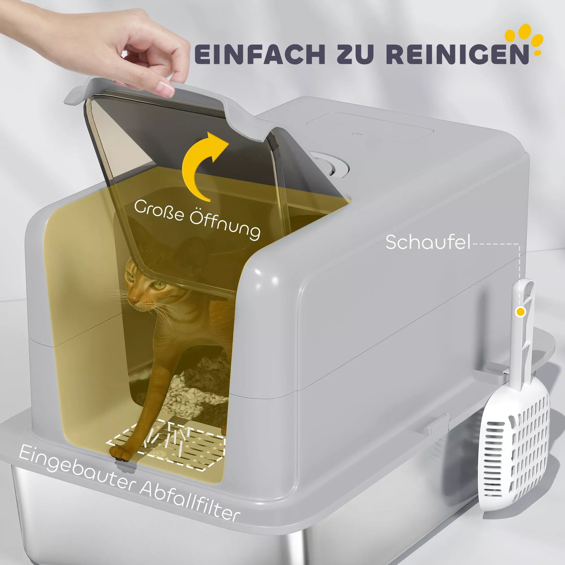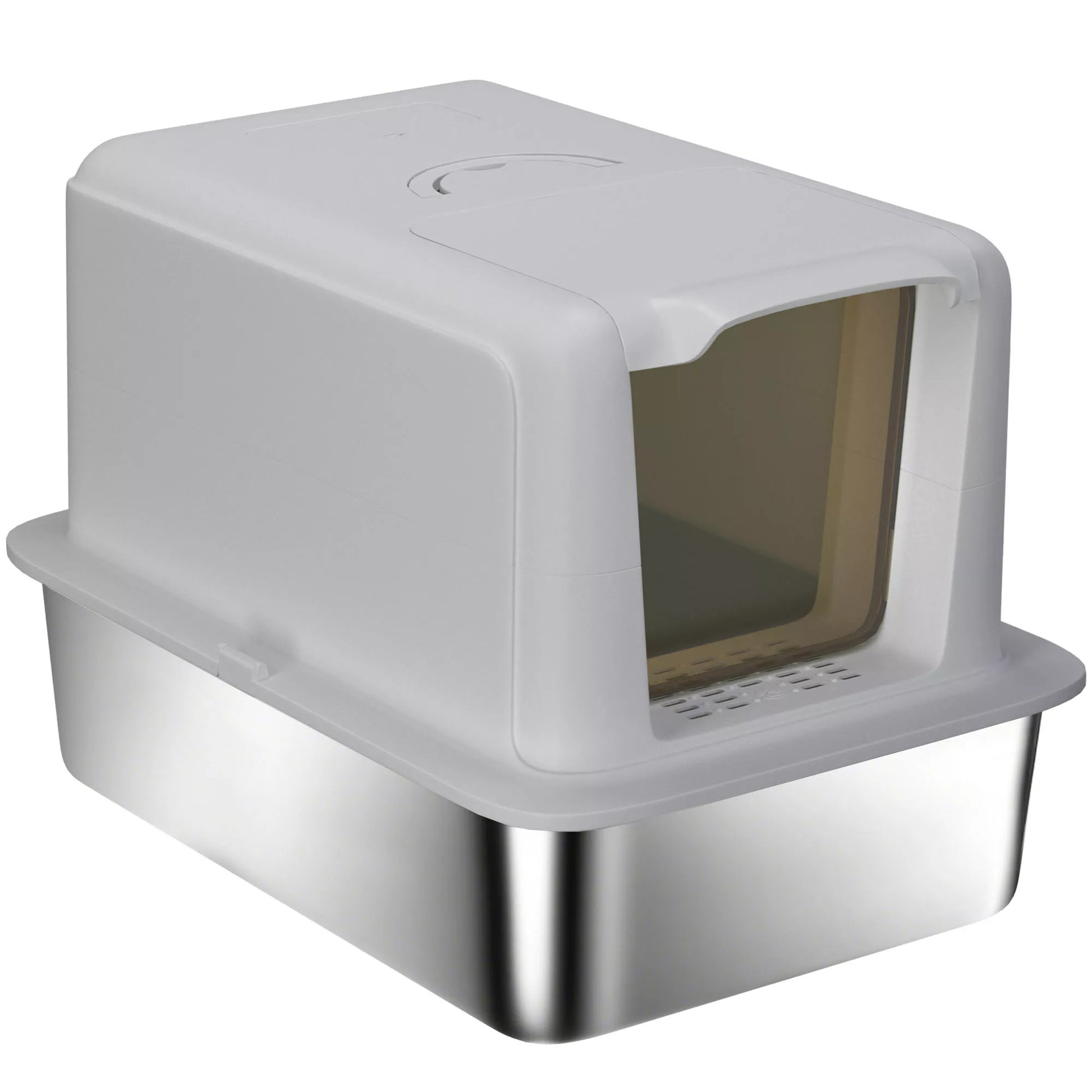 Kačių tualetas, nerūdijančio plieno indas, filtras, kastuvėlis, katėms iki 6 kg, 40,5 x 60,5 x 41,5 cm, Pilka/Sidabrinė