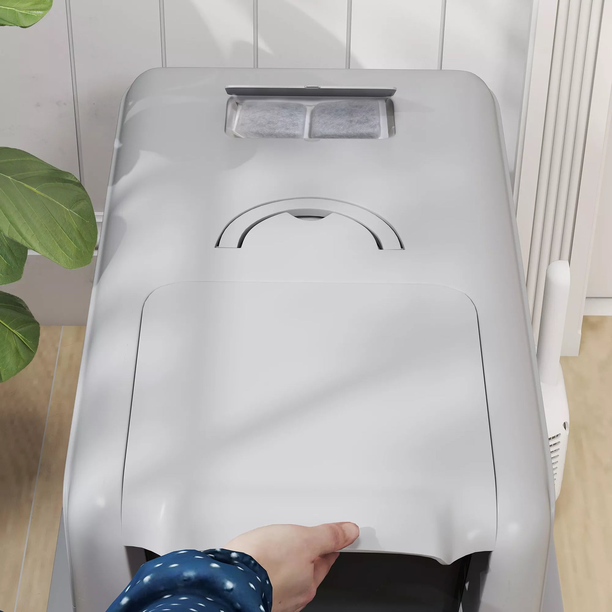 - ✔ Uždara katės kraiko dėžutės konstrukcija su dviem filtravimo maišeliais kvapų kontrolei