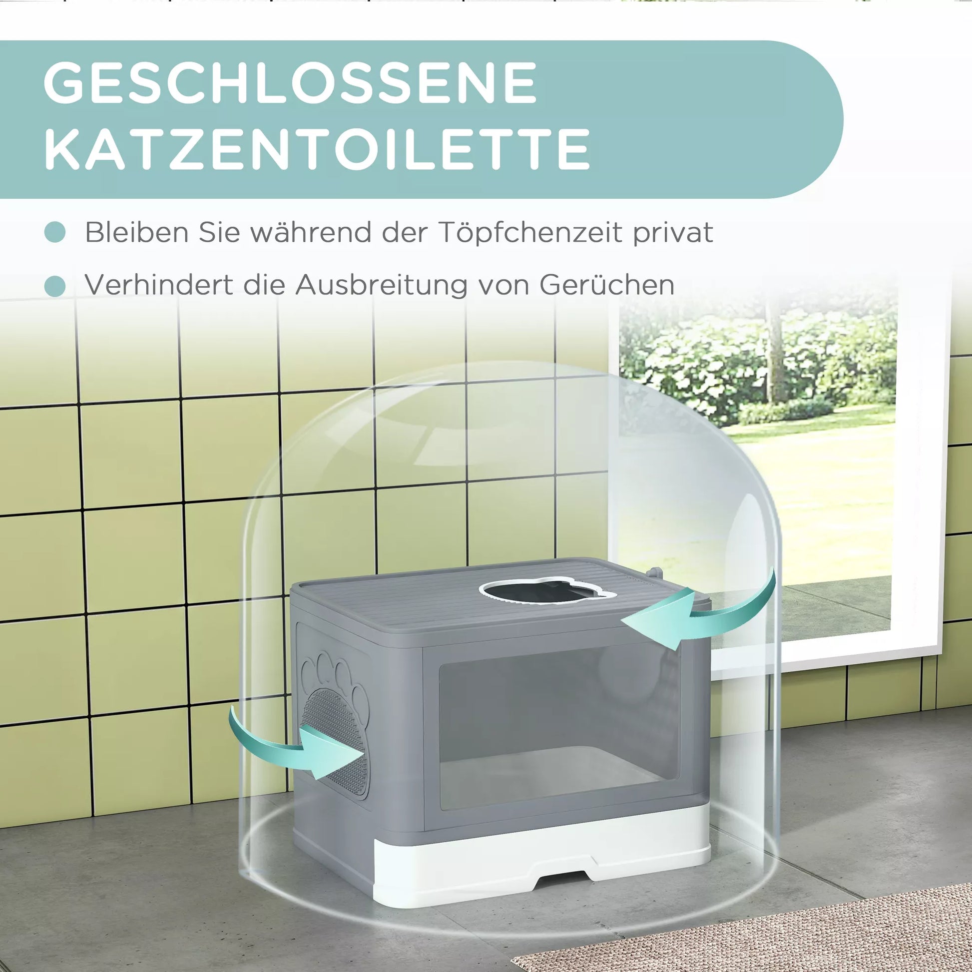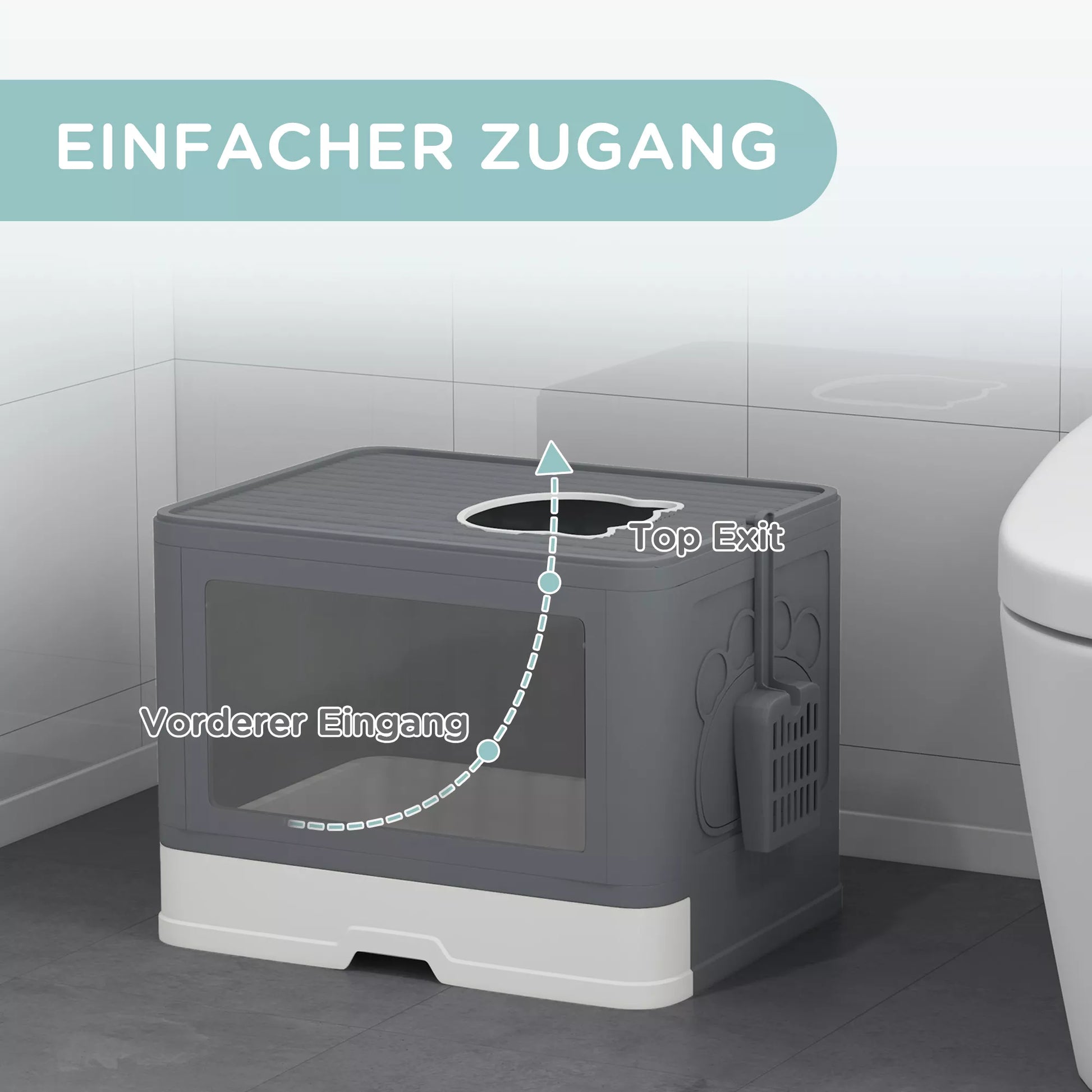 Tualetas katei su įėjimu priekyje ir išėjimu viršuje suteikia daug vietos jūsų augintiniui. Viršutinėje dalyje yra sietelis, kuris minimalizuoja kačių kraiko barstymą ir taupo jūsų laiką valant. Mūsų uždaras dizainas suteikia jūsų pūkuotajam draugui papildomą komfortą ir privatumą. Patirkite lengvą tualeto priežiūrą su mūsų tualeto dėže, kuri optimizuoja komfortą ir pagerina jūsų katės gyvenamąją erdvę.