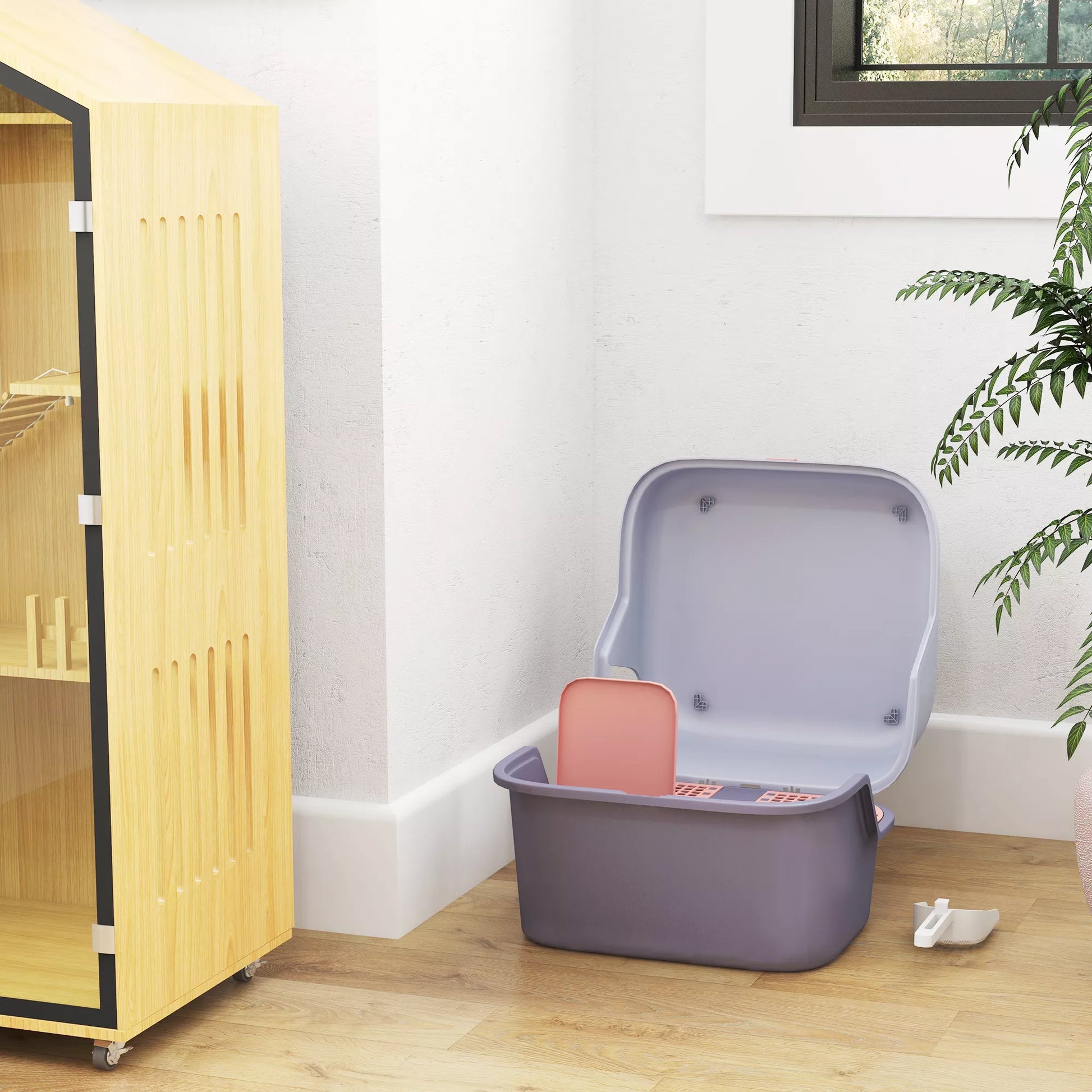Katės tualetas, katės dėžutė su dangčiu ir semtuvu, lengvai valoma, užrakinama, violetinė