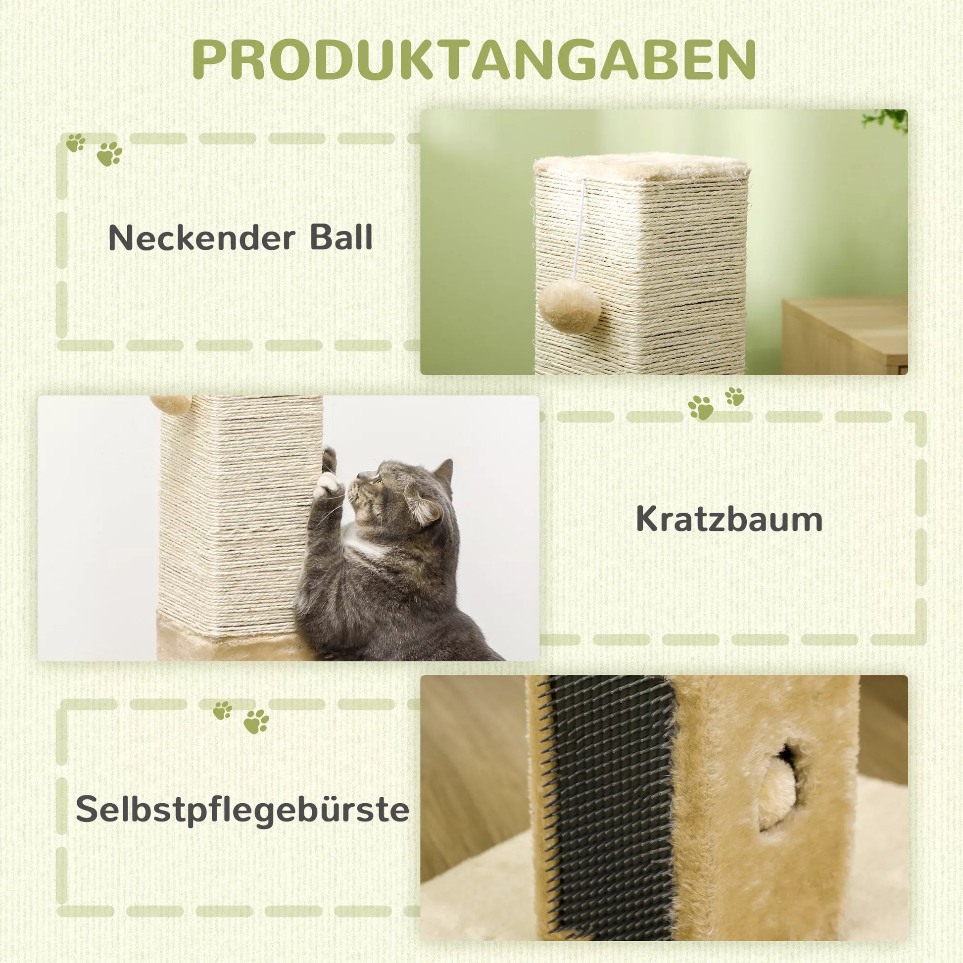 Kačių draskyklė, draskymo stulpas, 79 cm kačių medis su džiuto virve, su žaisliuku, pliušas, smėlio spalvos