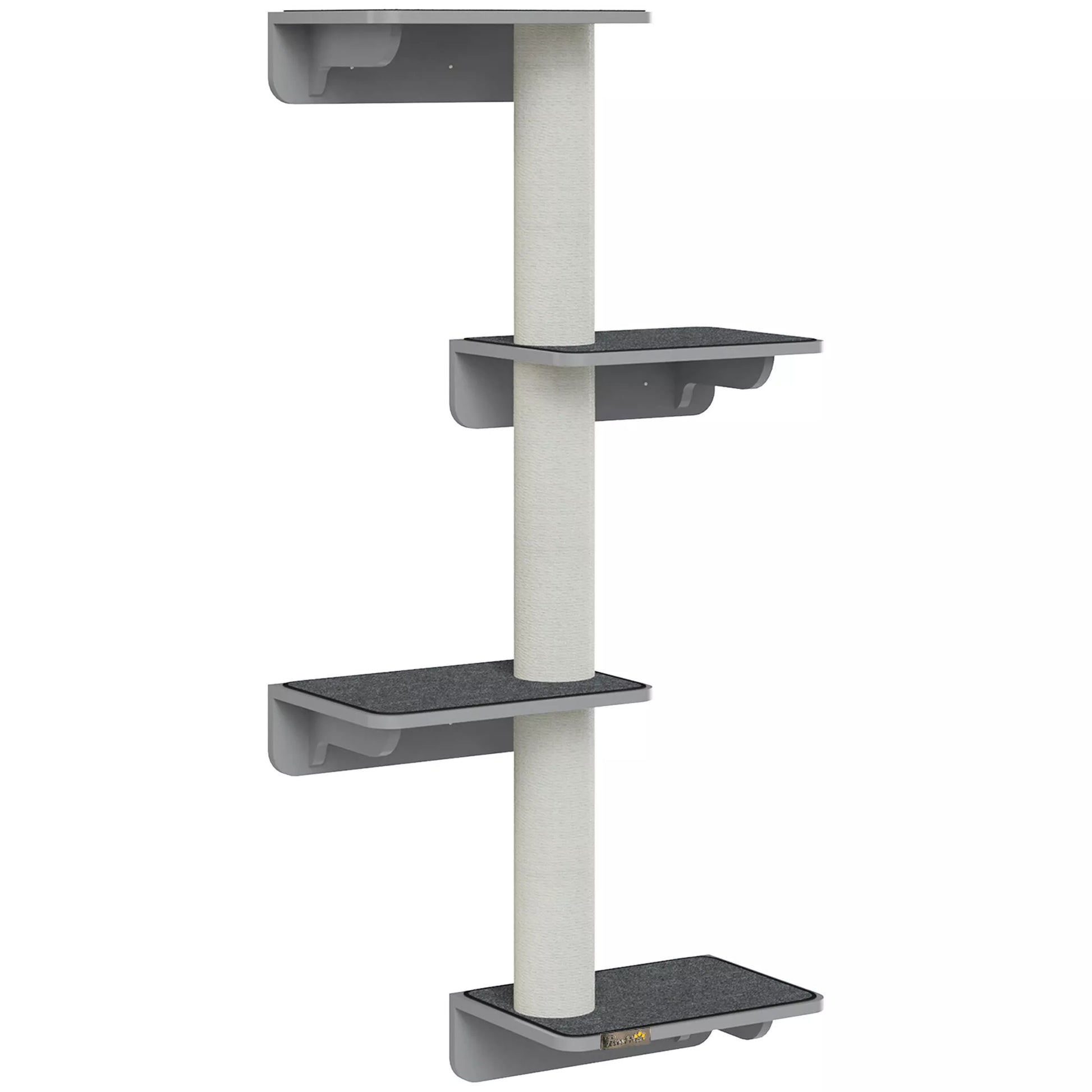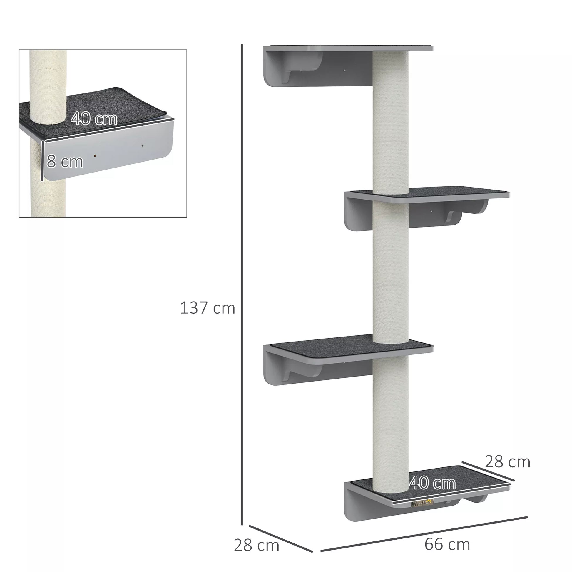 PawHut Katės draskyklė ant sienos, katės laipiojimo siena, baldai katėms ant sienos, linksma laipiojimo vieta katėms, montuojama ant sienos, medinė, šviesiai pilka+smėlio spalvos, 66 x 28 x 137 cm