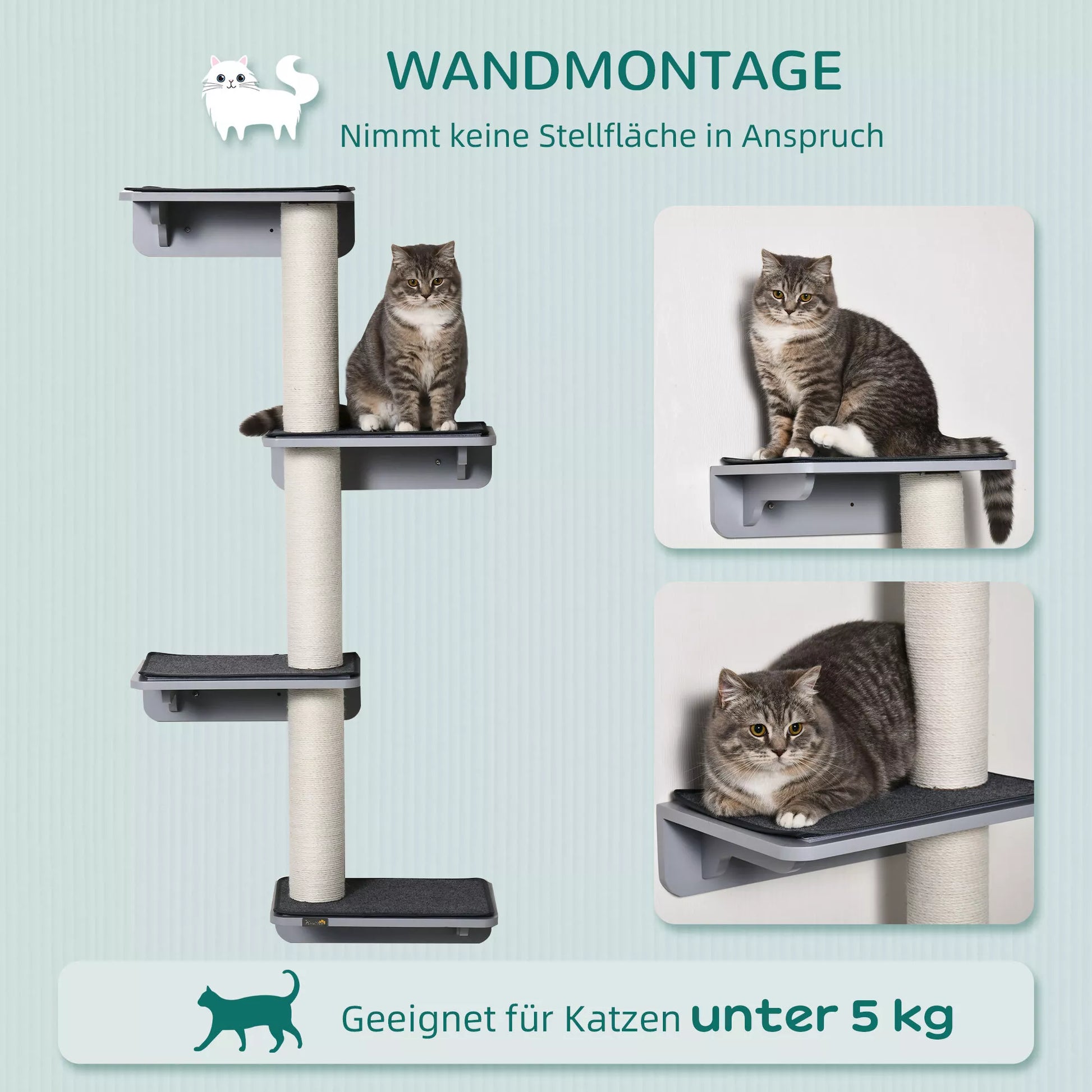PawHut draskyklė gali būti montuojama ant sienos ir susideda iš 4 šokinėjimo lentų ir 2 kačių namelių. Tvirtą konstrukciją sudaro MDF mediena ir minkštas kilimėlis. Ant 4 platformų katės gali žaisti, šokinėti ir ilsėtis. Draskymo stulpas su džiutu suteikia jūsų katei galimybę galąsti nagus, taip apsaugant jūsų baldus nuo nepageidaujamų subraižymų. Ši sieninė draskyklė yra ideali miego ir žaidimų vieta jūsų katėms.