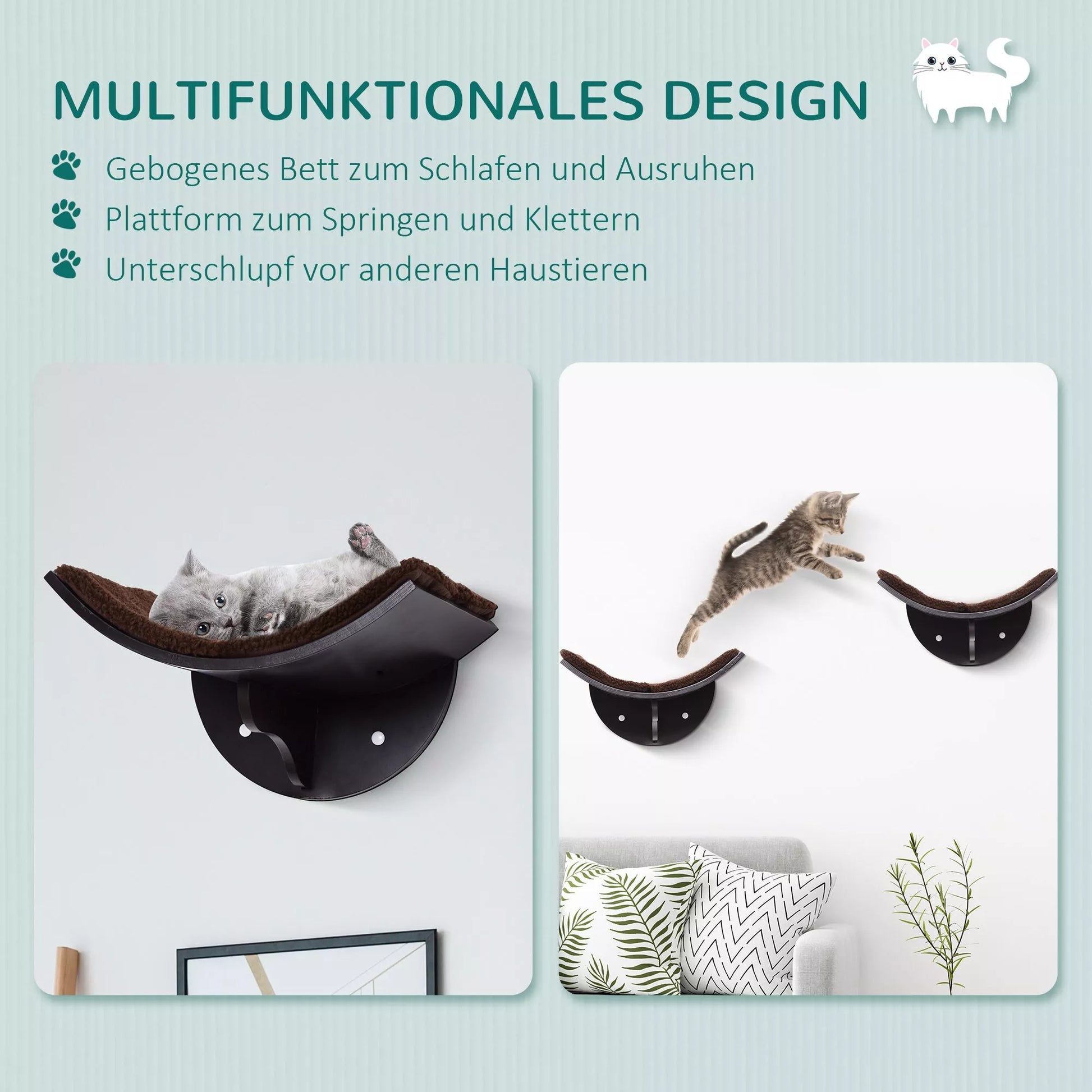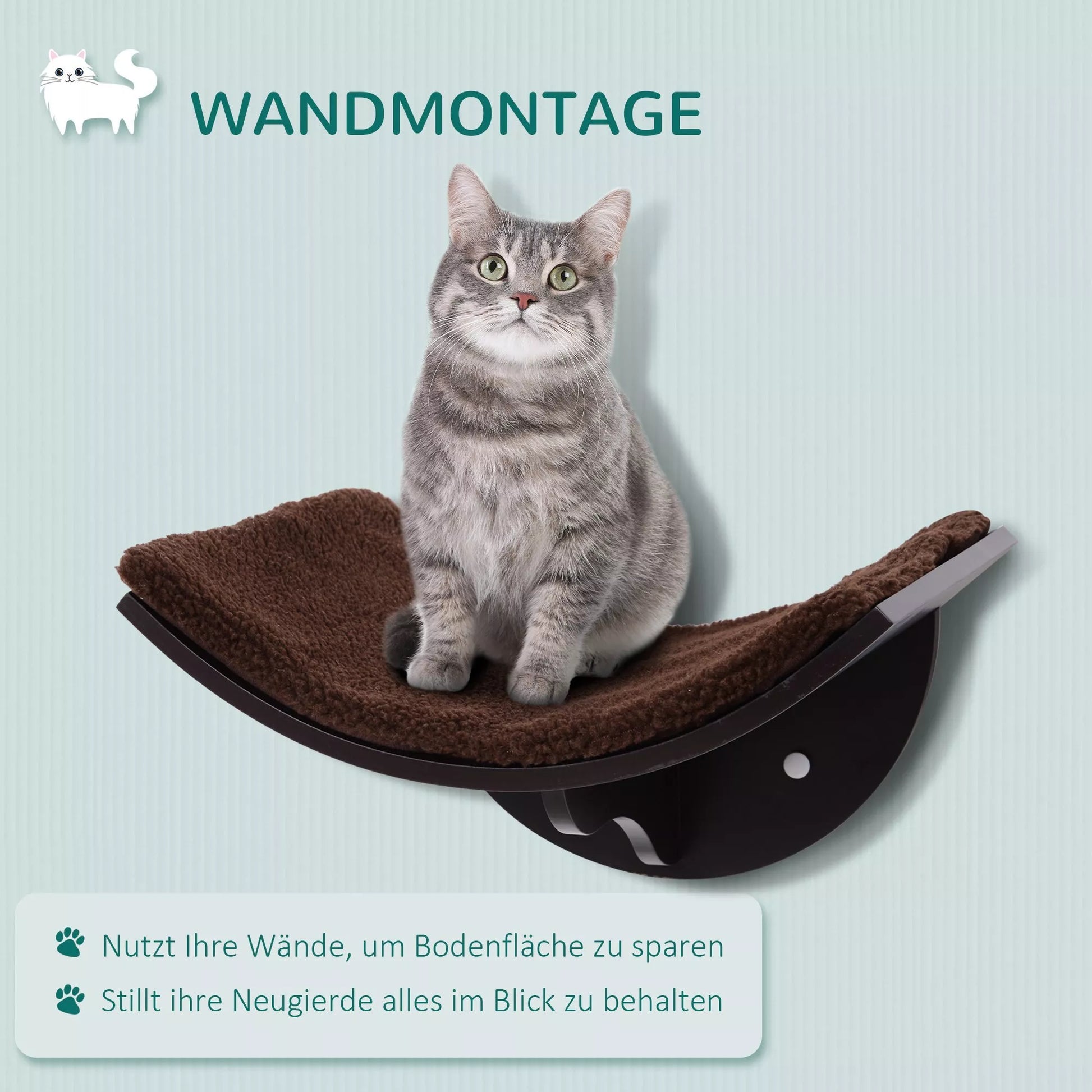 Katės gultas/lovytė ant sienos, katės lentyna, su minkštu paminkštinimu, ruda, 41 x 28 x 21 cm
