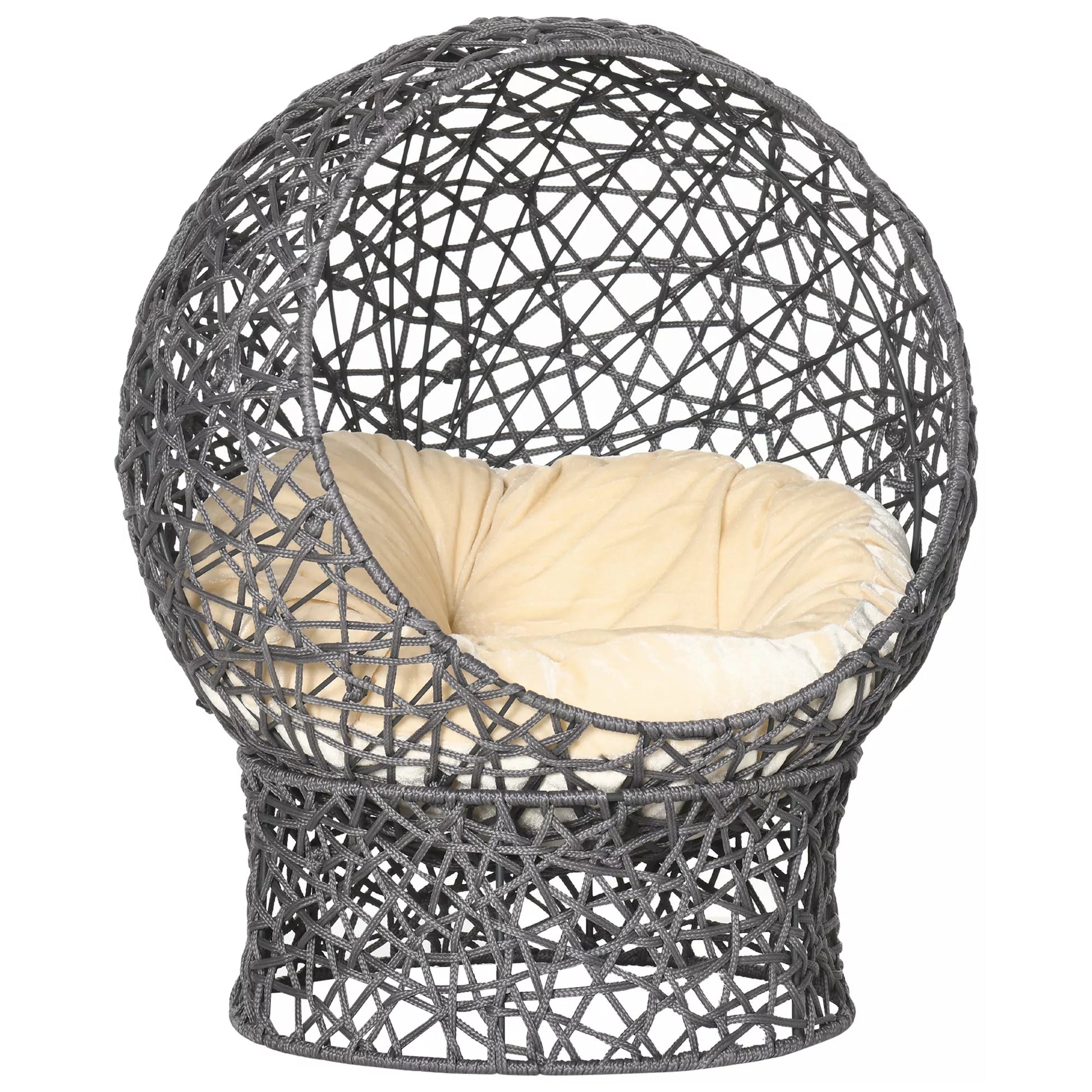 Katės krepšys, katės guolis su pagalvėle, 2 dalių, 50 cm x 50 cm x 60 cm, kreminės baltos + antracito