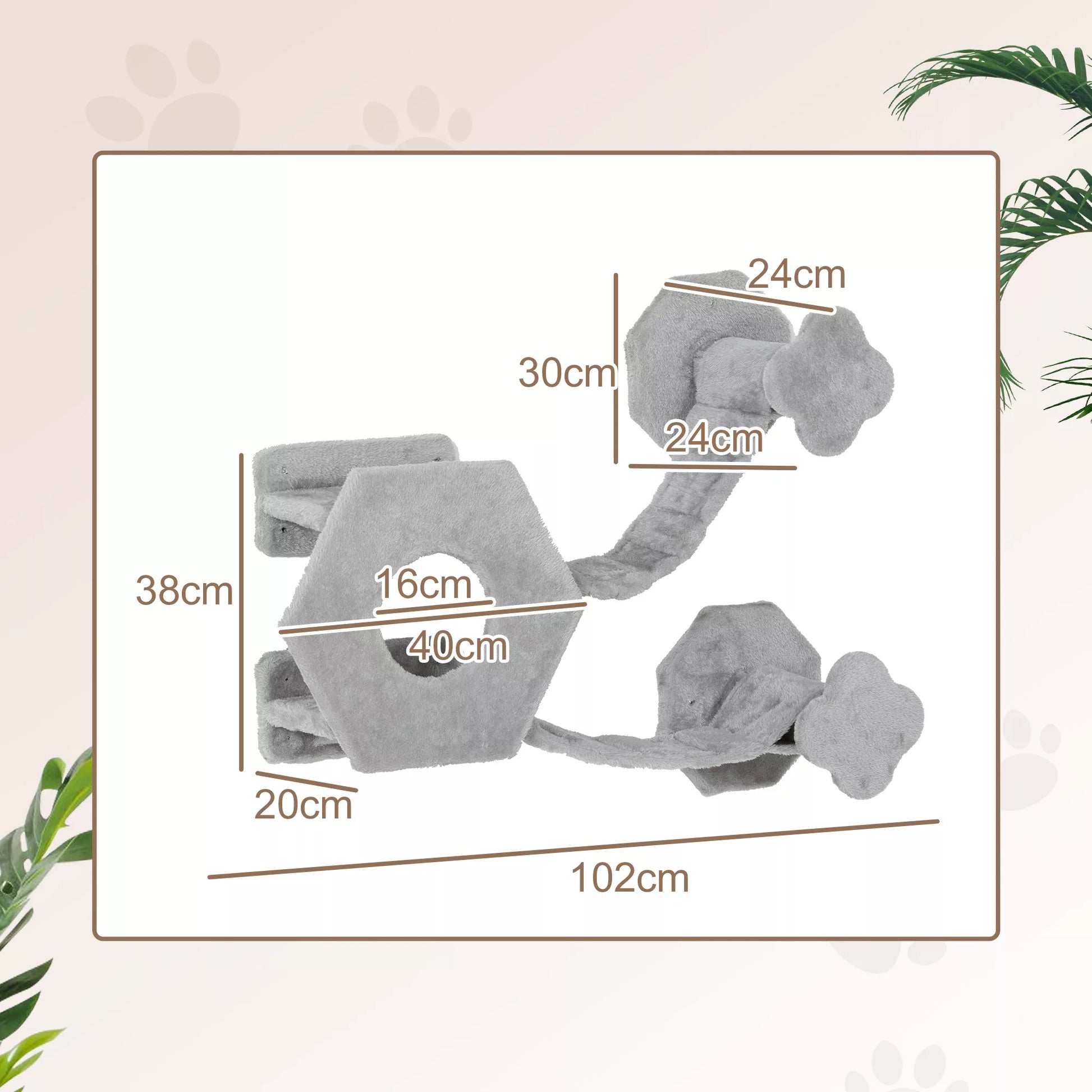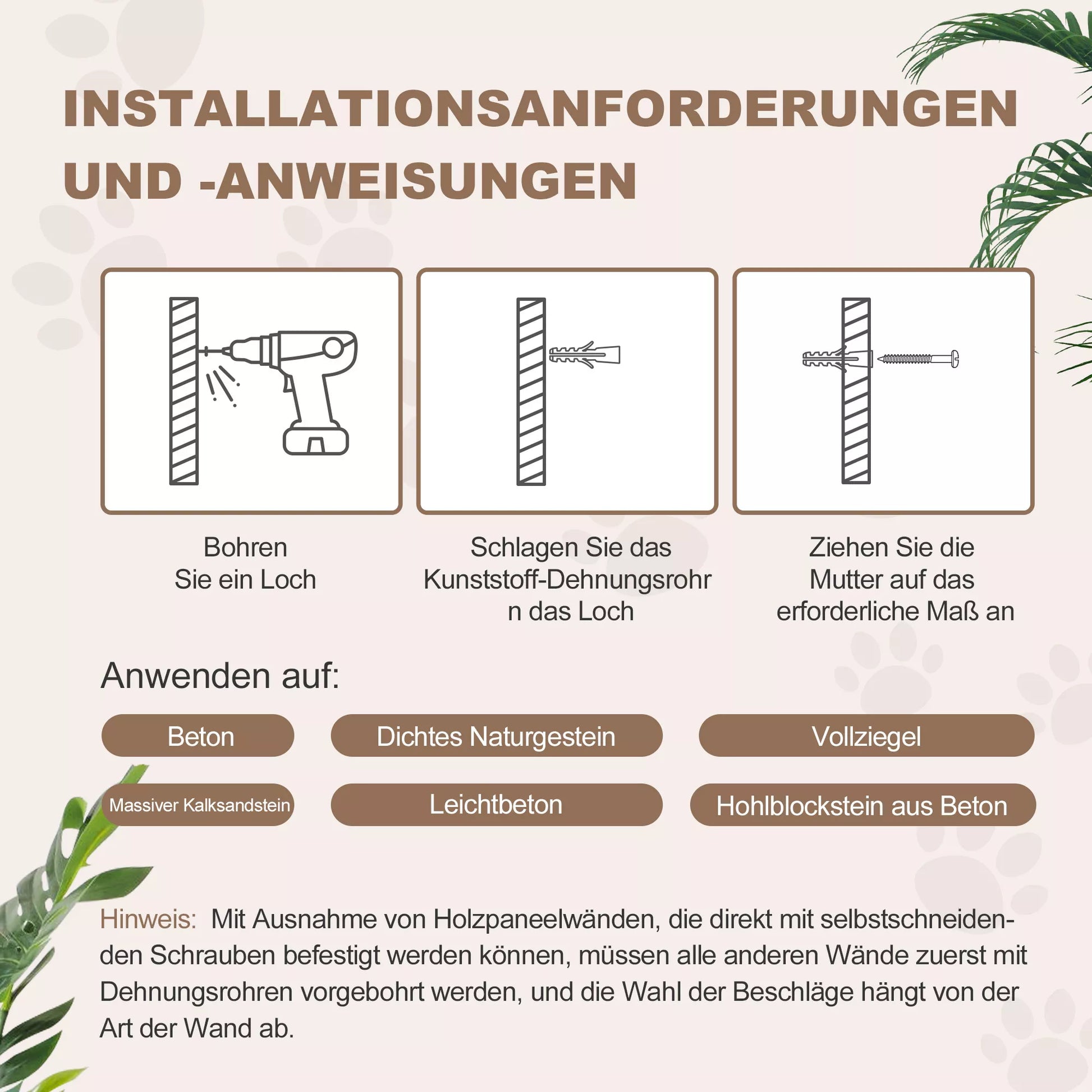 Paverskite savo namus kačių rojumis su ! sieniniais draskyklėmis. Šis rinkinys apima jaukų kačių namelį, dvi kopėtėles, pakopas, žaislinį kamuoliuką ir šokinėjimo platformas, visa tai aptraukta minkštu pliušu. Idealiai tinka taupant vietą, sieninis montuojamas rinkinys suteikia linksmybių ir komforto. Sukurkite jaudinančią žaidimų aikštelę savo katei, kartu užtikrindami stilingą jūsų namų dizainą. Jūsų katė tai pamėgs!