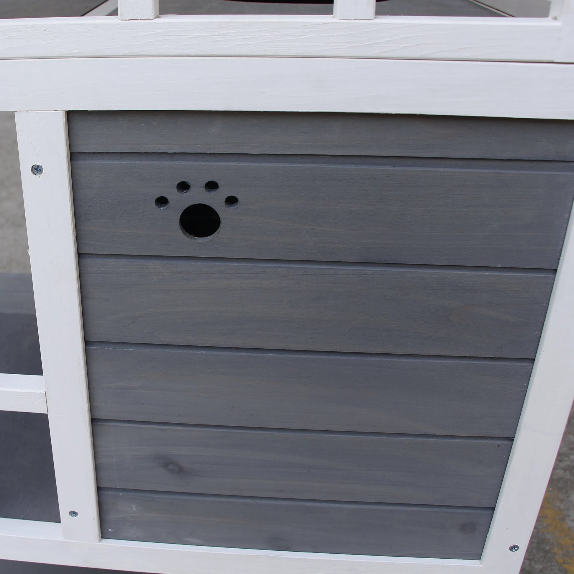 - ✔ Šis kačių namelis pagamintas iš eglės medienos ir suteikia jūsų katei prieglobstį nuo vėjo ir lietaus.