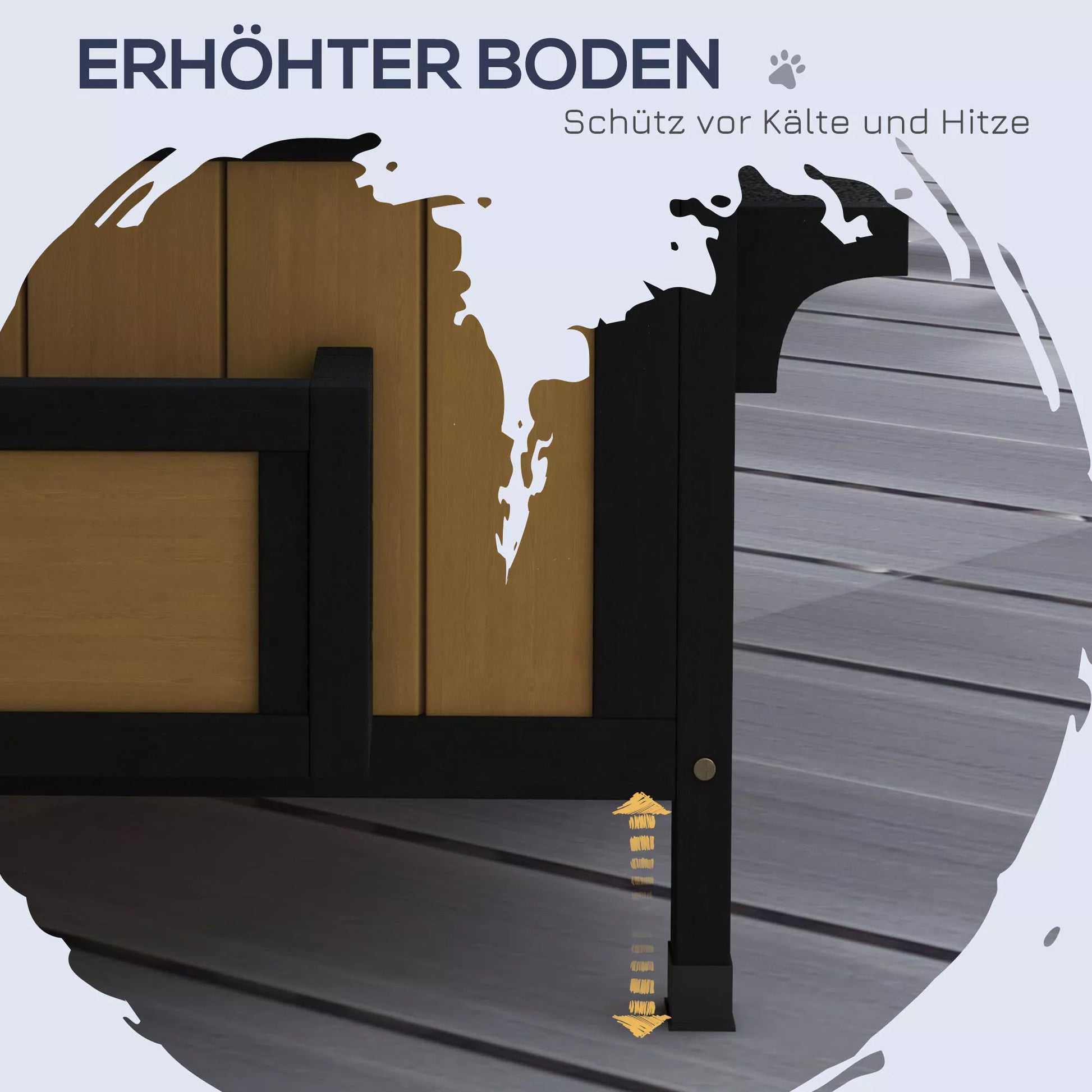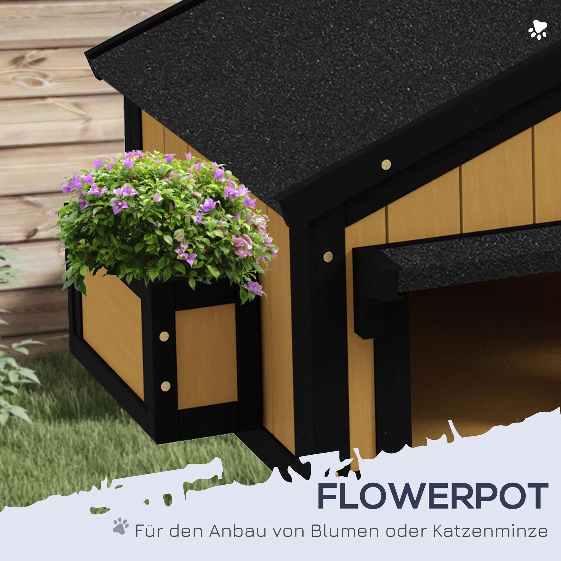 PawHut Katės namelis, katės būdelė, katės guolis, su gėlyne, 96 cm x 65 cm x 85,5 cm, geltonos + baltos + juodos spalvos