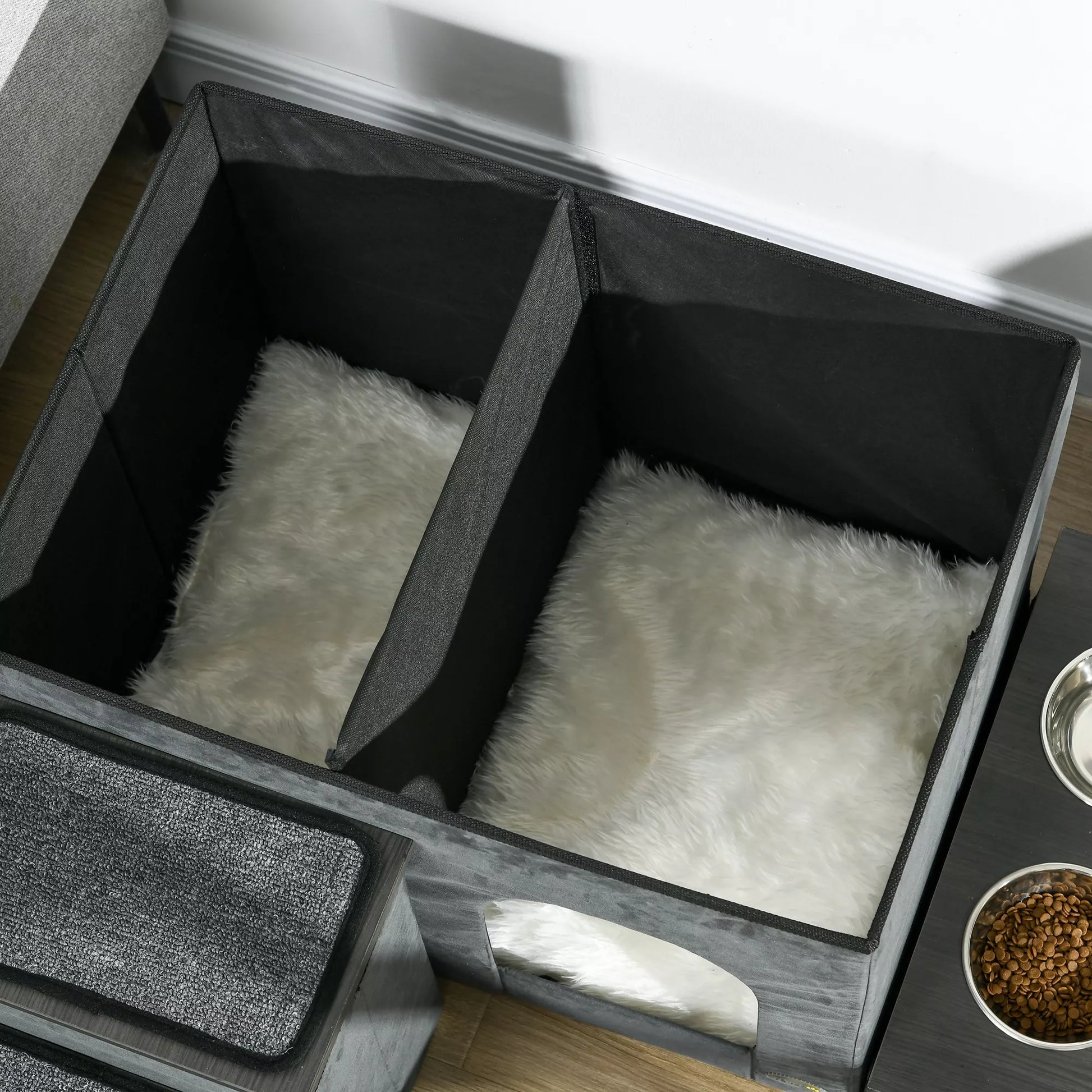 Katės namelis Katės namelis Katės urvas, 3 laipteliai gyvūnams, 2 ėdalo dubenėliai, 70 x 50 x 51 cm, pilkos spalvos