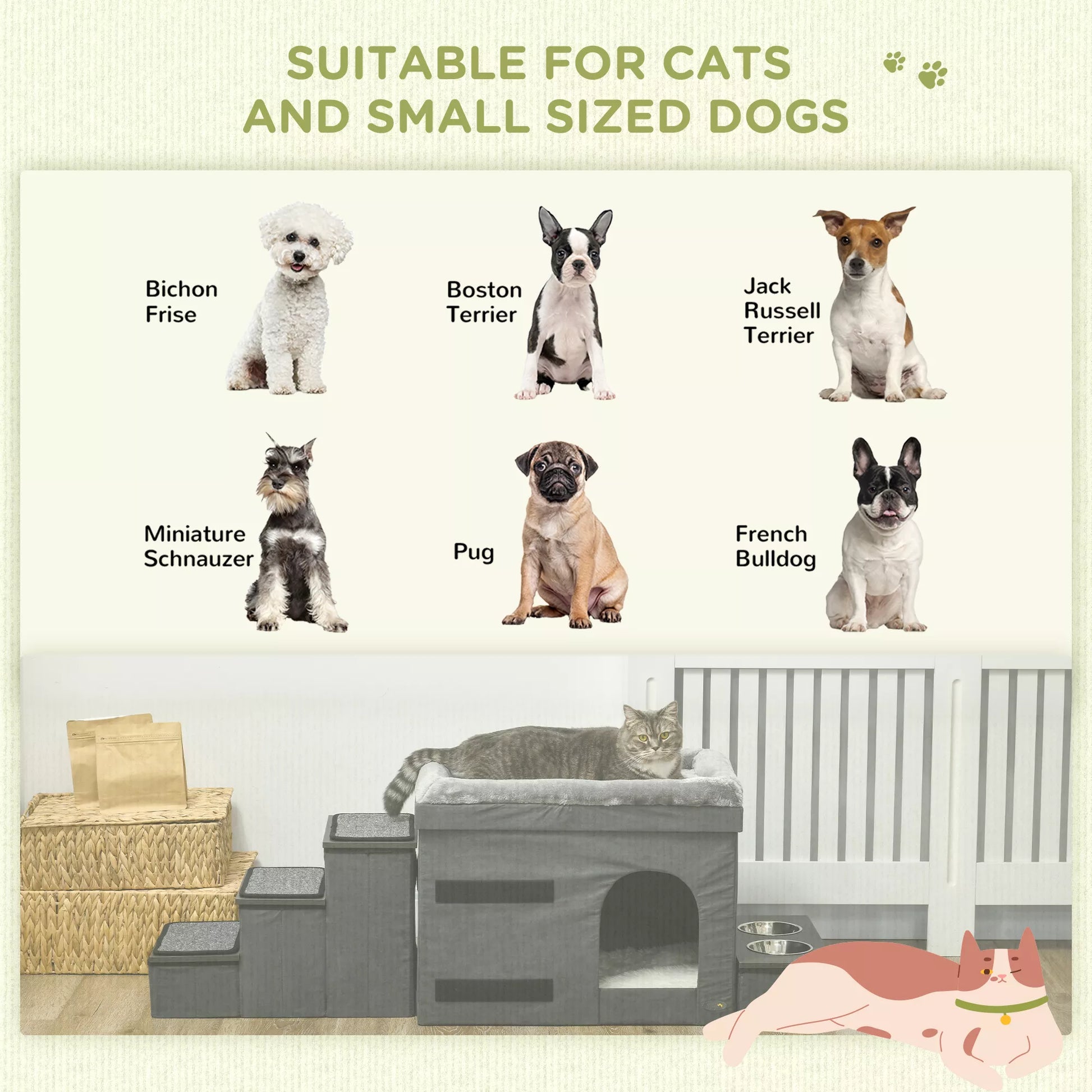 - ✔ Galima naudoti kaip laiptus, lovelę ar namelį katėms/šunims