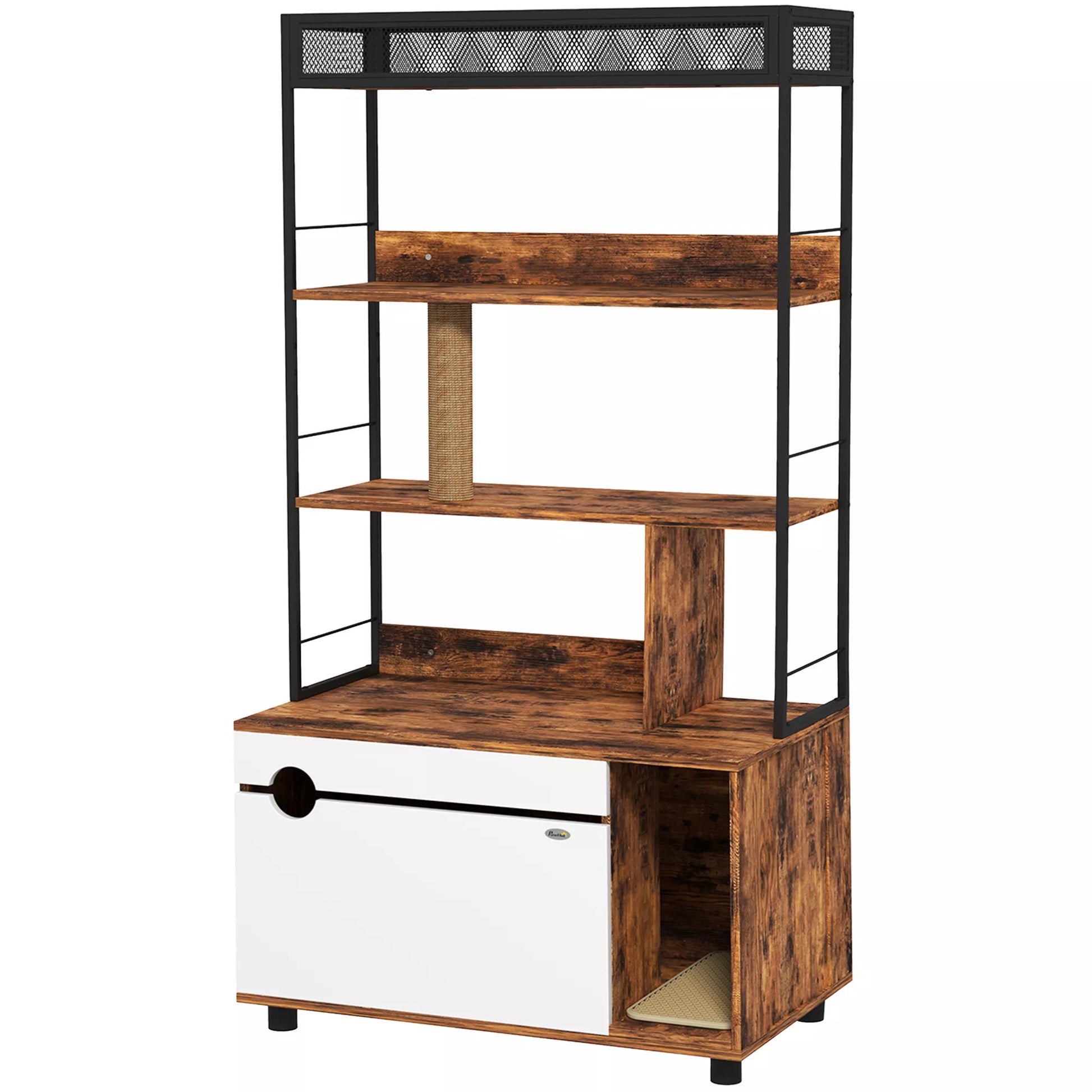 Uždaras kačių tualetas su 3 lygių lentyna ir draskykle, 80 x 48 x 152 cm, ruda