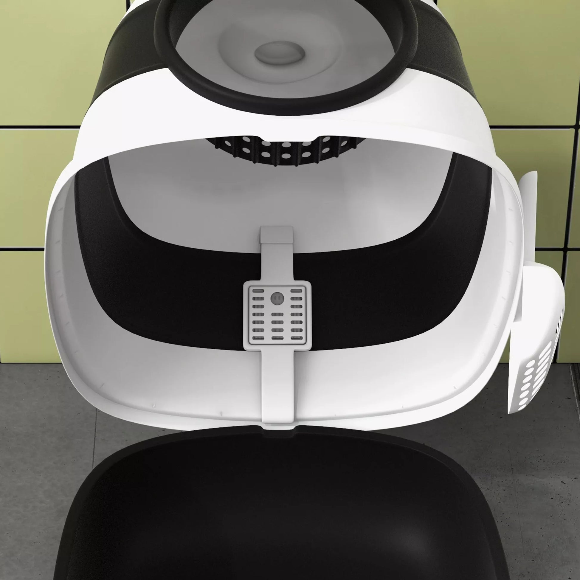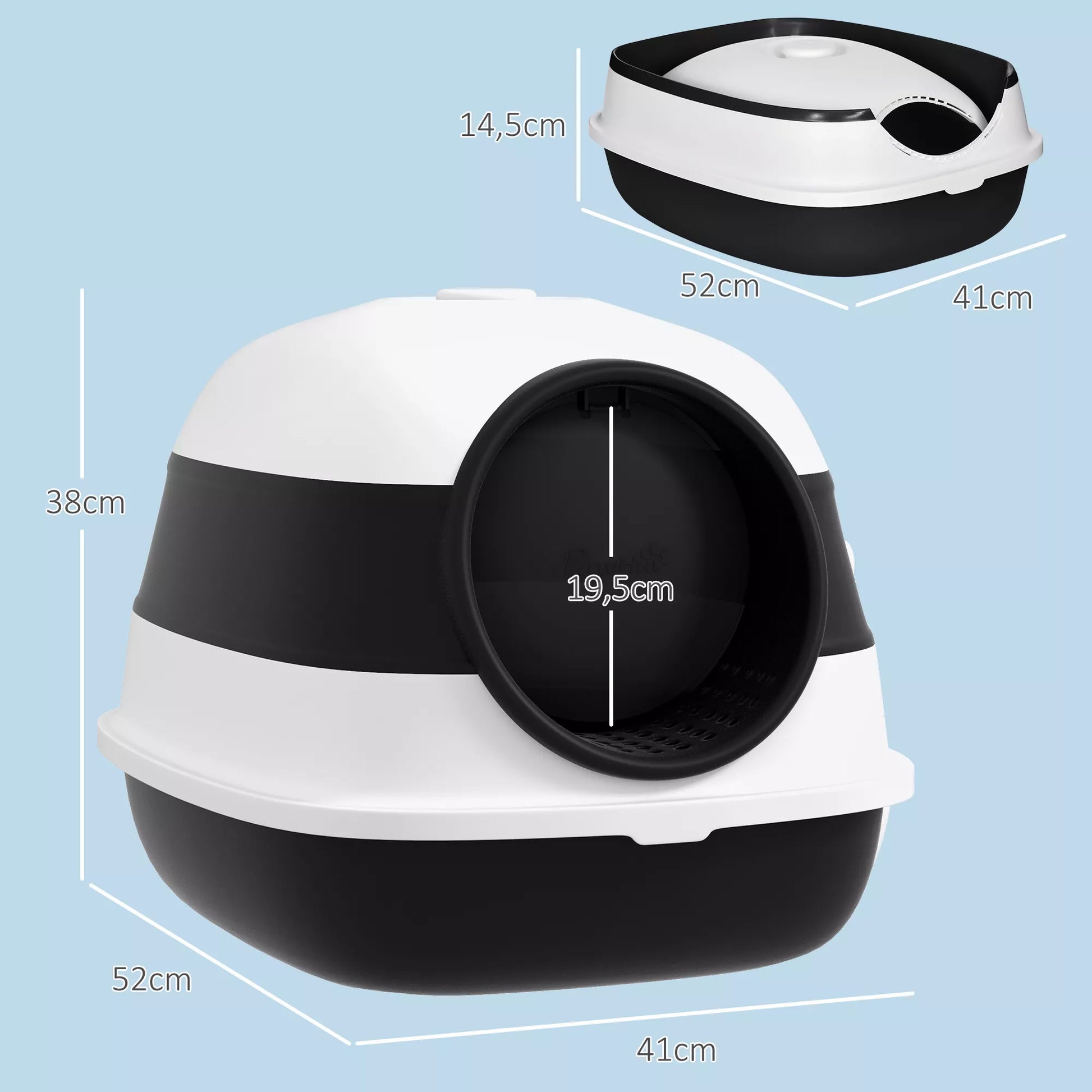 Katiliukas su dangčiu ir kraiko kastuvėliu, katėms iki 5 kg, 52x41x38 cm, Balta/Juoda
