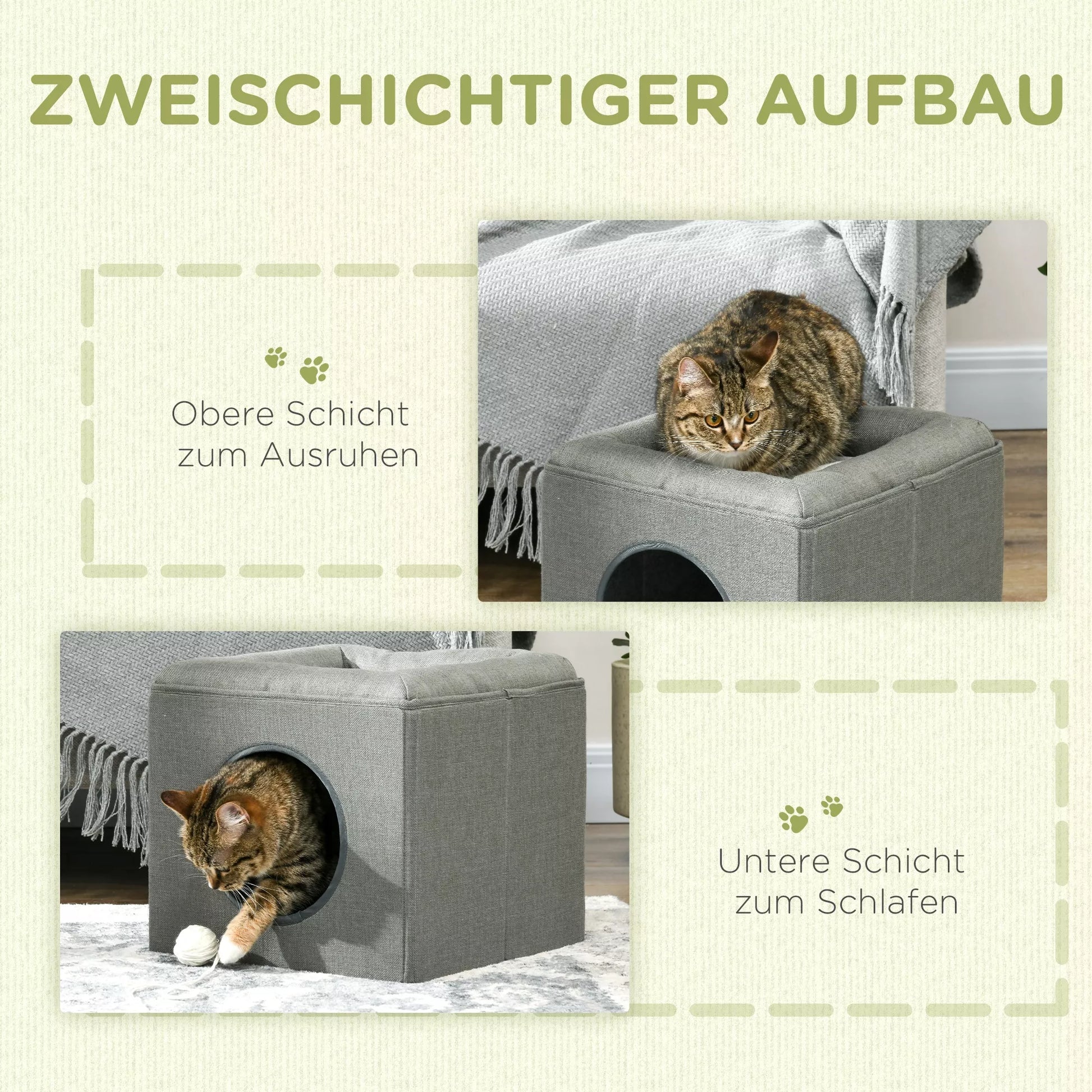 - ✔ Modernus ir paprastas kačių namelio dizainas papildo jūsų interjerą.