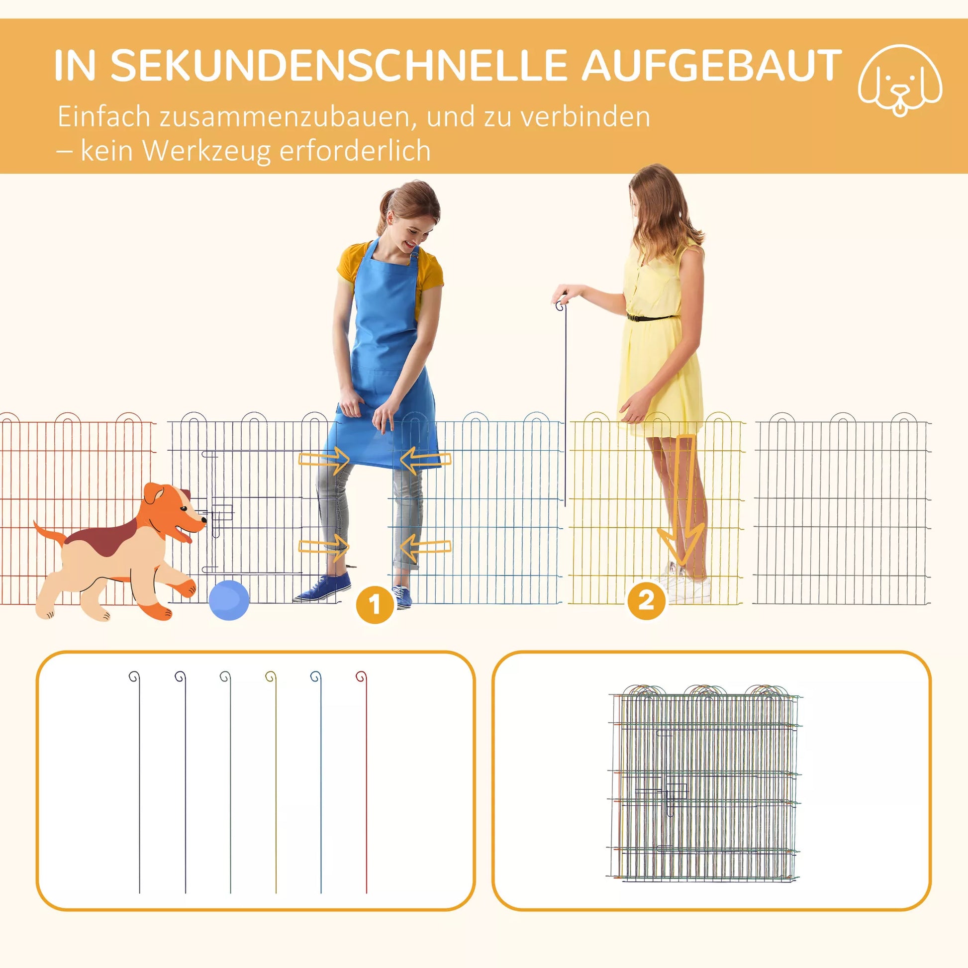 Laisvalaikio voljeras, šuniukų aptvaras, modulinis dizainas, užrakinamas, metalas, Ø120x60cm aukštis, spalvotas