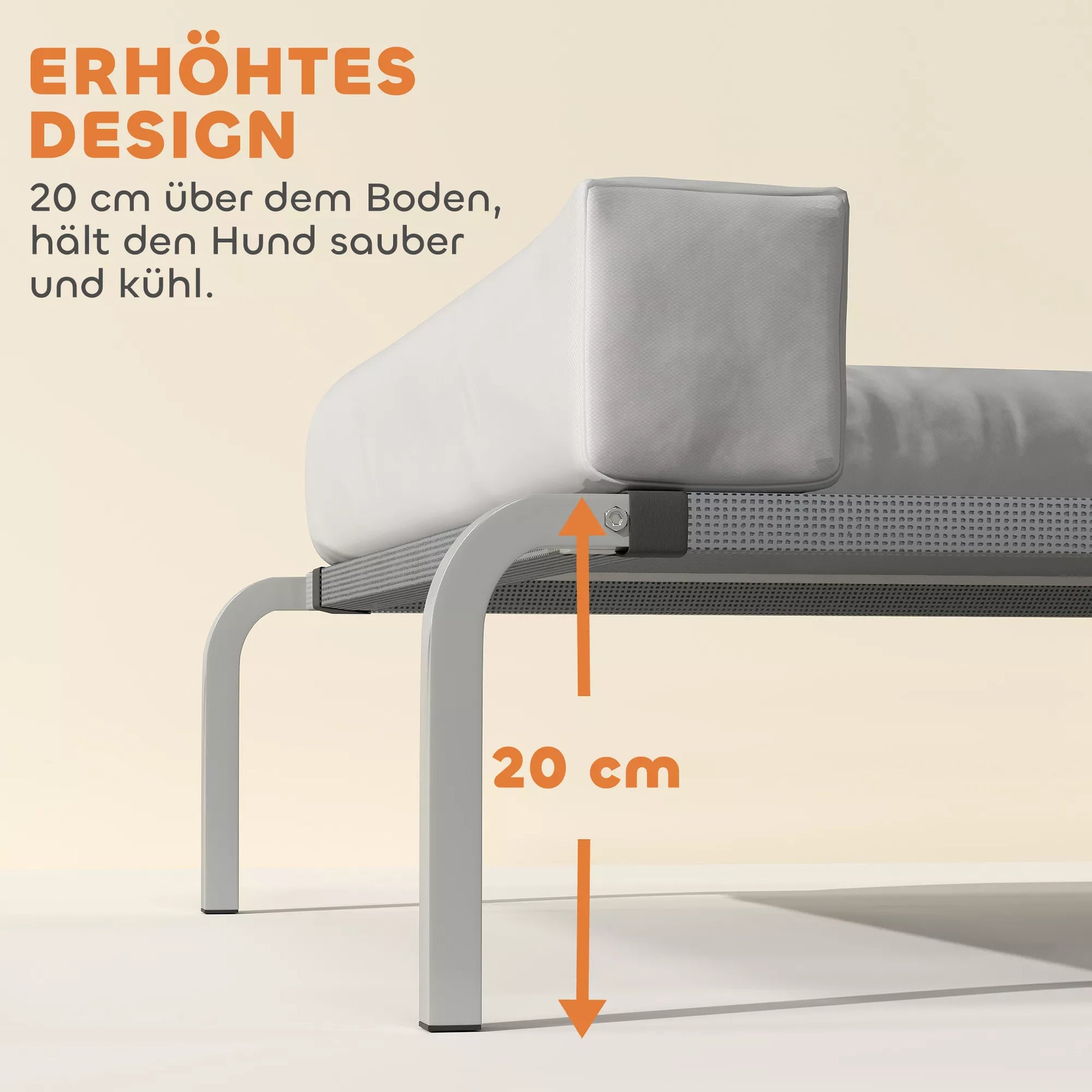 Lauko šunų gultas, paaukštinta šunų lova vidutinio dydžio šunims, su L formos pagalvėle, 110x75x30cm, šviesiai pilka