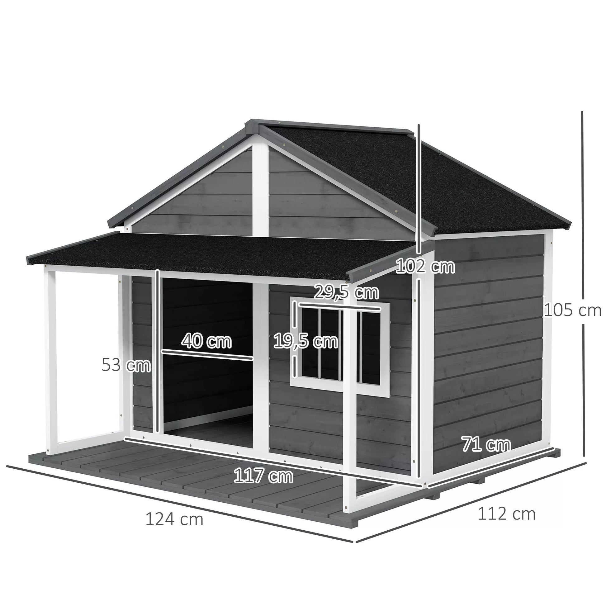 - ✔ Pagrindinio namelio matmenys: 117 pločio x 71 gylio x 102 aukščio cm