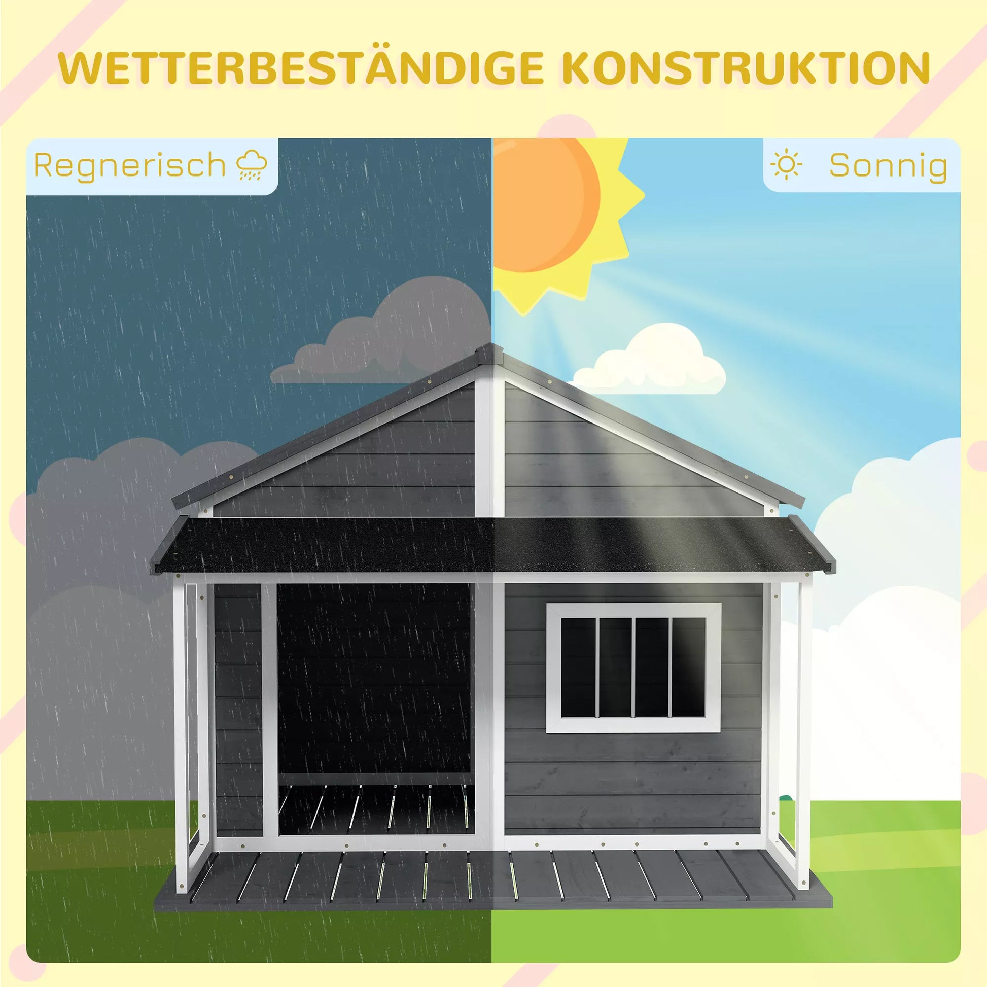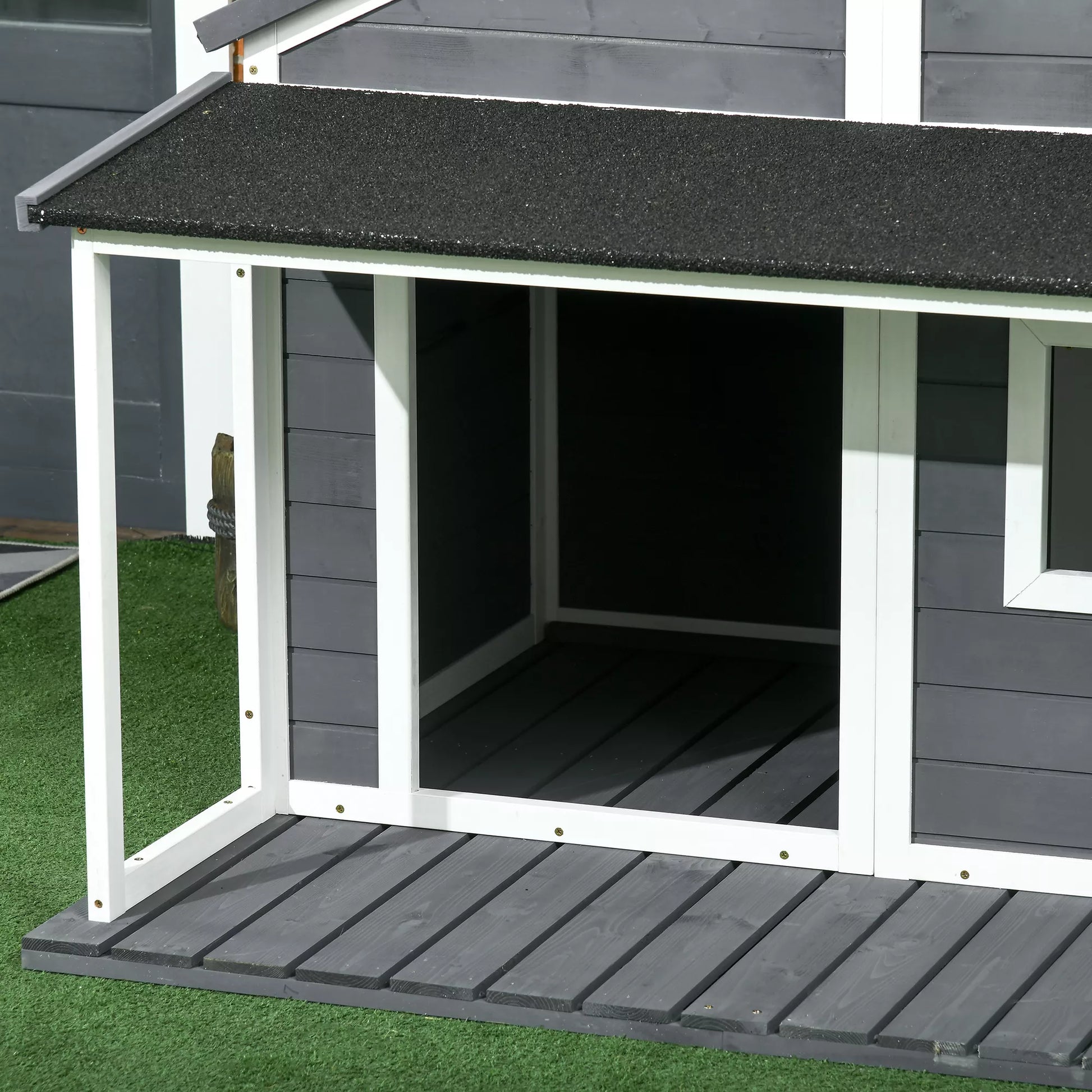 - ✔ Šis kotedžo stiliaus šunų namelis yra patrauklus priedas sodui, terasai ar bet kuriai kitai lauko erdvei