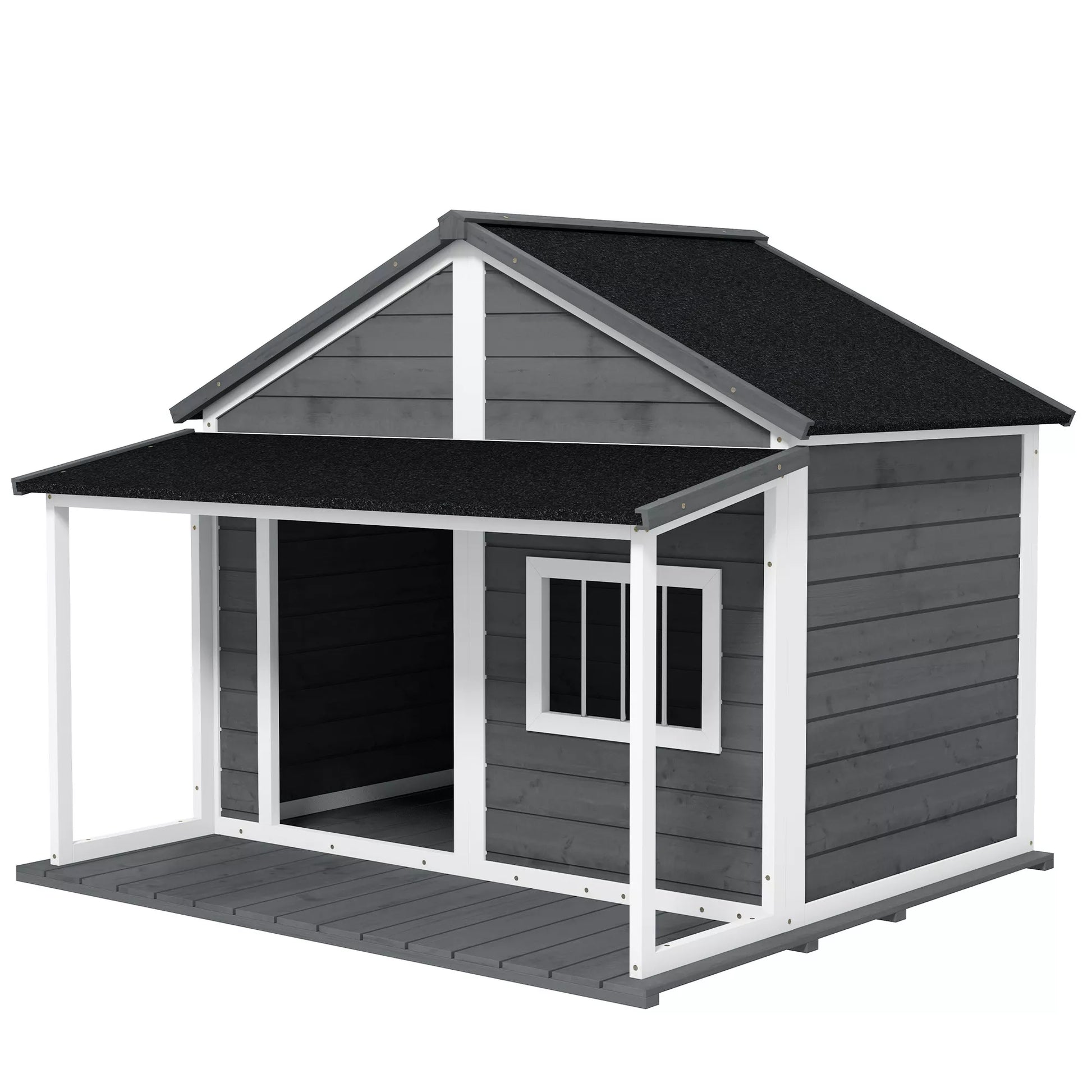 Lauko šunidė, su veranda, atspari oro sąlygoms, 124 cm x 112 cm x 105 cm, Pilka + Balta