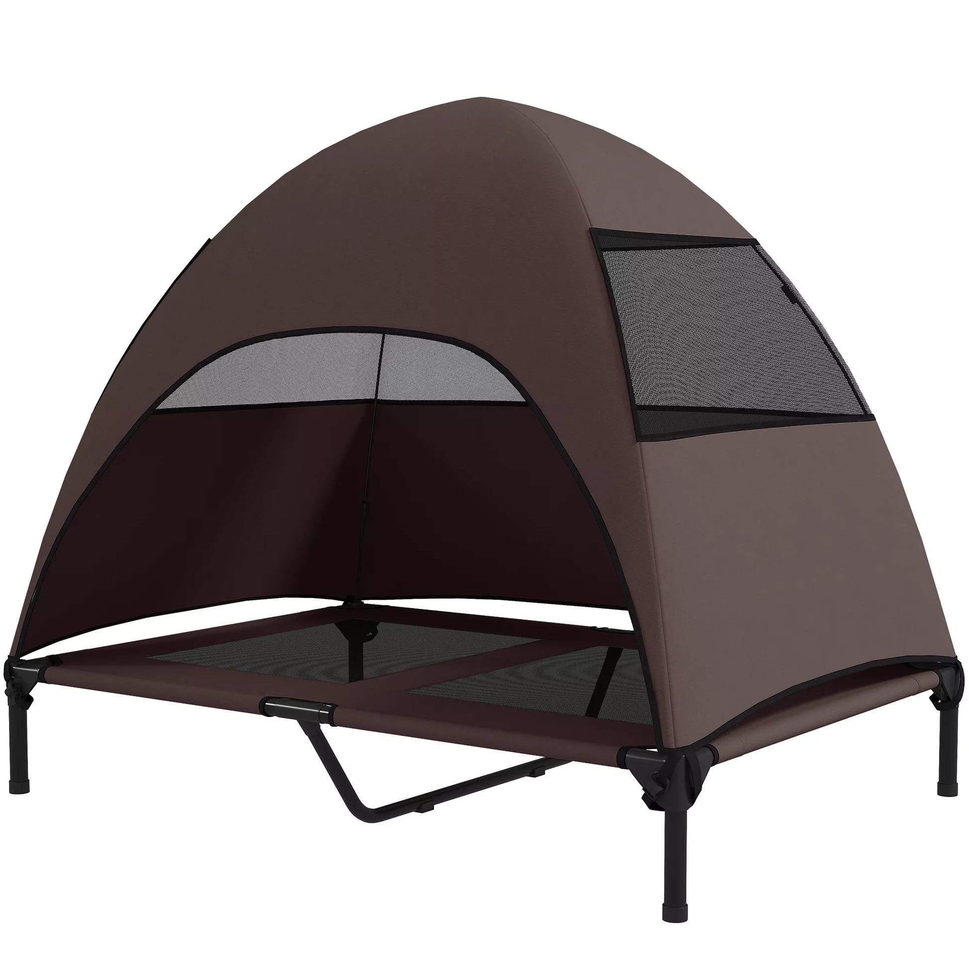 Lauko šunų gultas su stogeliu, paaukštinta šunų lova dideliems šunims, 106 x 76 x 99 cm, kavos spalvos