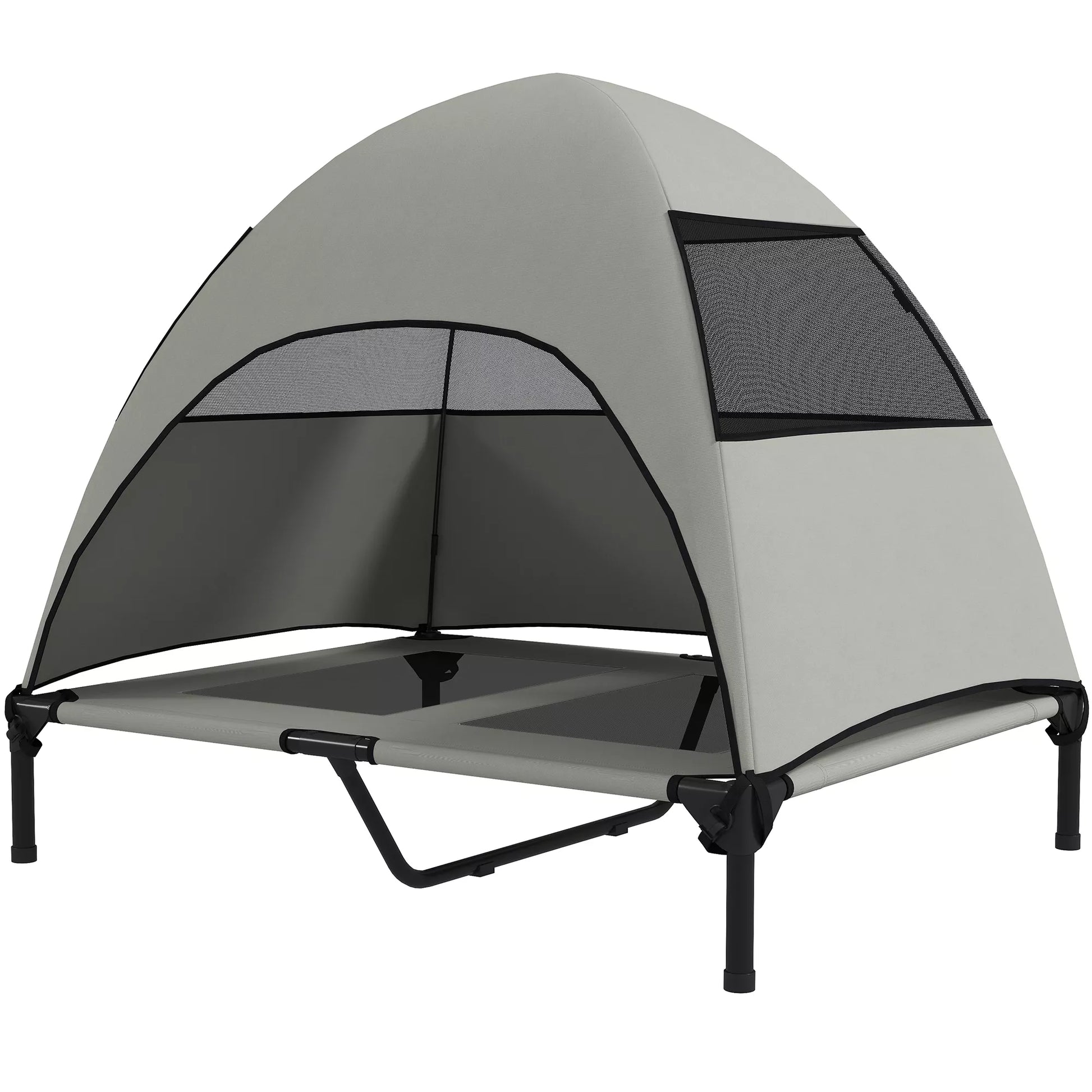 Lauko šunų gultas su stogeliu, paaukštinta šunų lova dideliems šunims, 91 x 76 x 90 cm, šviesiai pilka