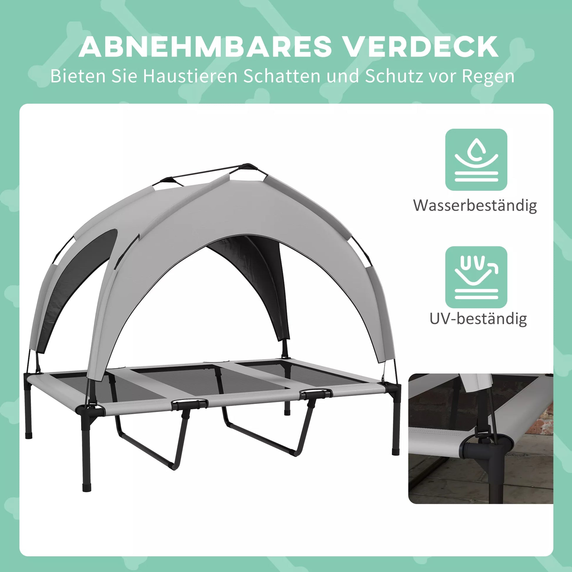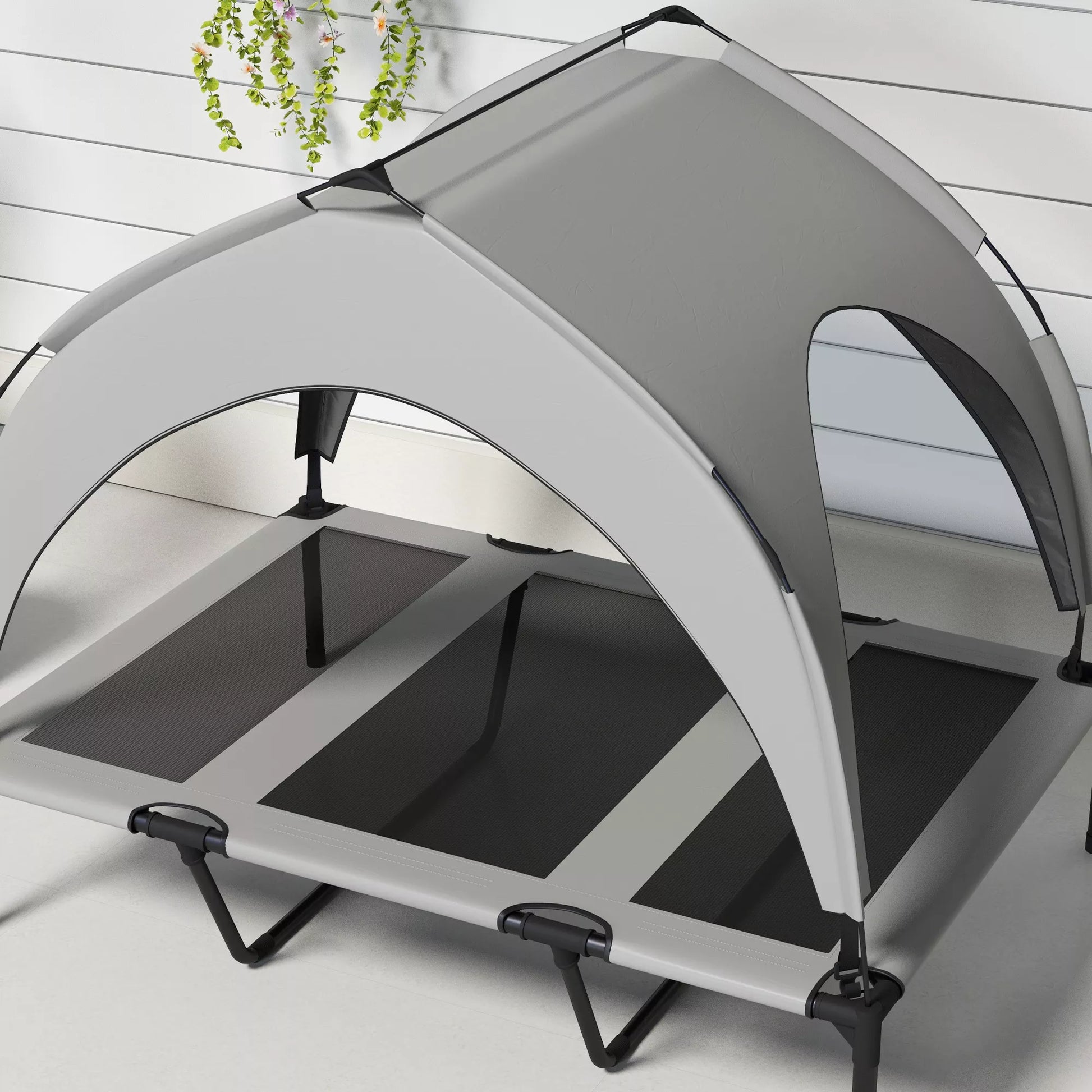 Palepinkite savo šunį su stilinga šunų lova, kuri suteikia aukščiausio lygio komfortą. Vandeniui ir UV spinduliams atspari stogelio danga apsaugo jūsų keturkojį draugą nuo saulės ir lietaus, o orui pralaidus tinklinis paviršius užtikrina malonų vėsinimą. Idealiai tinka nuotykiams lauke, ši vėsinanti šunų lova yra puiki poilsio vieta jūsų augintiniui. Padovanokite savo šuniui komfortą, kurio jis nusipelnė, ir mėgaukitės kartu ramiais lauko malonumais.