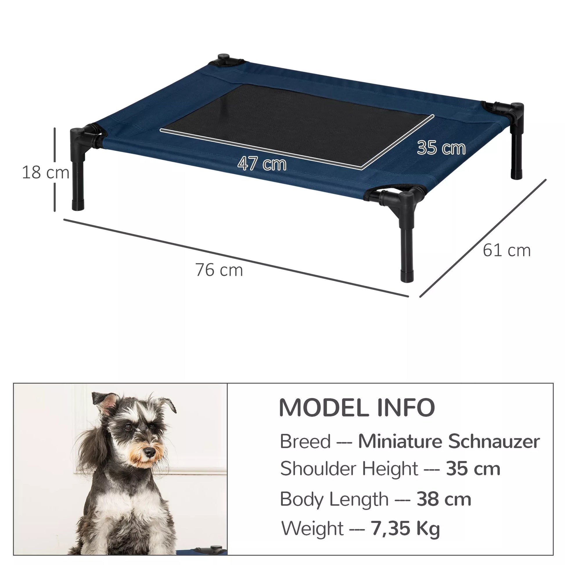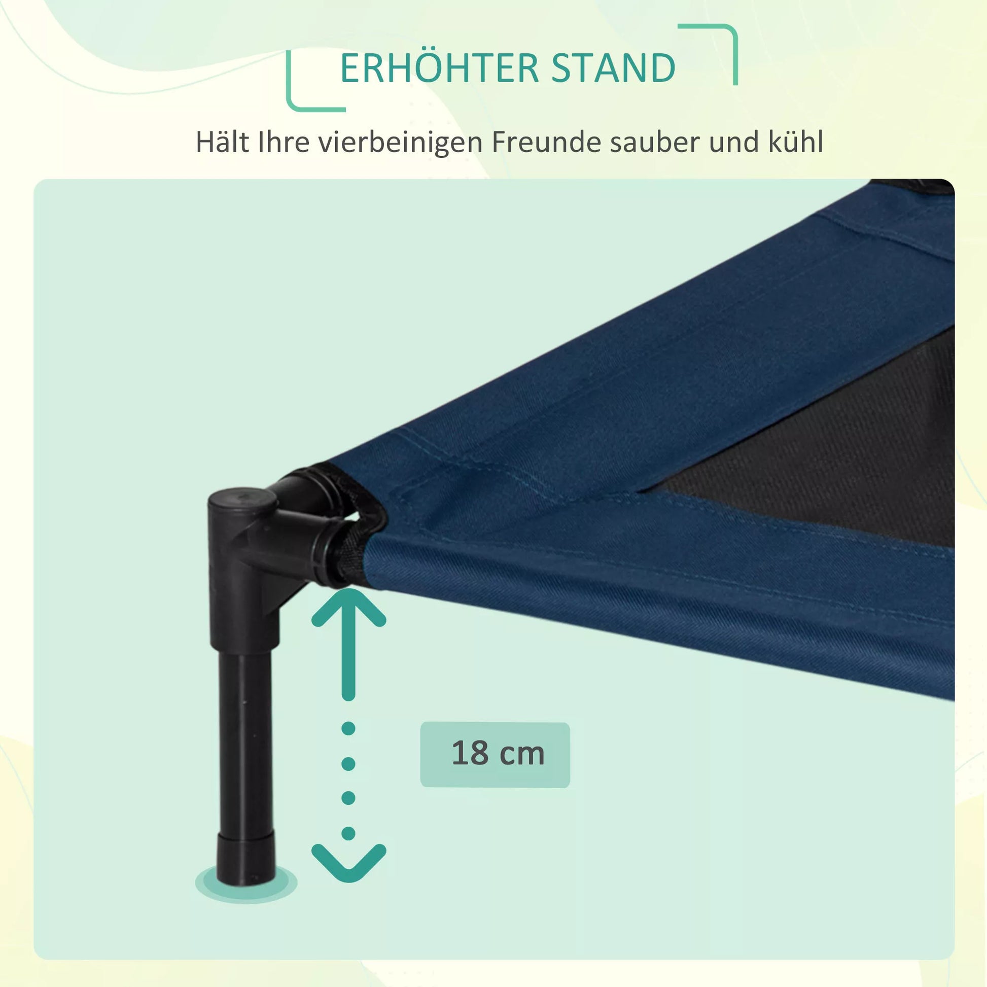 Šunų ir kačių lauko lova, augintinio gultas, miego vieta, plieninis rėmas, 600D Oksfordo audinys, mėlyna, 76 x 61 x 18 cm