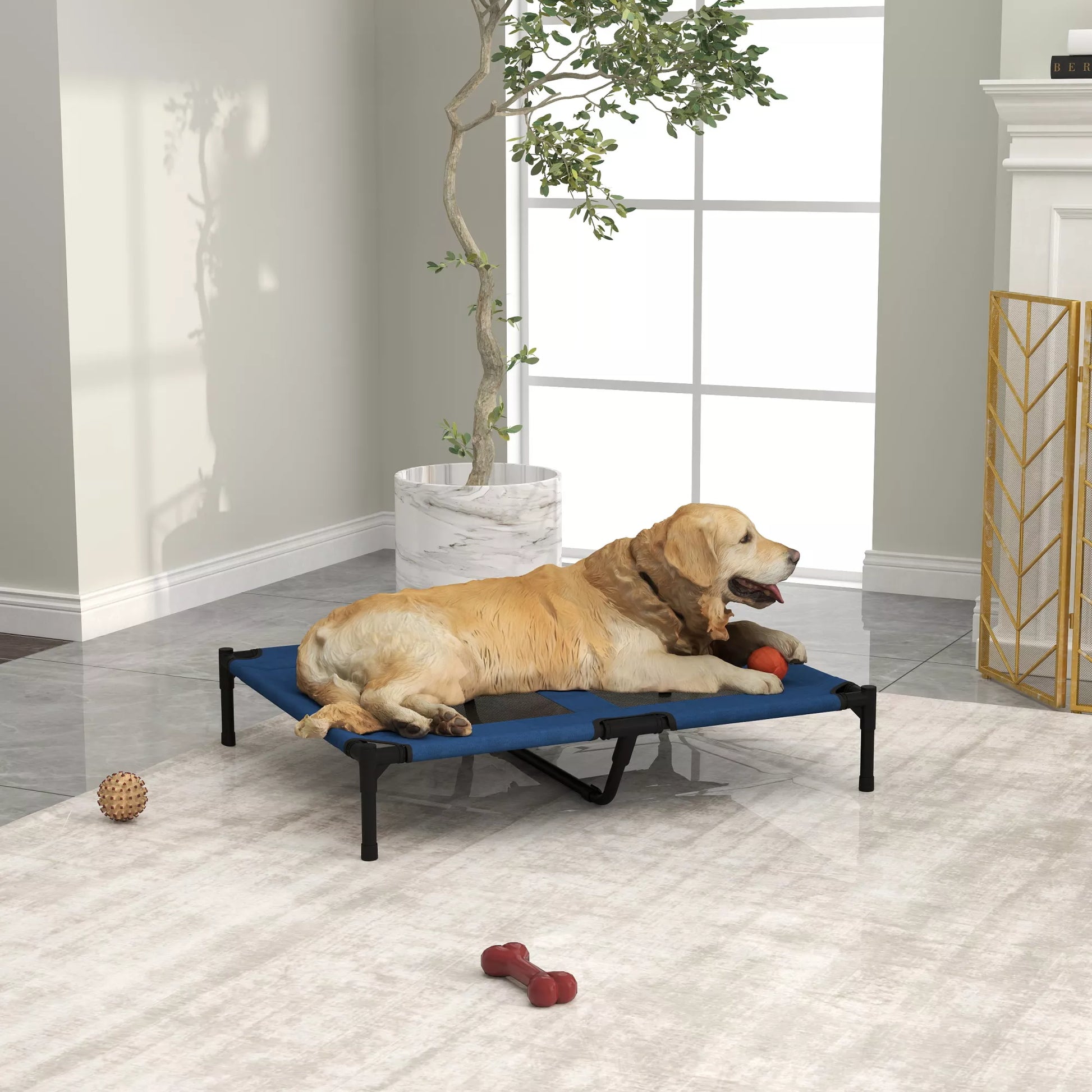 Lauko šunų ir kačių lova, augintinio gultas, metalinis, 600D Oxford audinys, mėlyna, 91,5 x 76,2 x 18 cm