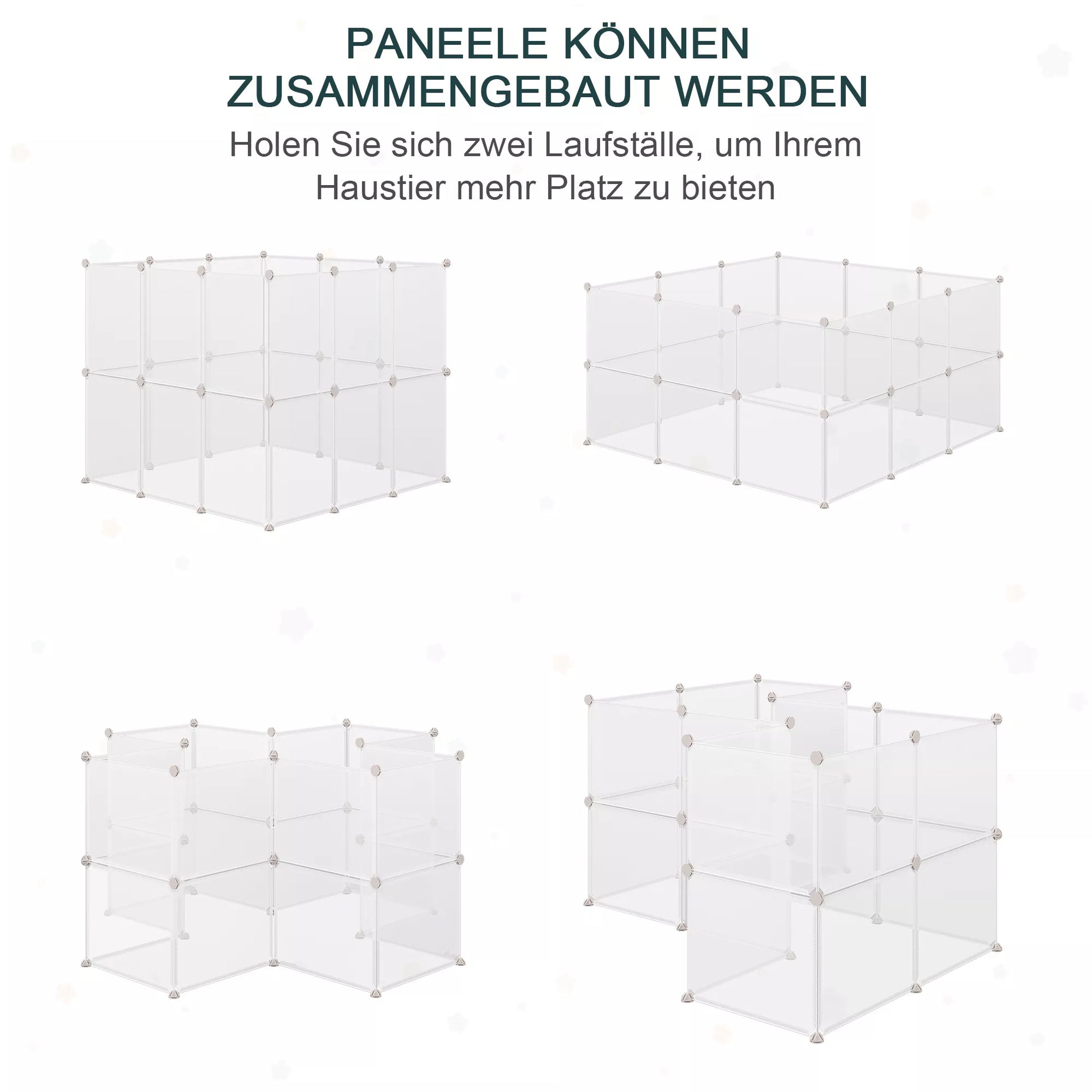 Atraskite naminių gyvūnėlių maniežą – puikų sprendimą šeimoms, turinčioms mažus naminius gyvūnėlius. Šis universalus maniežas suteikia erdvę, kurioje jūsų augintiniai gali saugiai žaisti ir ilsėtis. Dėl lanksčių konfigūracijų jį galima lengvai pritaikyti prie jūsų namų, nesvarbu, ar tai būtų svetainė, ar sodas. Idealiai tinka kačiukams, triušiams, šinšiloms, ežiams ir jūrų kiaulėms, užtikrina harmoningą bendravimą ir suteikia jums tikrumą, kad jūsų gyvūnai yra saugioje aplinkoje. Būtinas kiekvienuose gyvūnus mylinčiuose namuose.