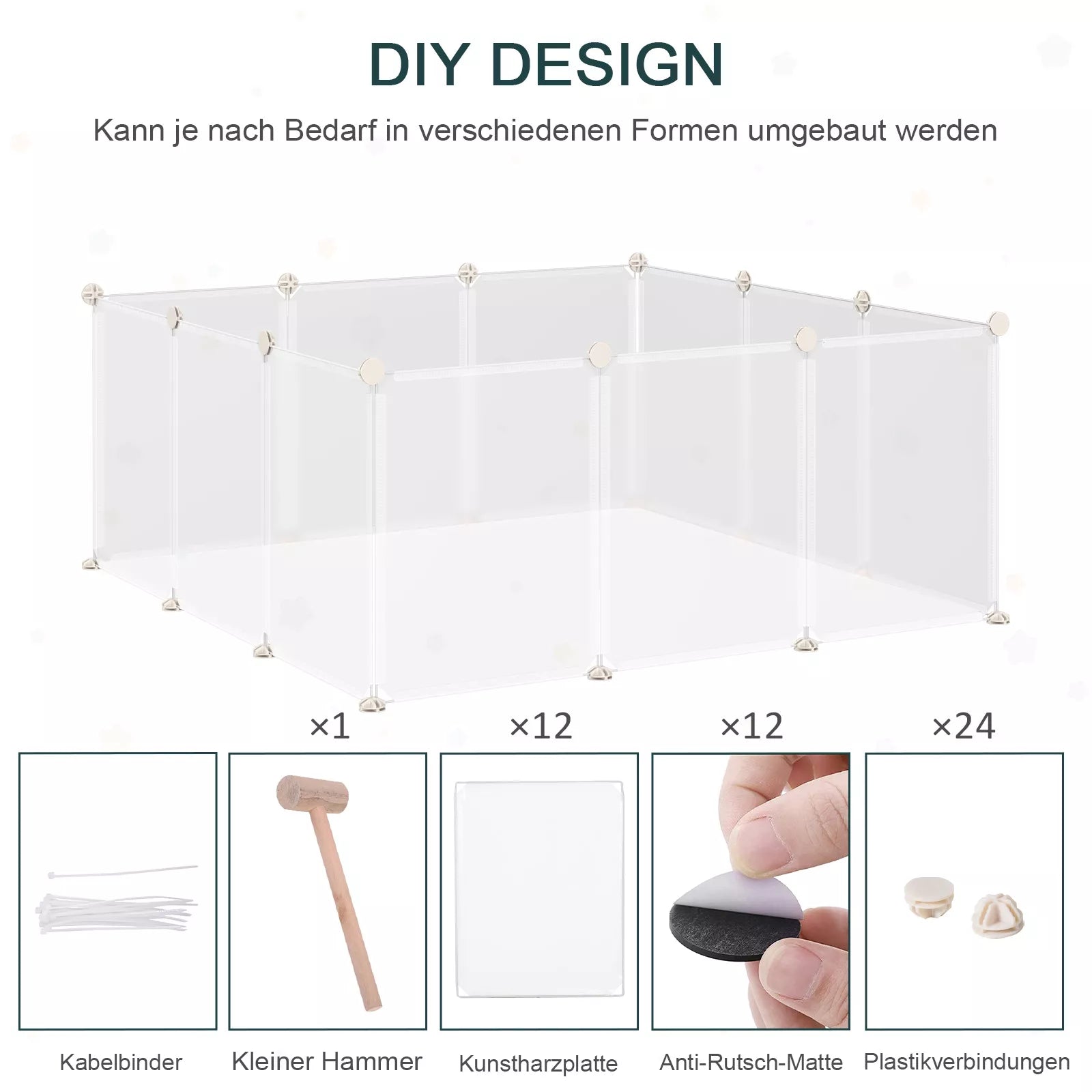Laisvasis aptvaras Vaikų aptvaras DIY Laisvasis aptvaras Tinklinis aptvaras Aptvaras Maži naminiai gyvūnėliai Aptvaras vidaus patalpoms 12 plokščių Balta Metalas PP derva 105 x 105 x 45 cm