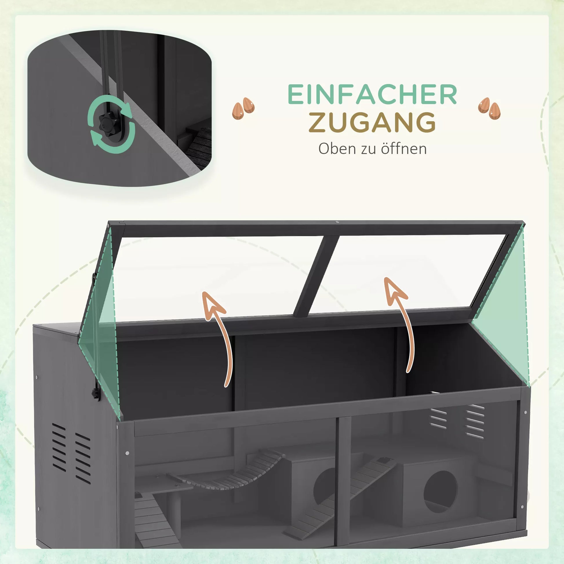 - ✔ Skaidri smulkių gyvūnėlių namelio priekinė dalis gyvūnėliui stebėti