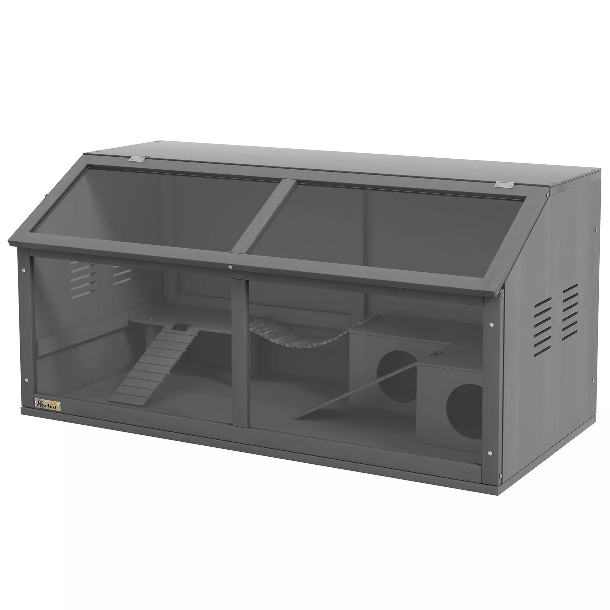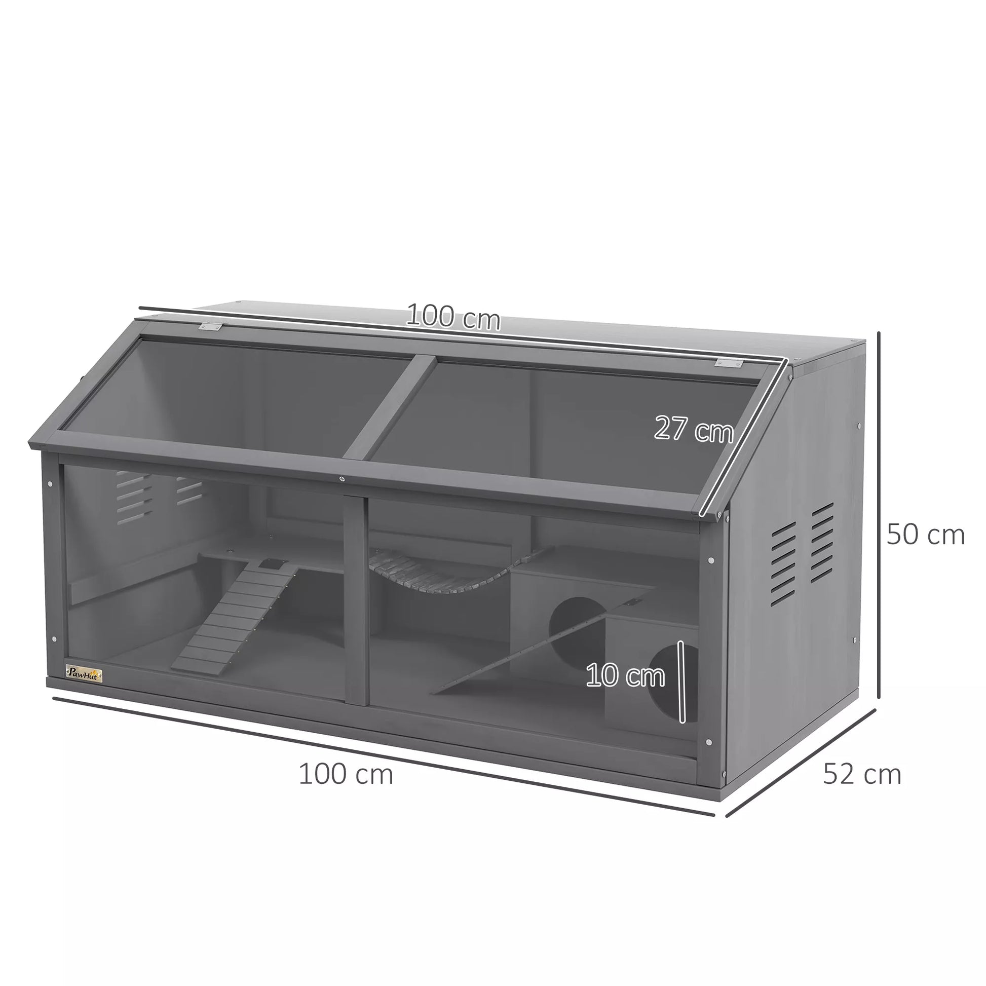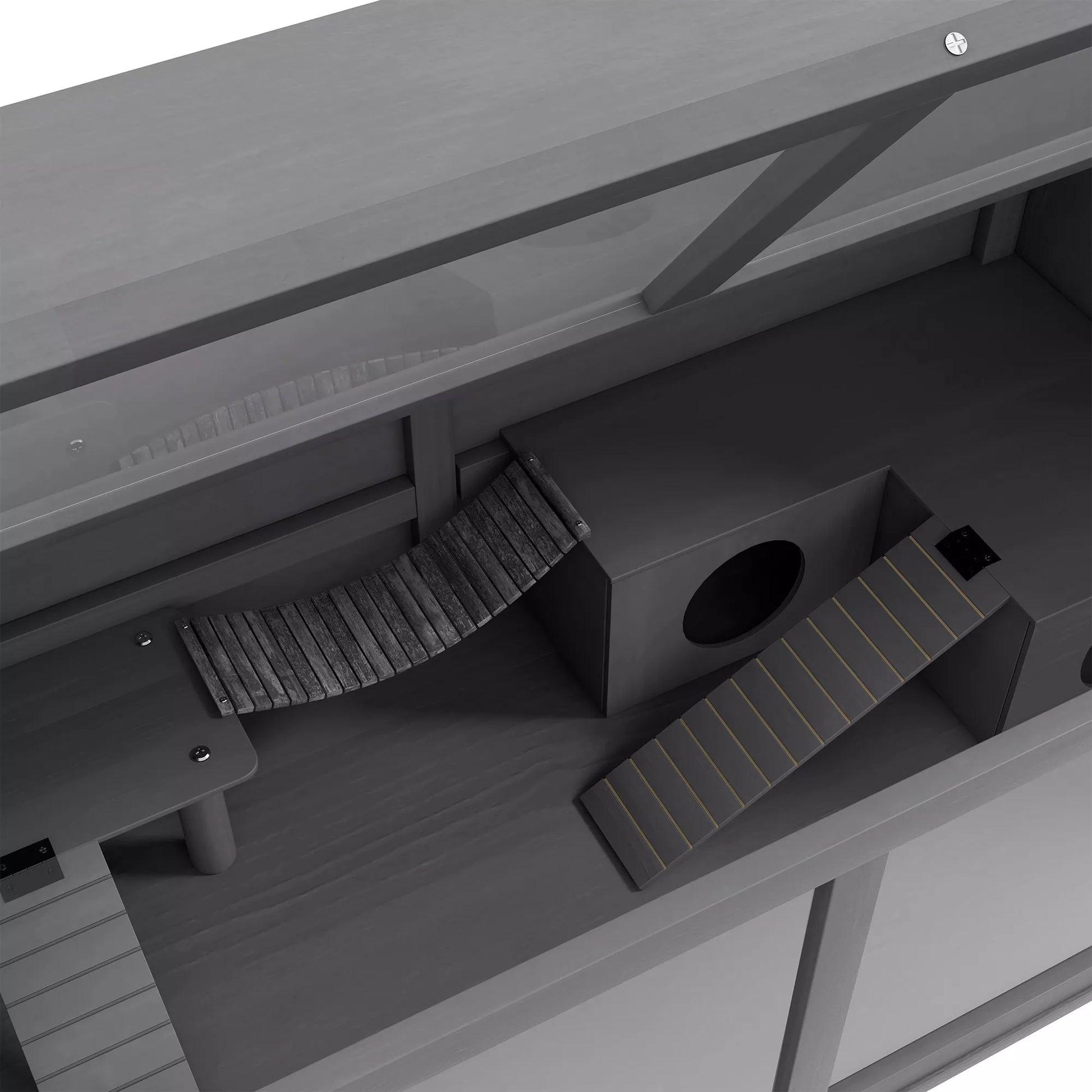 Smulkaus gyvūnėlio ir graužikų narvas su priedais, eglės mediena, 100 cm x 52 cm x 50 cm, pilkas