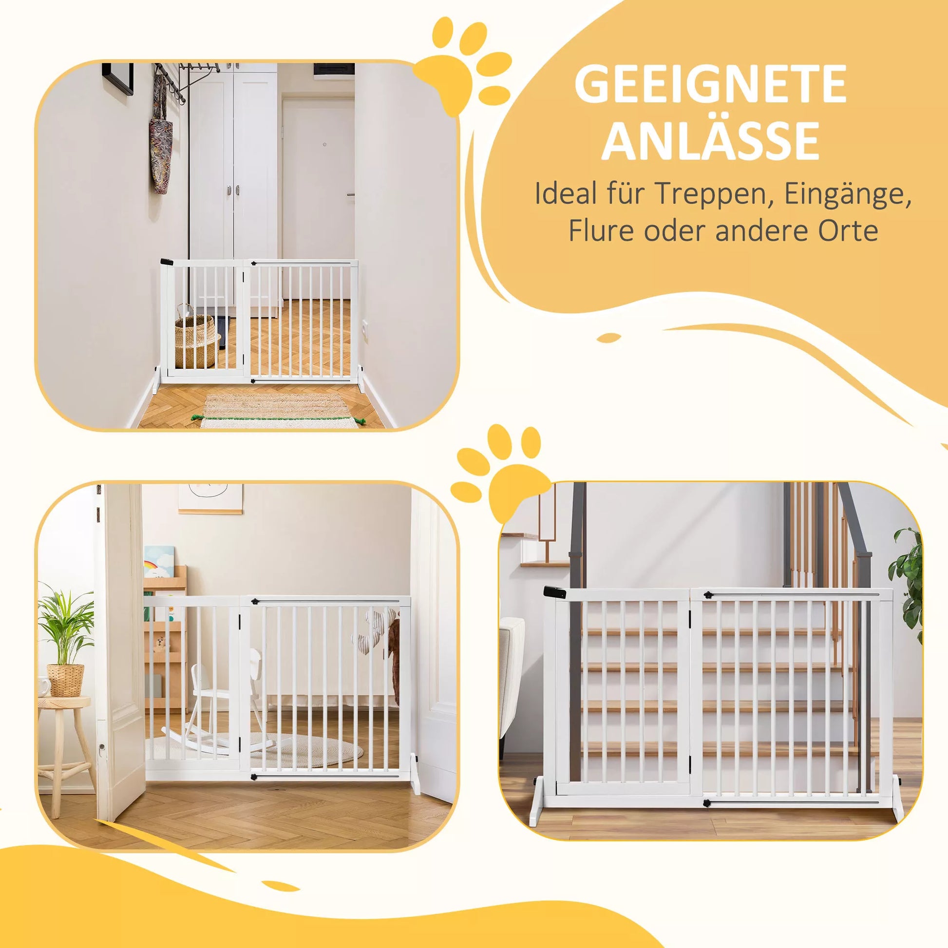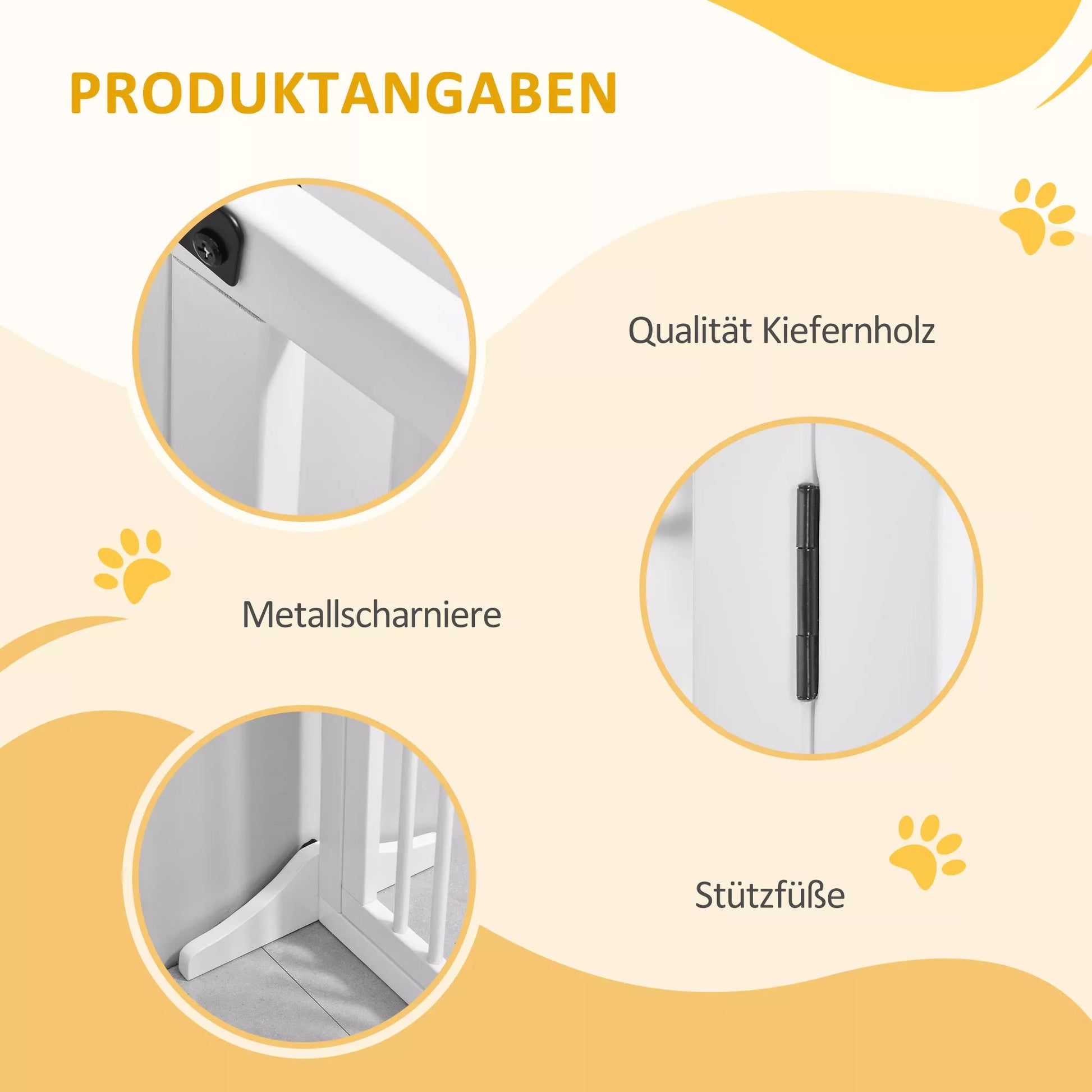 PawHut Medinis laisvai pastatomas šunų atitvaras su durelėmis, konfigūruojamas, tinka židiniui ir krosnelei, baltas 113-166 x 36 x 71 cm