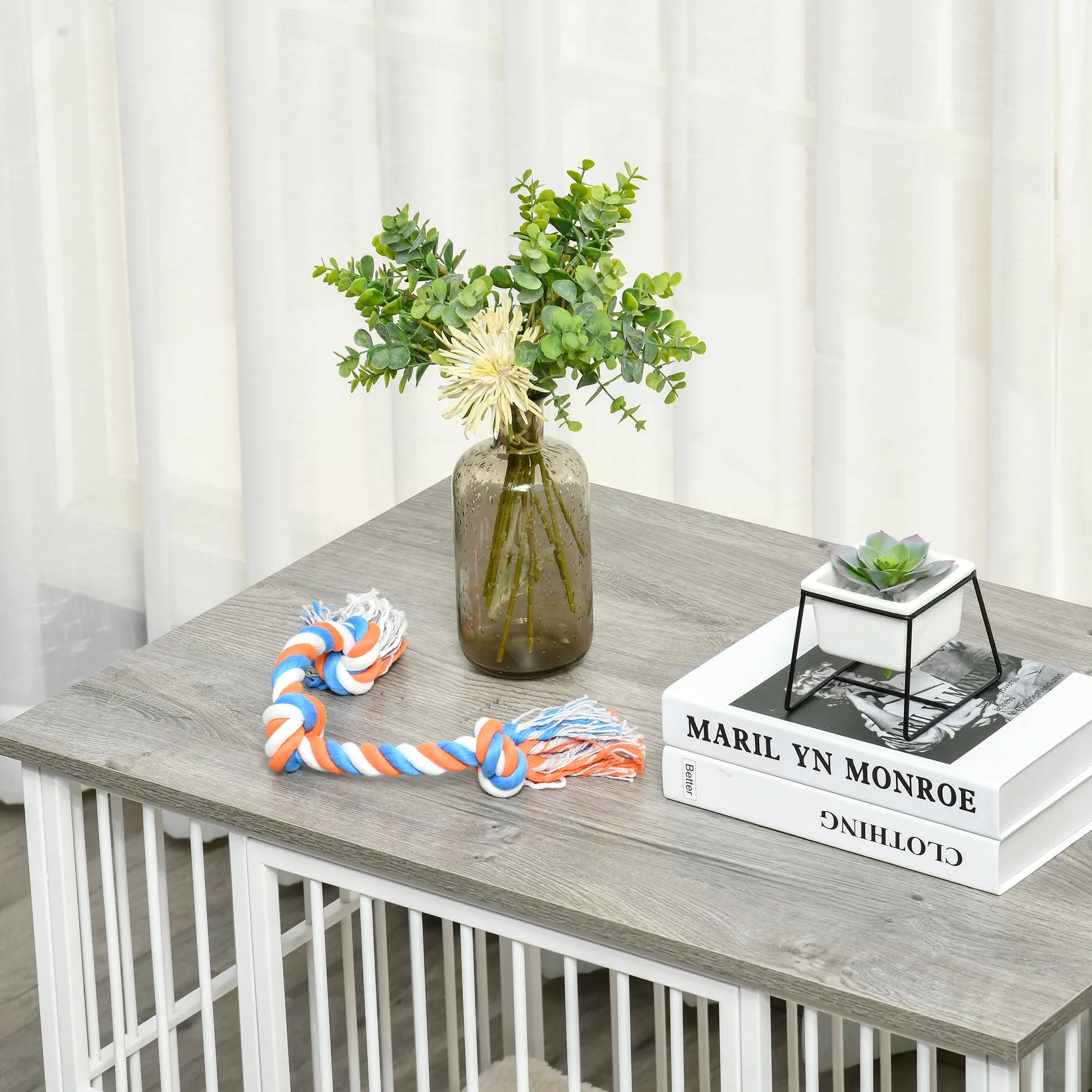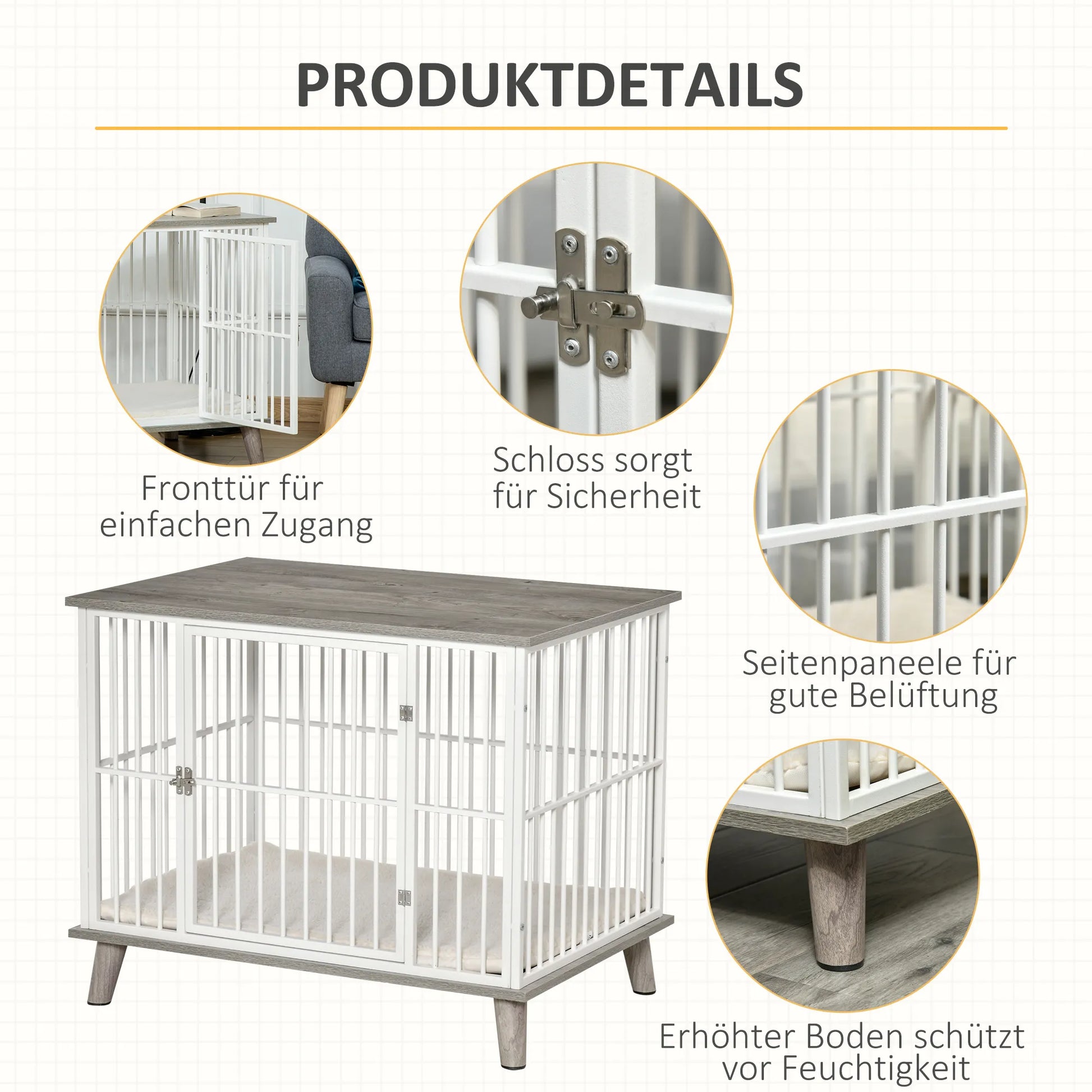Medinis šunų narvas, šunų transportavimo dėžė su pagalvėle, 86 cm x 60 cm x 70 cm, medžio drožlių plokštė, plienas, balta + pilka