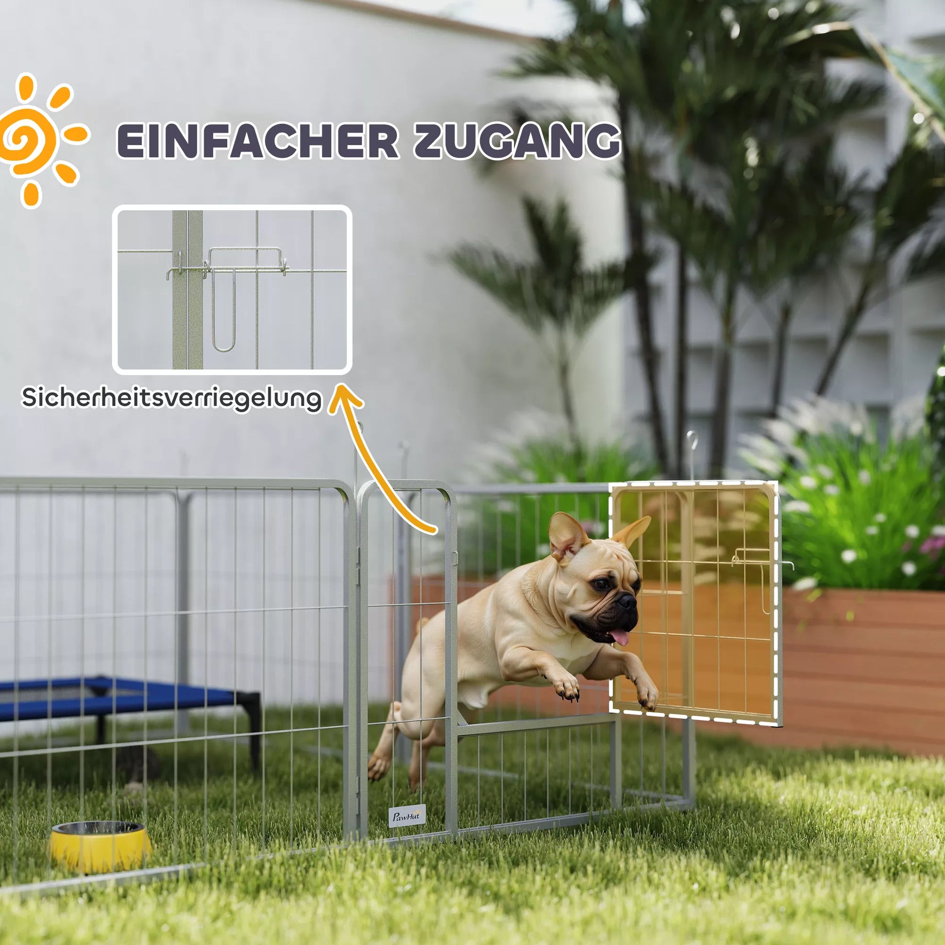 - ✔ Sukuria saugią vidinę arba lauko erdvę augintiniams