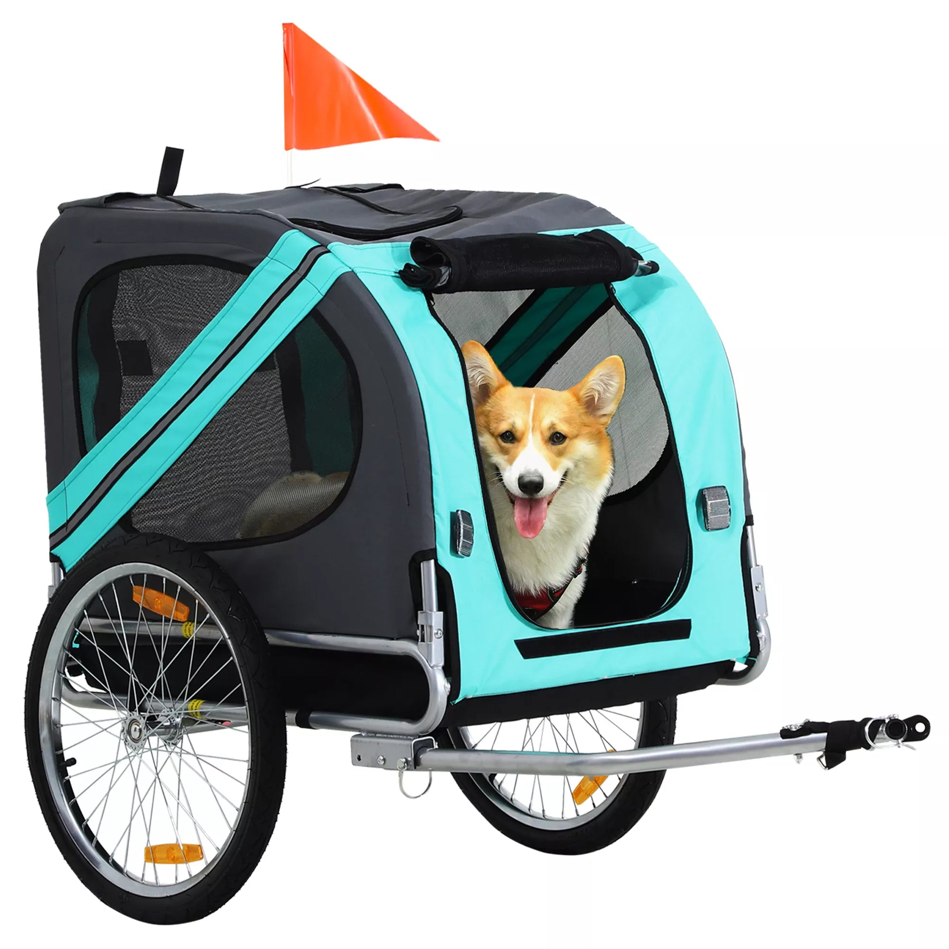 Naminių gyvūnų priekaba Šunų priekaba Dviračių priekaba iki 20 kg Sulankstoma Atšvaitas Apsauga nuo lietaus Plienas Pilka + žalia 130 x 73 x 90 cm