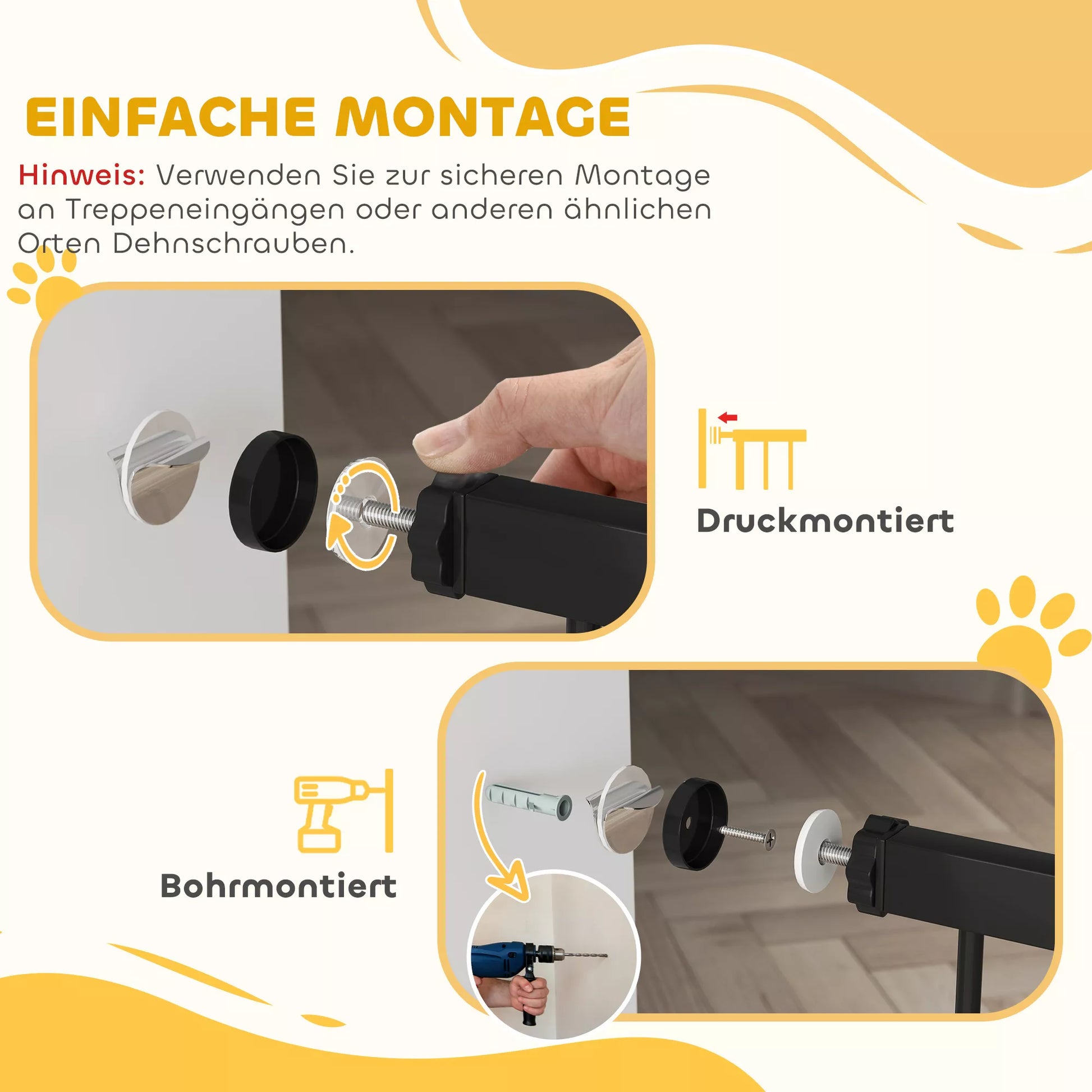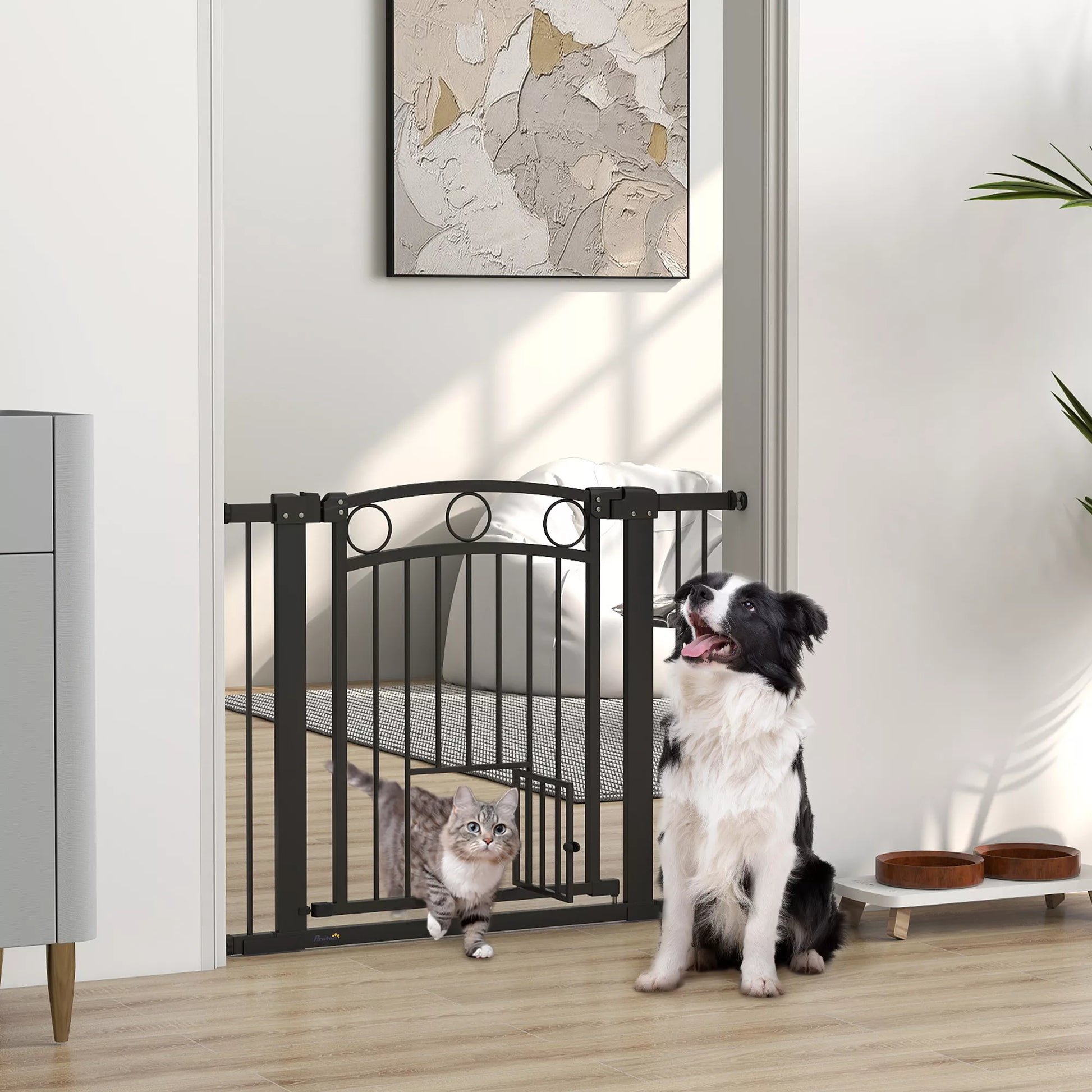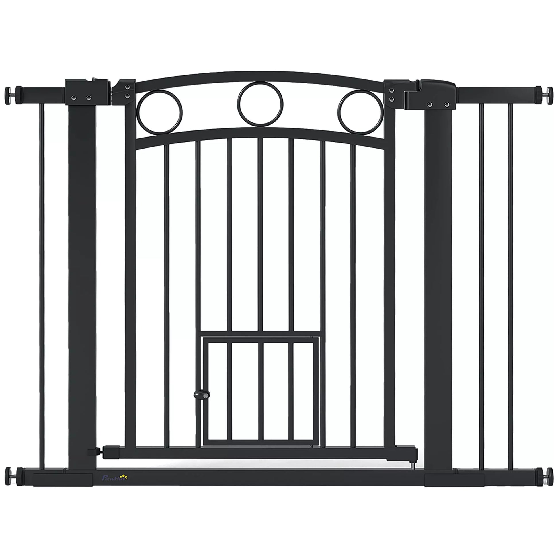 Gyvūnėlio varteliai, 77 cm Laiptų varteliai, reguliuojamas plotis 76-104 cm, su katės durelėmis, skirti laiptams ir durų angoms, Juodi