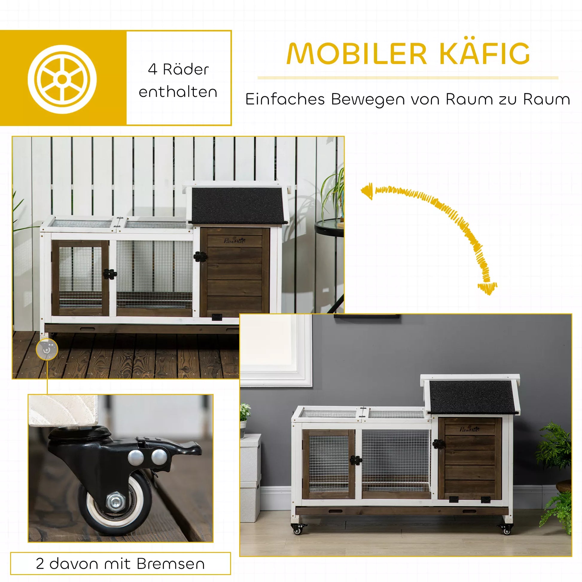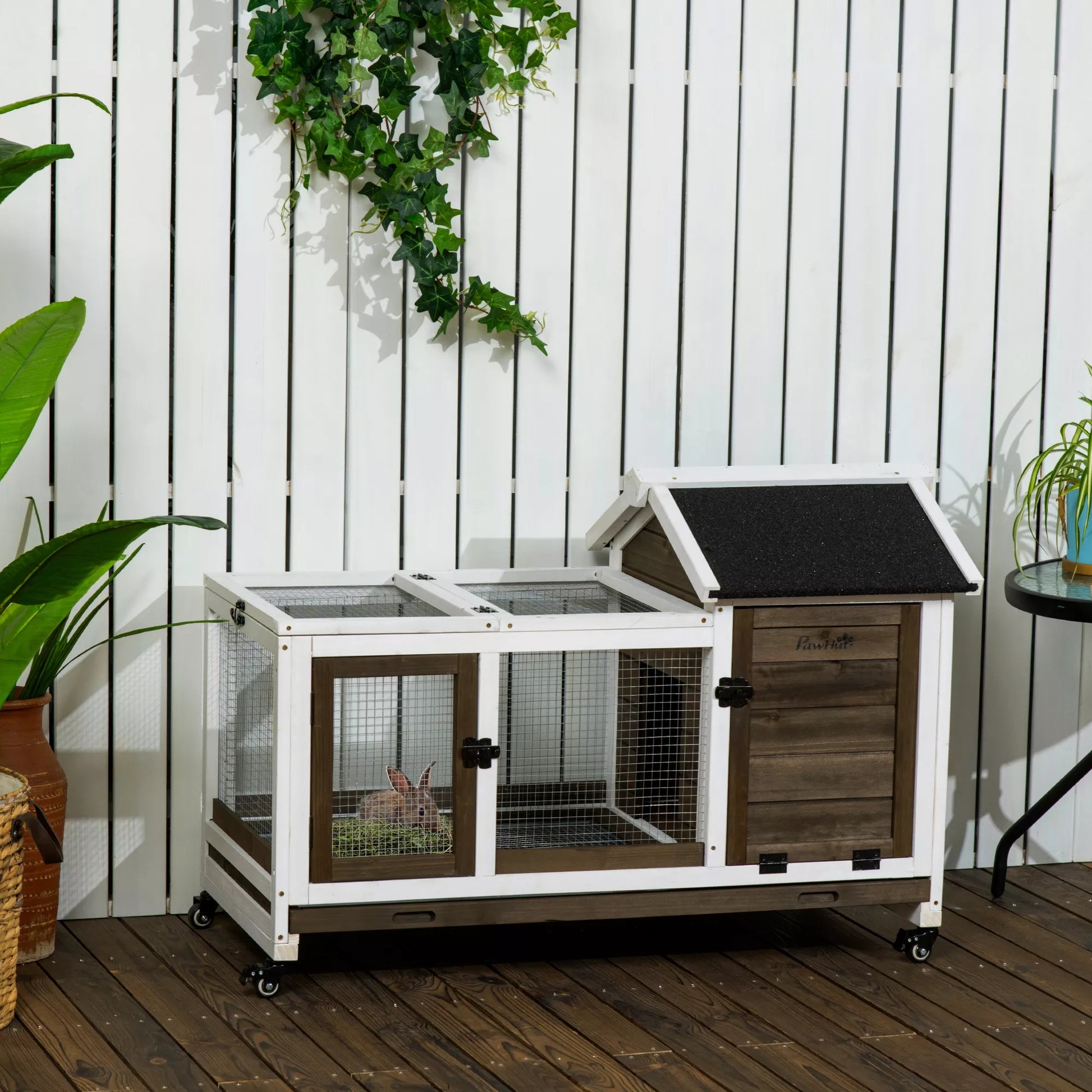 Mažųjų gyvūnėlių namelis triušiams nykštukams, jūrų kiaulytėms, su ratukais, 108 x 58 x 73,5 cm, kavos spalvos