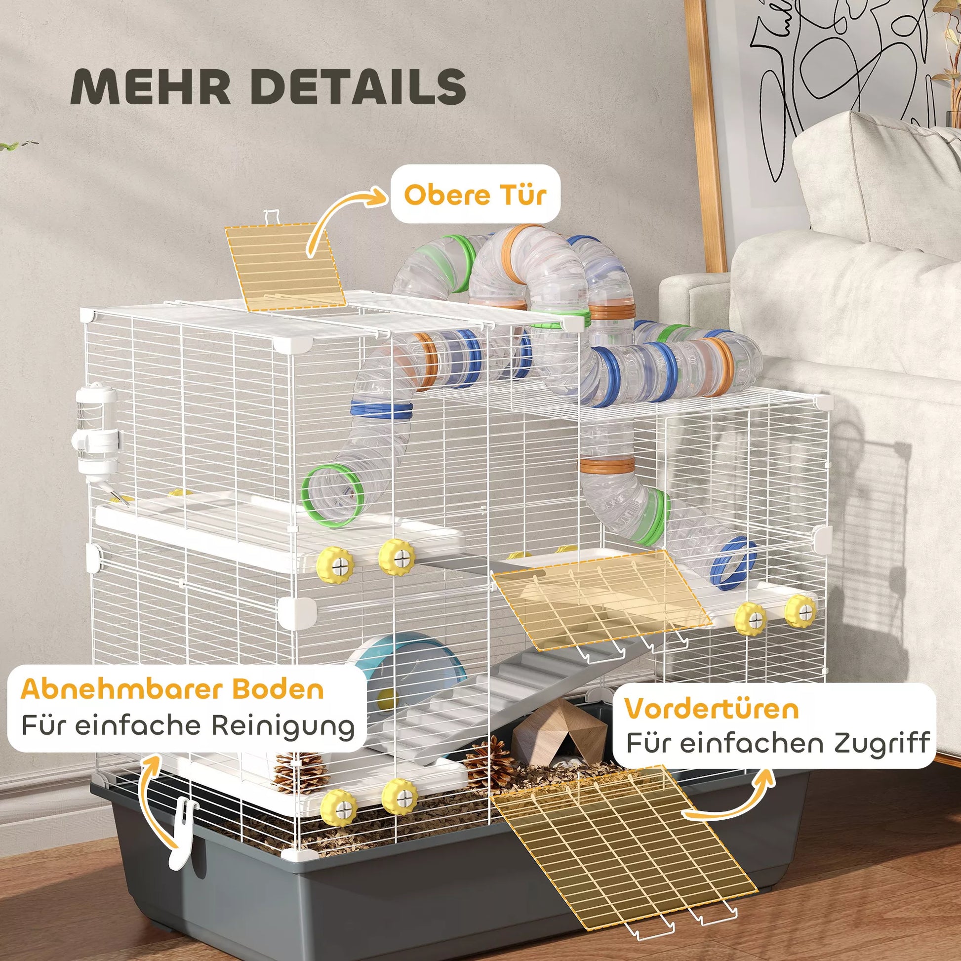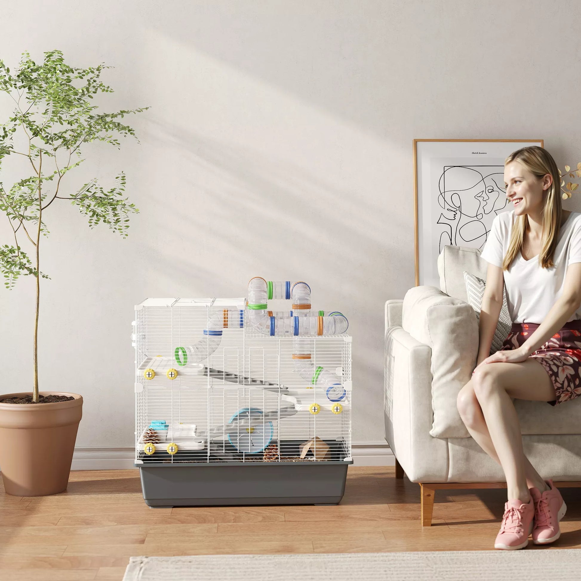 - ✔ Keturių lygių narvo dizainas skatina aktyvių Sirijos žiurkėnų tyrinėjimus