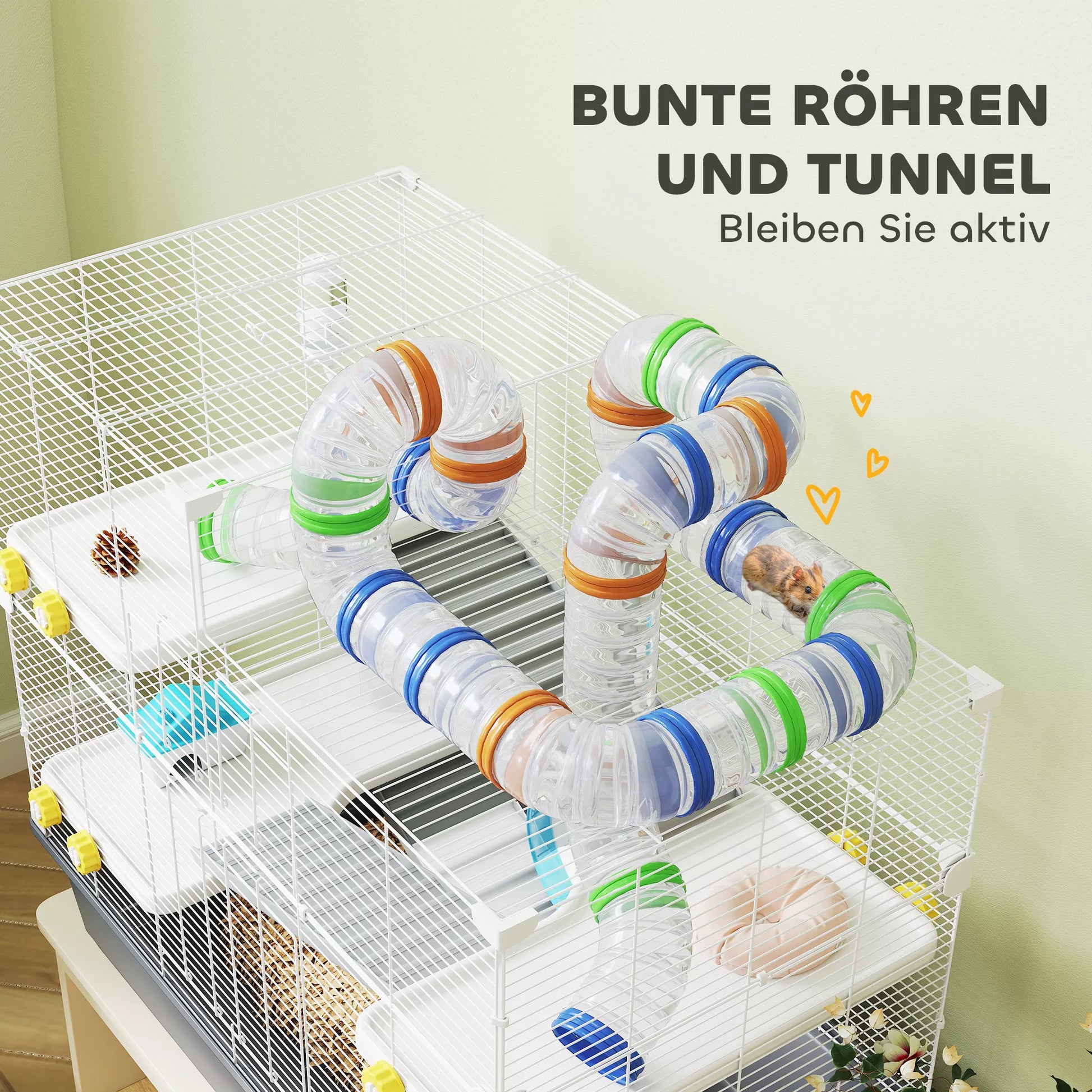 Atraskite nykštukinių žiurkėnų narvą! Smulkiųjų gyvūnėlių narvas siūlo 4 lygius, spalvingą vamzdelių sistemą tyrinėjimui ir daug erdvės su trimis strypais, rampomis bei jaukia trobele. Lengvai pasiekiamas per dvi priekines dureles ir viršutinį dangtelį – tobulas narvas žiurkėnams, mėgstantiems įvairovę.